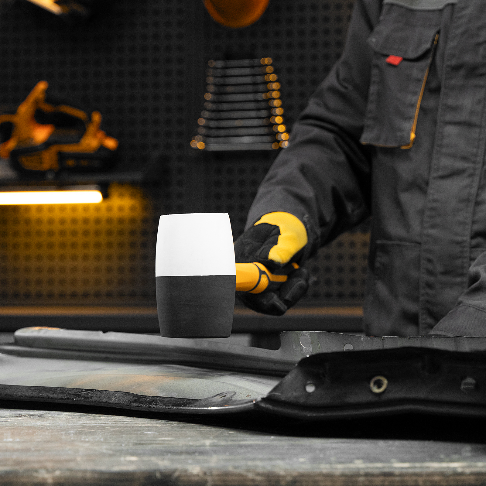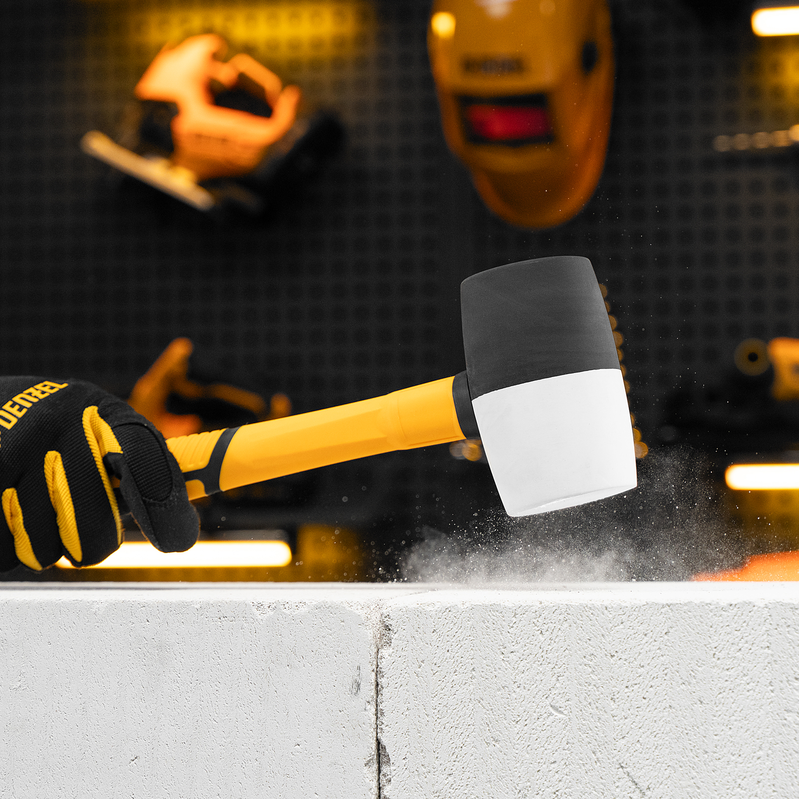 - Безопасная работа со светлыми материалами — часть бойка из белой резины не оставляет следов.
