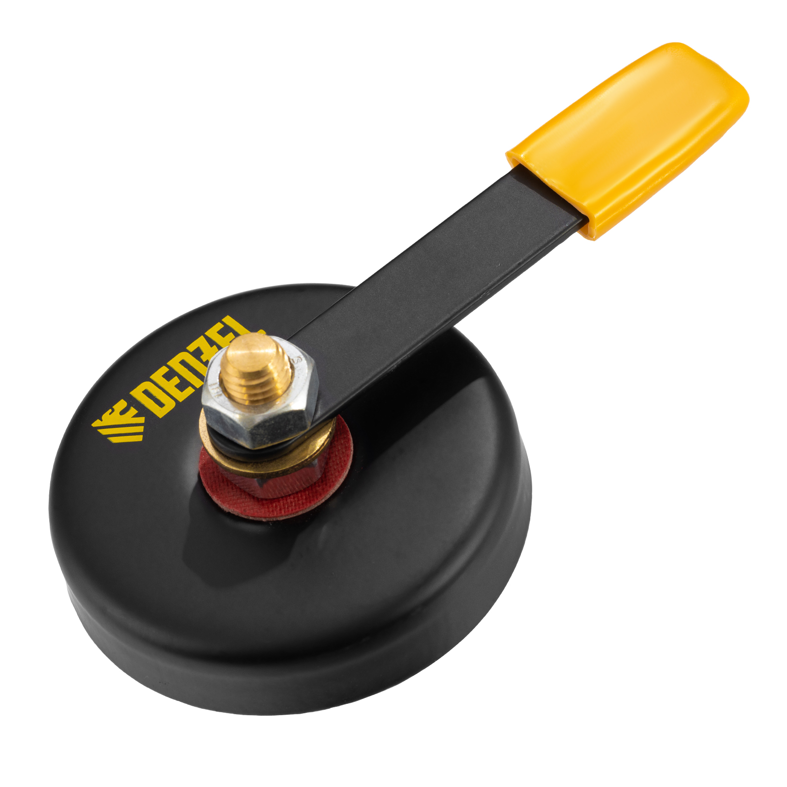 Магнитная клемма Denzel 97558, рассчитанная на усилие 65 LB (30 кг), предназначена для фиксации кабеля заземления на металлической поверхности и используется при проведении сварочных работ. Служит для получения замкнутой электрической цепи, необходимой для процесса ручной дуговой сварки. Позволяет работать со сварочным током до 500 A. Удобна для работы в труднодоступных местах, быстро и надежно крепится как на плоские, так и на изогнутые поверхности.