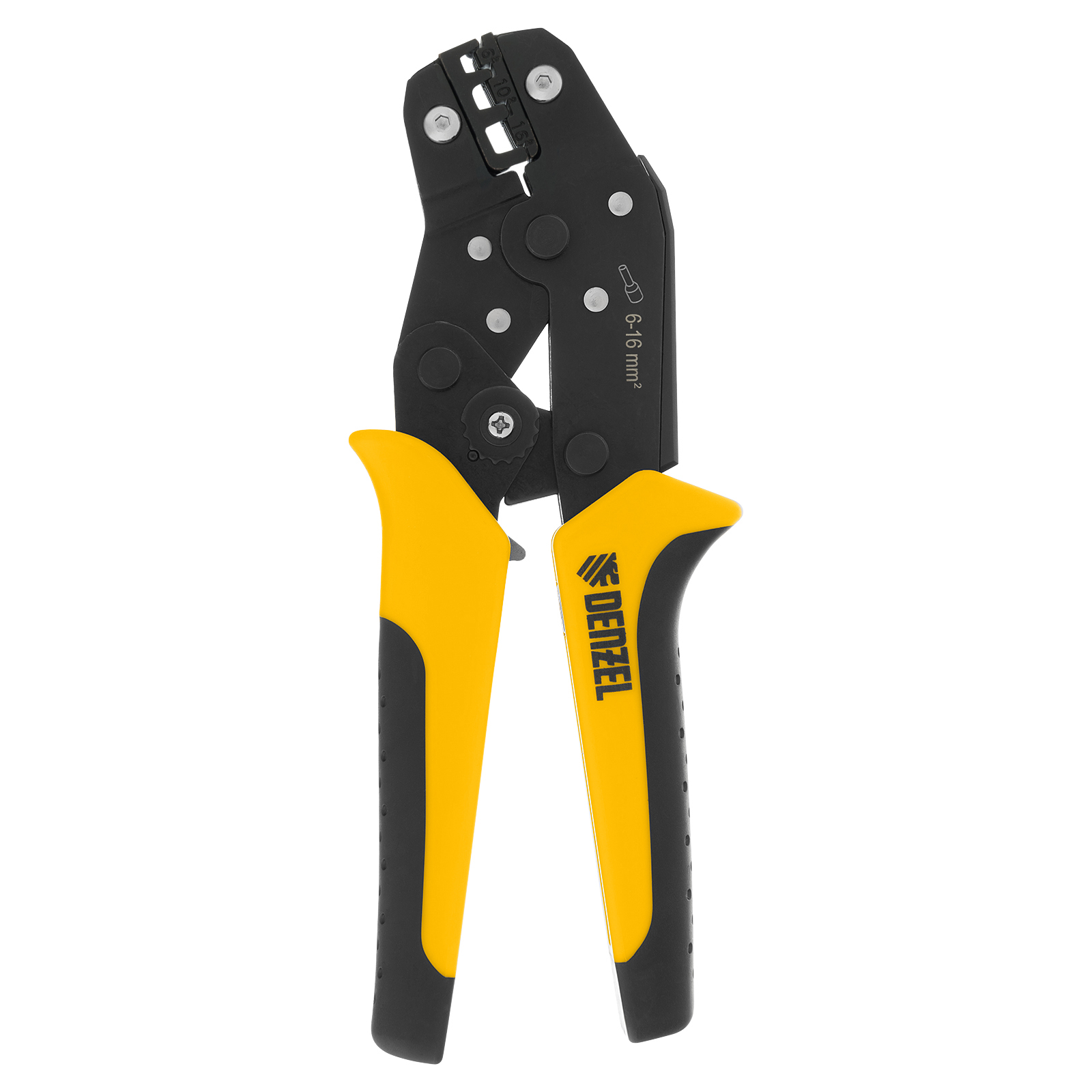 Клещи Denzel 17744 предназначены для обжима наконечников штыревых втулочных НШВ, НШВИ, НШВИ-2 сечением 6-16 мм². Двухрычажная передача усилия сжатия позволяет увеличить эффективность работы без дополнительный усилий мастера. Инструмент пригодится частным и профессиональным мастерам при проведении электромонтажных работ.