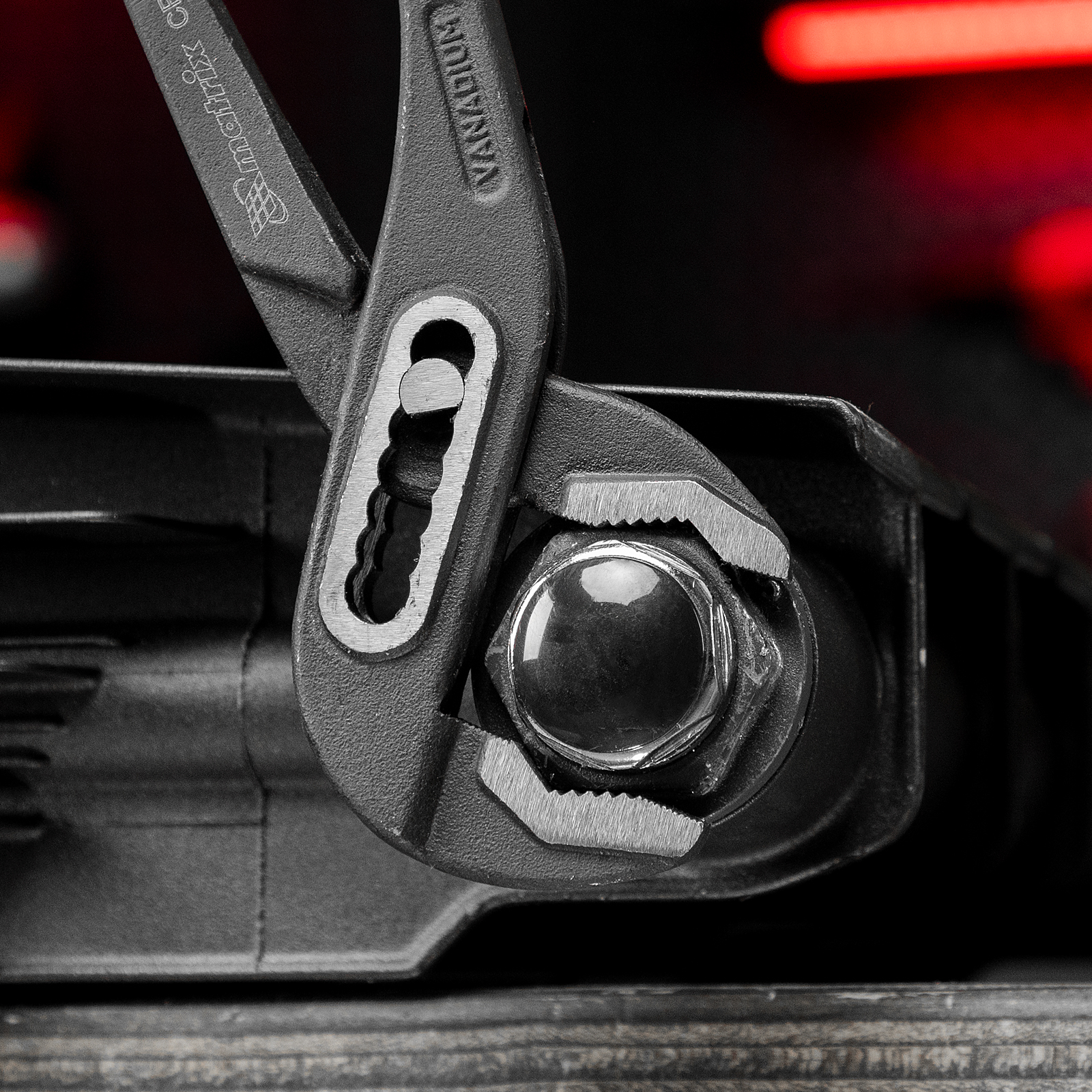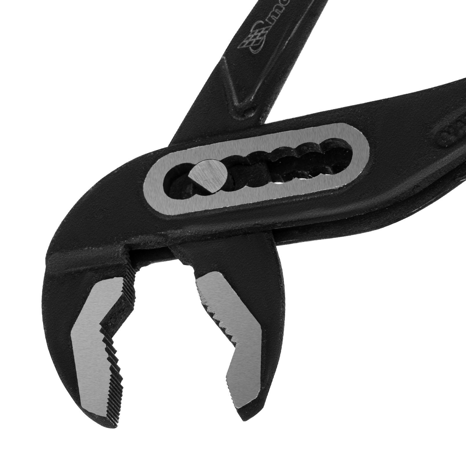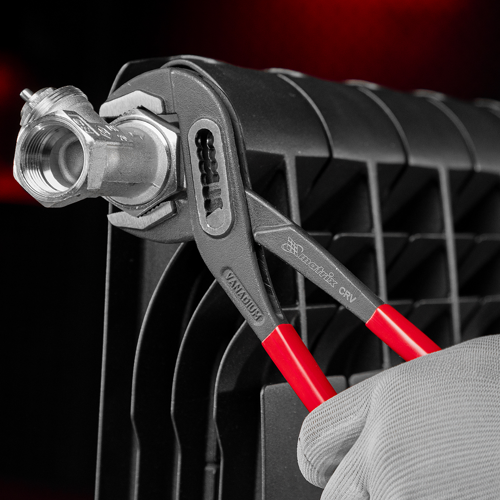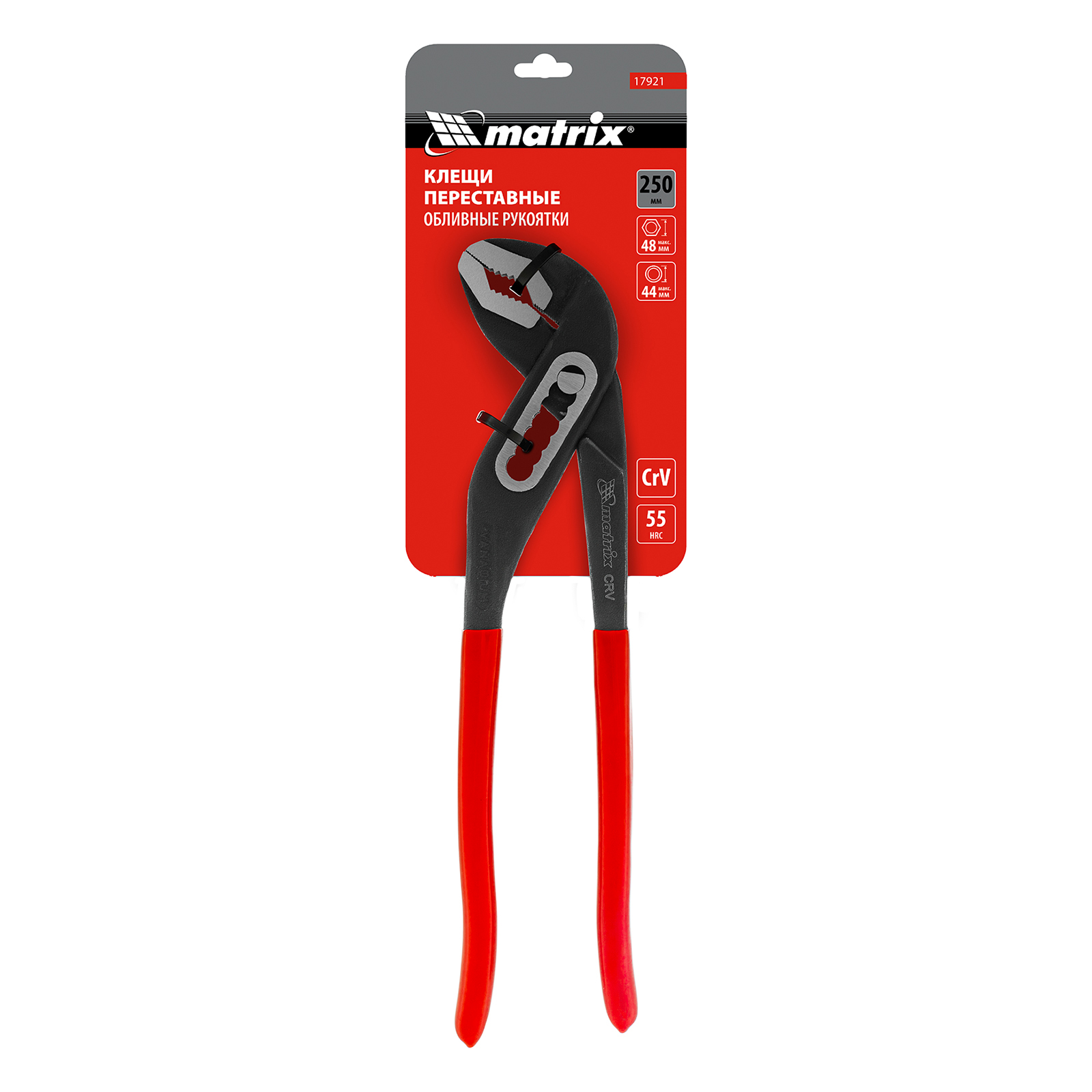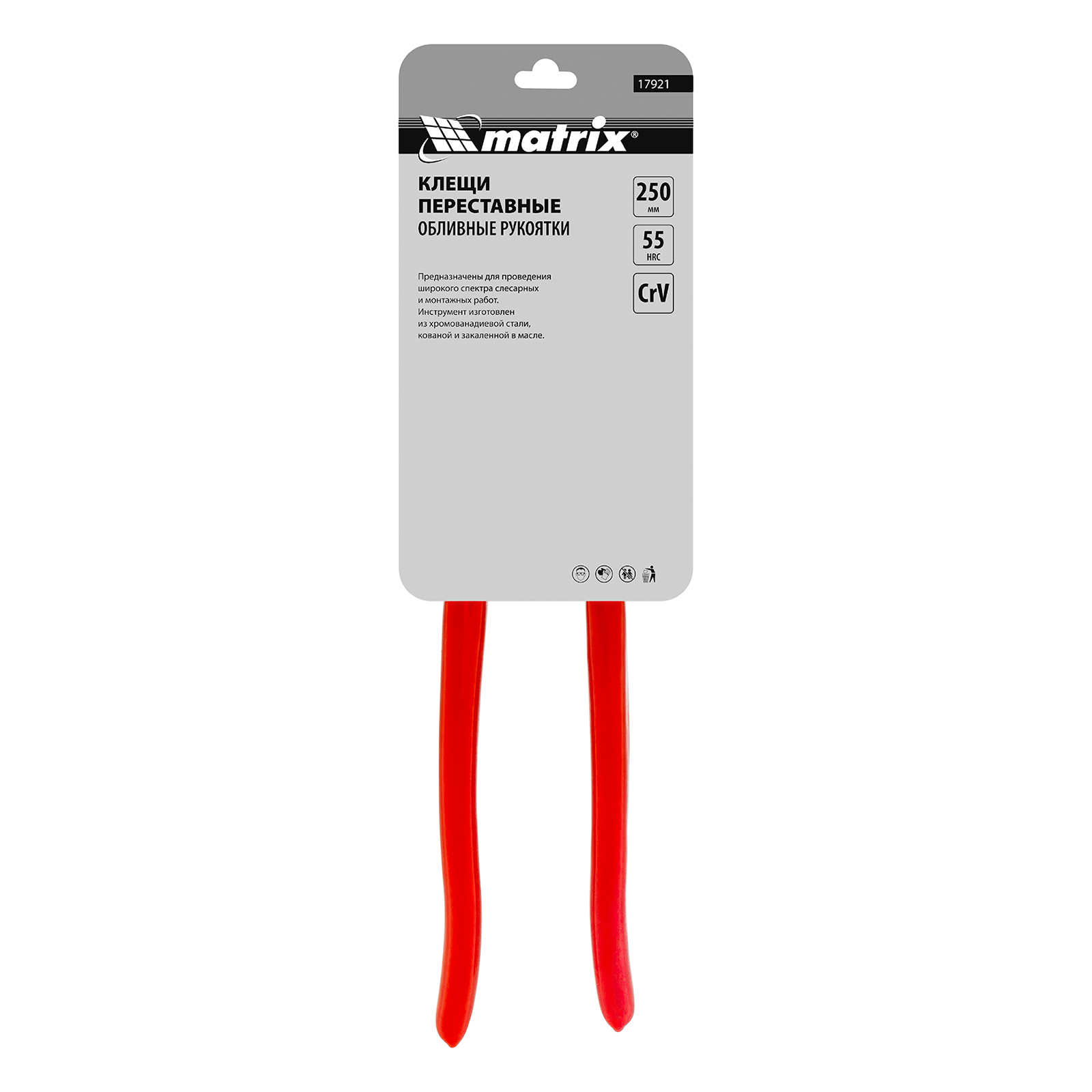 Переставные клещи Matrix 17921 длиной 250 мм, выполненные из хромованадиевой стали, с обливными рукоятками, используются для проведения монтажных и слесарных работ. Универсальный инструмент заменяет ключи различных размеров и применяется для фиксации заготовок, откручивания гаек, зажима и удержания труб диаметром до 44 мм.