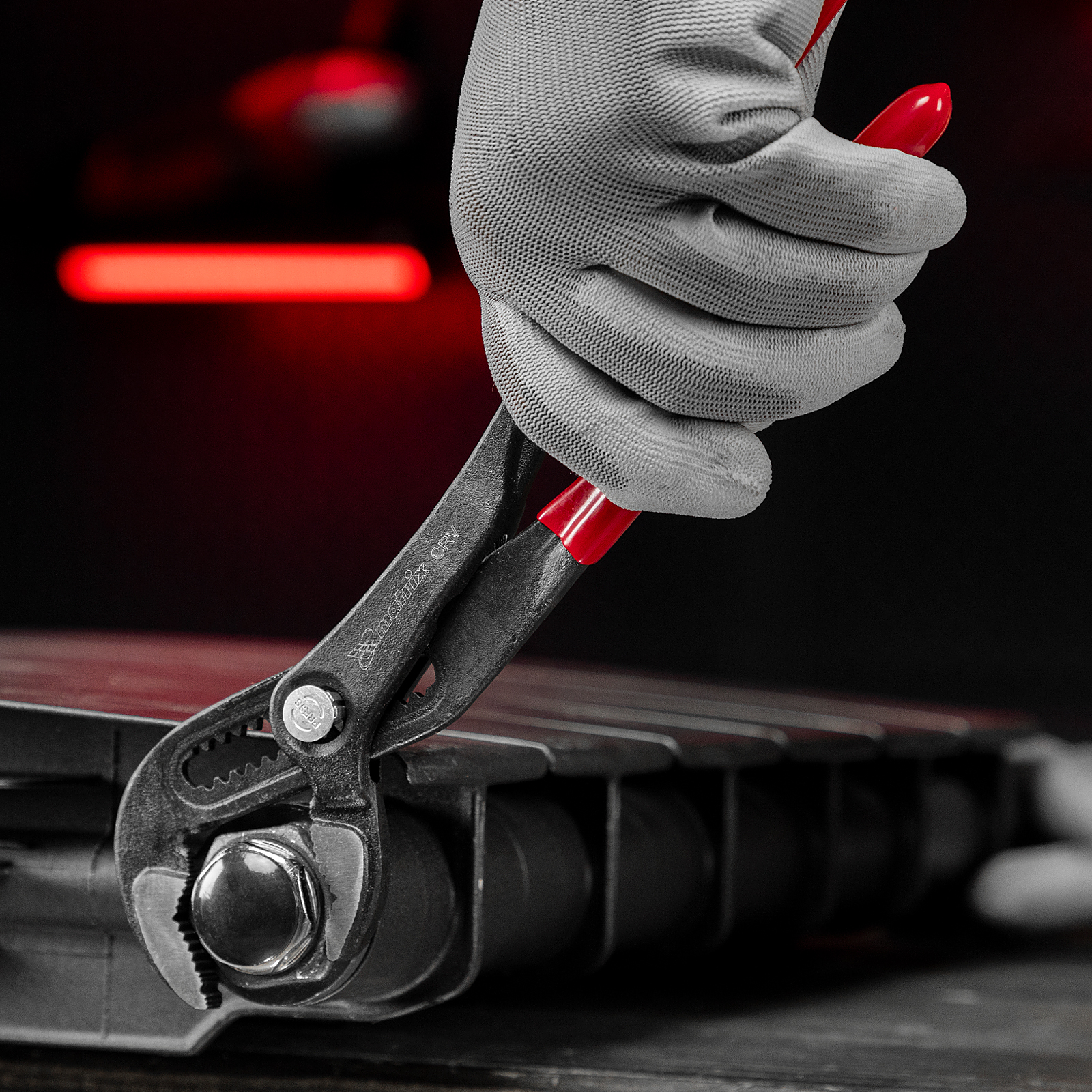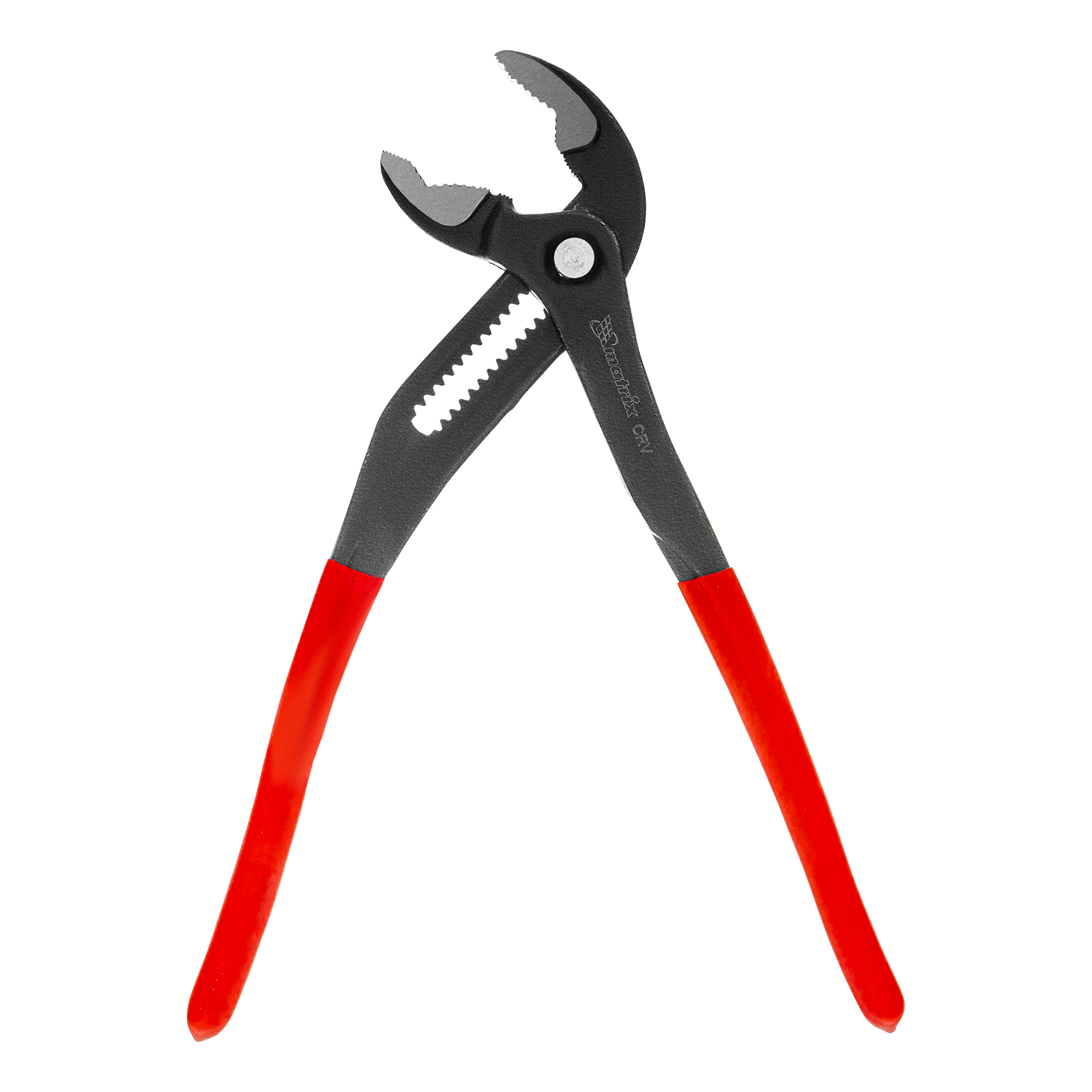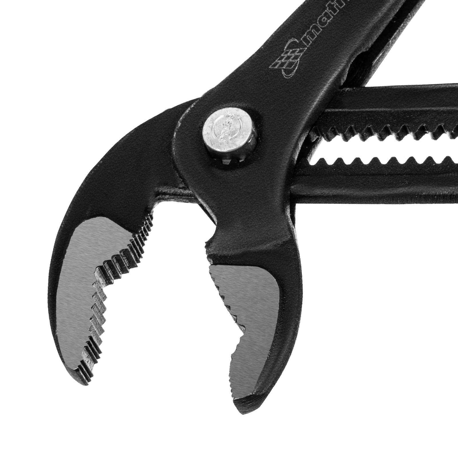 Переставные клещи Matrix 17927 длиной 300 мм, выполненные из хромованадиевой стали, с кнопочным механизмом и обливными рукоятками, используются для проведения монтажных и слесарных работ. Универсальный инструмент заменяет ключи различных размеров и применяется для фиксации заготовок, откручивания гаек, зажима и удержания труб диаметром до 64 мм.