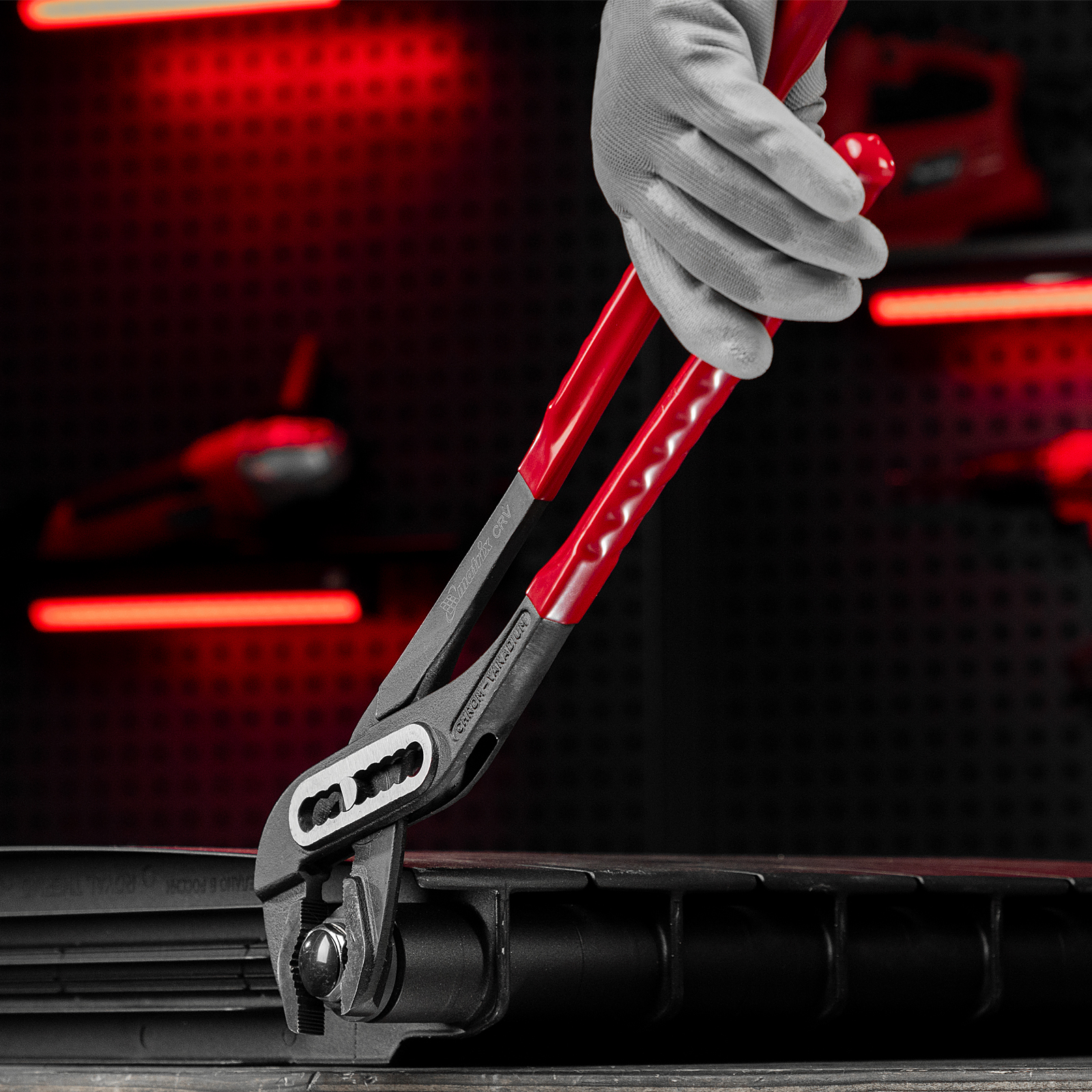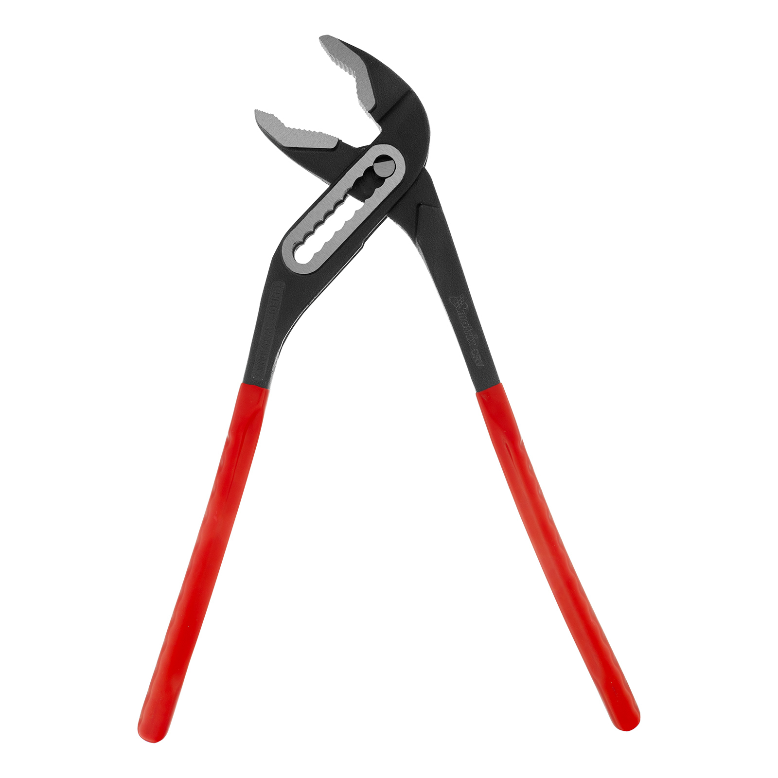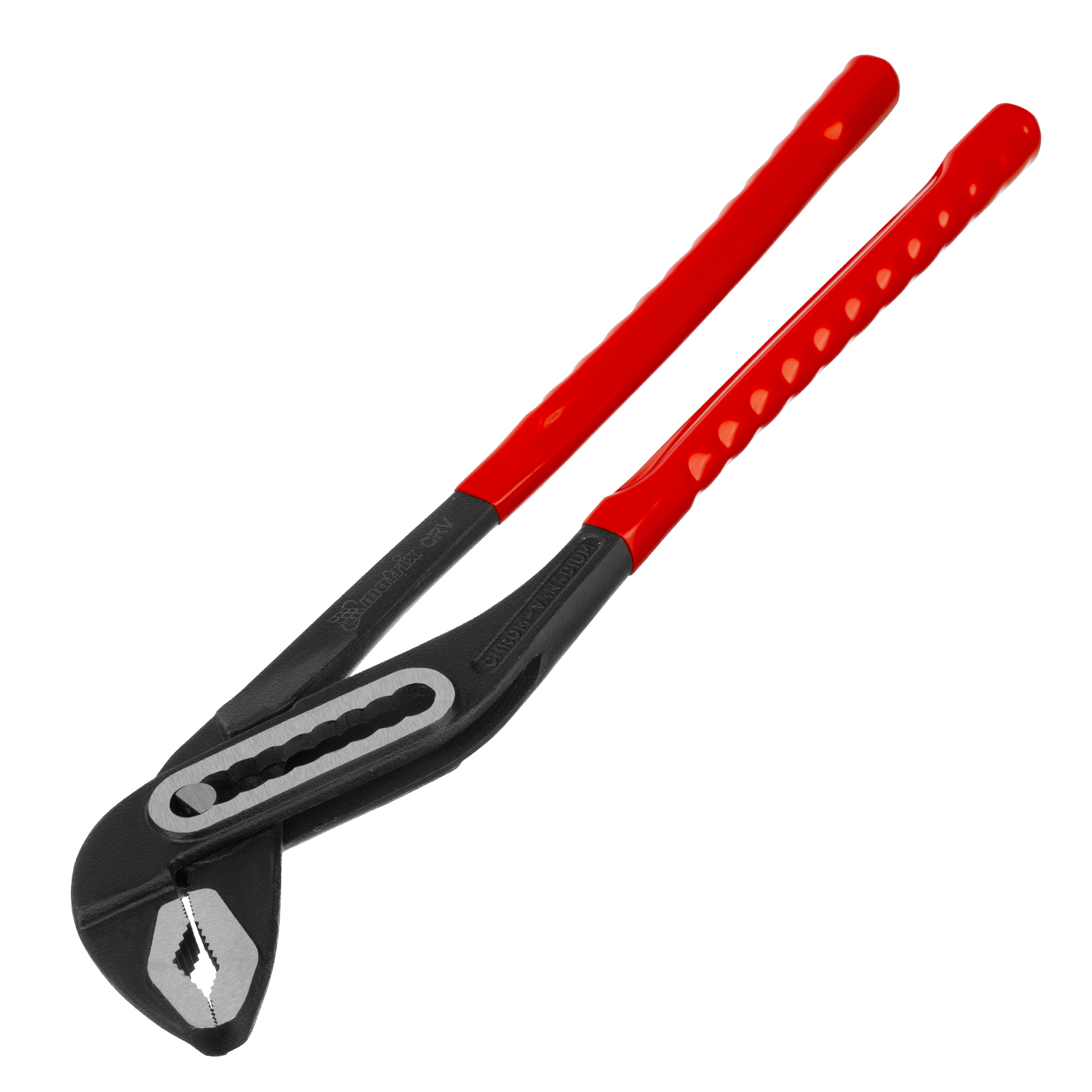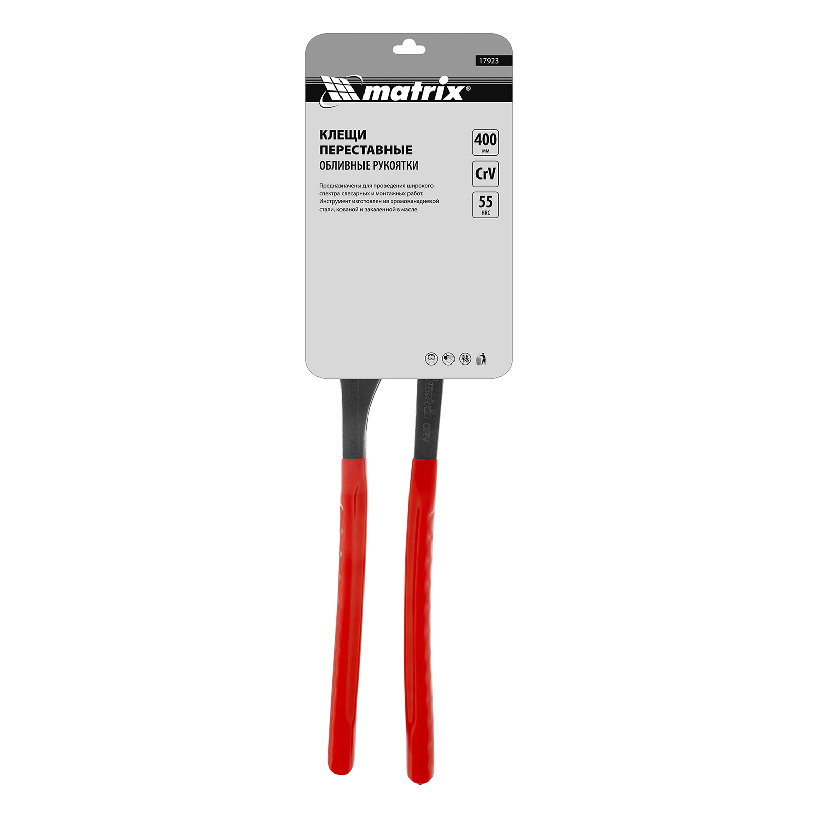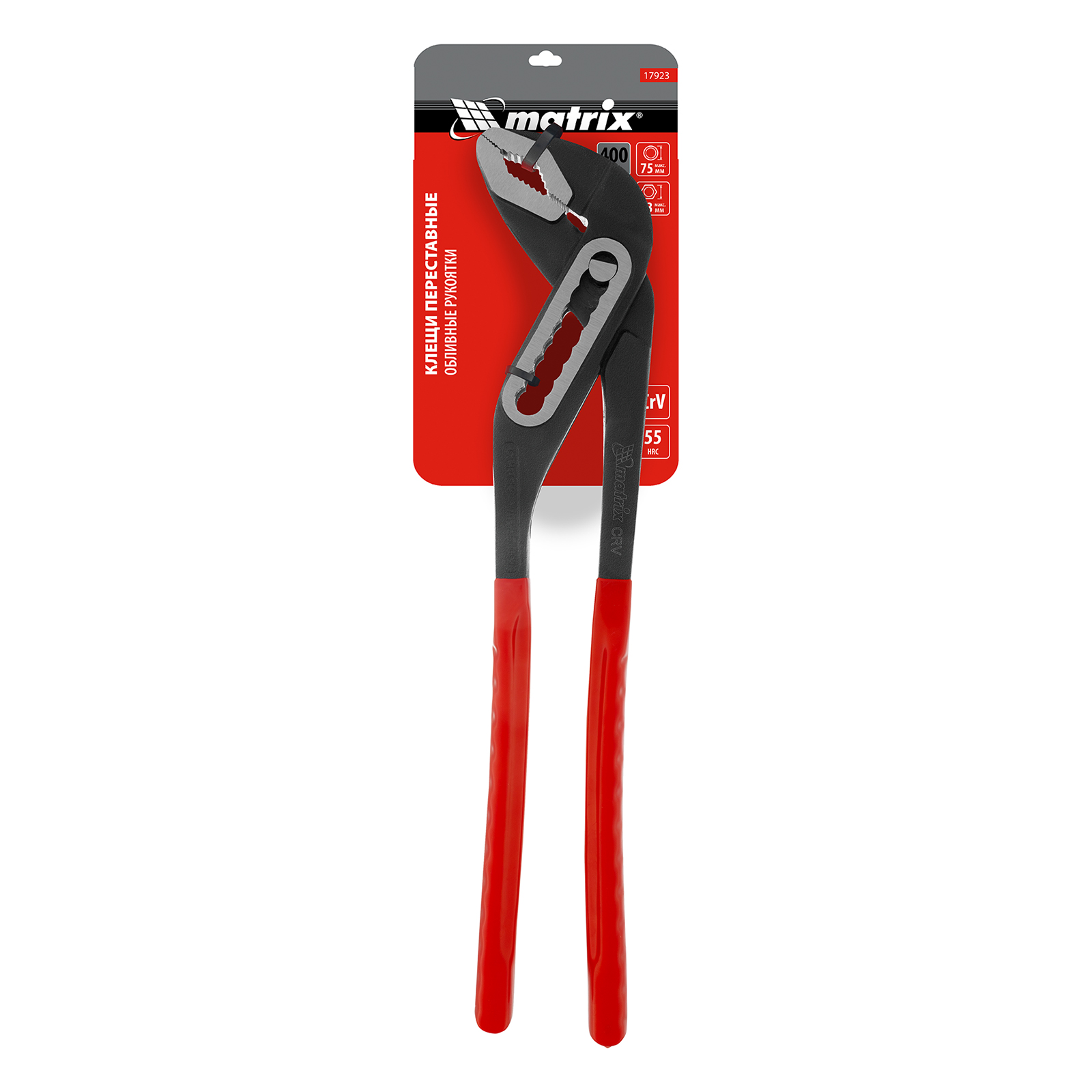 Переставные клещи Matrix 17923 длиной 400 мм, выполненные из хромованадиевой стали, с обливными рукоятками, используются для проведения монтажных и слесарных работ. Универсальный инструмент заменяет ключи различных размеров и применяется для фиксации заготовок, откручивания гаек, зажима и удержания труб диаметром до 75 мм.