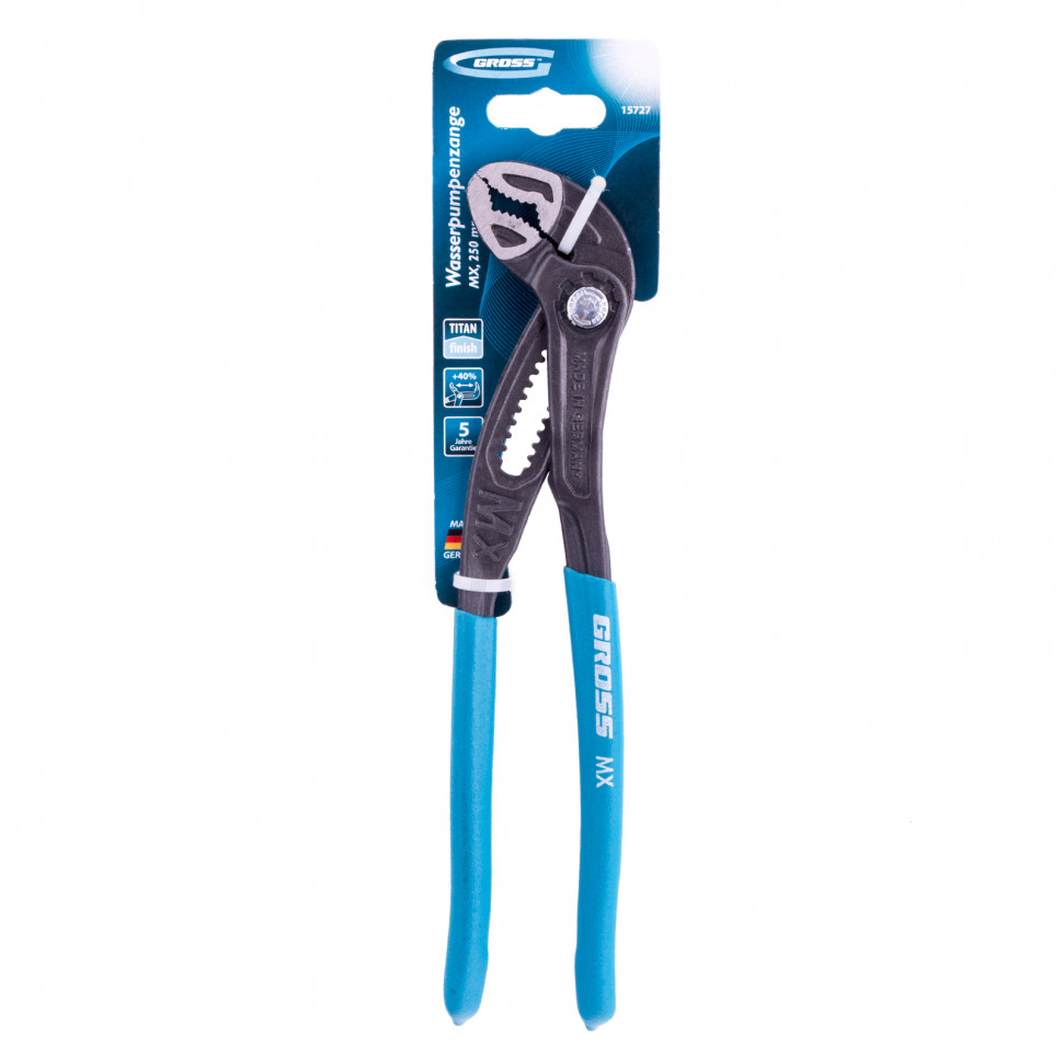 Переставные клещи Gross 15727 длиной 250 мм, с кнопочным механизмом и обливными рукоятками, — профессиональный инструмент для работ с сантехникой, фитингами, трубами и т.д. Рабочие губки с насечками обеспечивают надежный захват изделий диаметром до 50 мм. Клещи удобны для работы в труднодоступных местах.