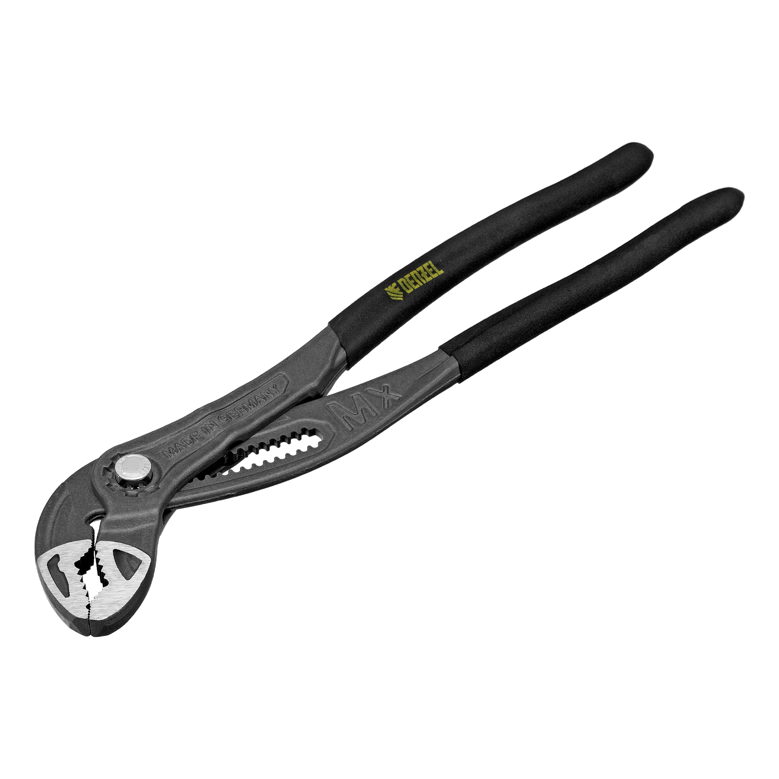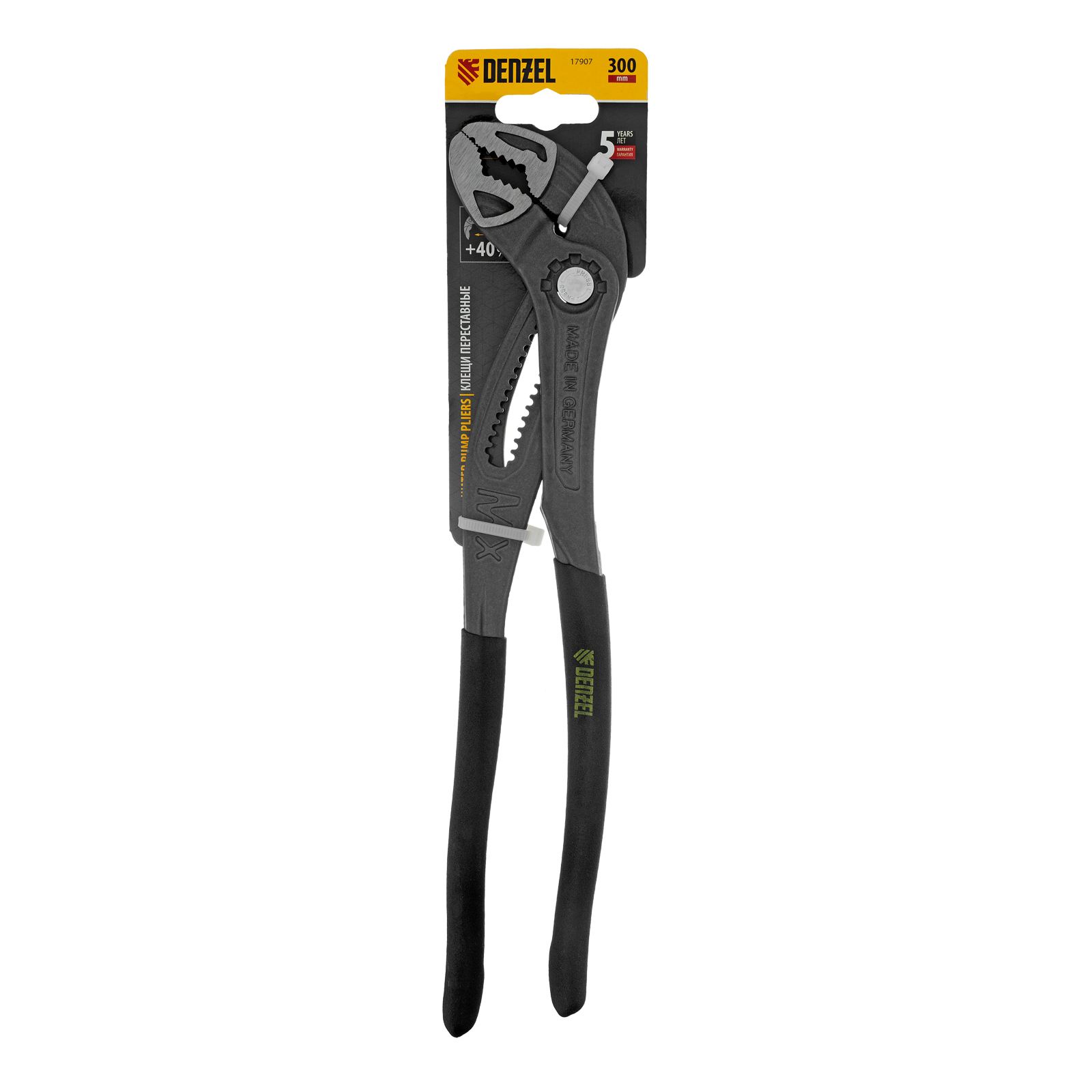 Переставные клещи Denzel 17907 длиной 300 мм, с обливными рукоятками и кнопочным механизмом, предназначены для фиксации и вращения деталей и заготовок различной формы. Подходят для захвата фитингов, труб, крепежных элементов. Инструмент удобен для работы в труднодоступных местах, используется при проведении ремонтных, монтажных, сантехнических работ.