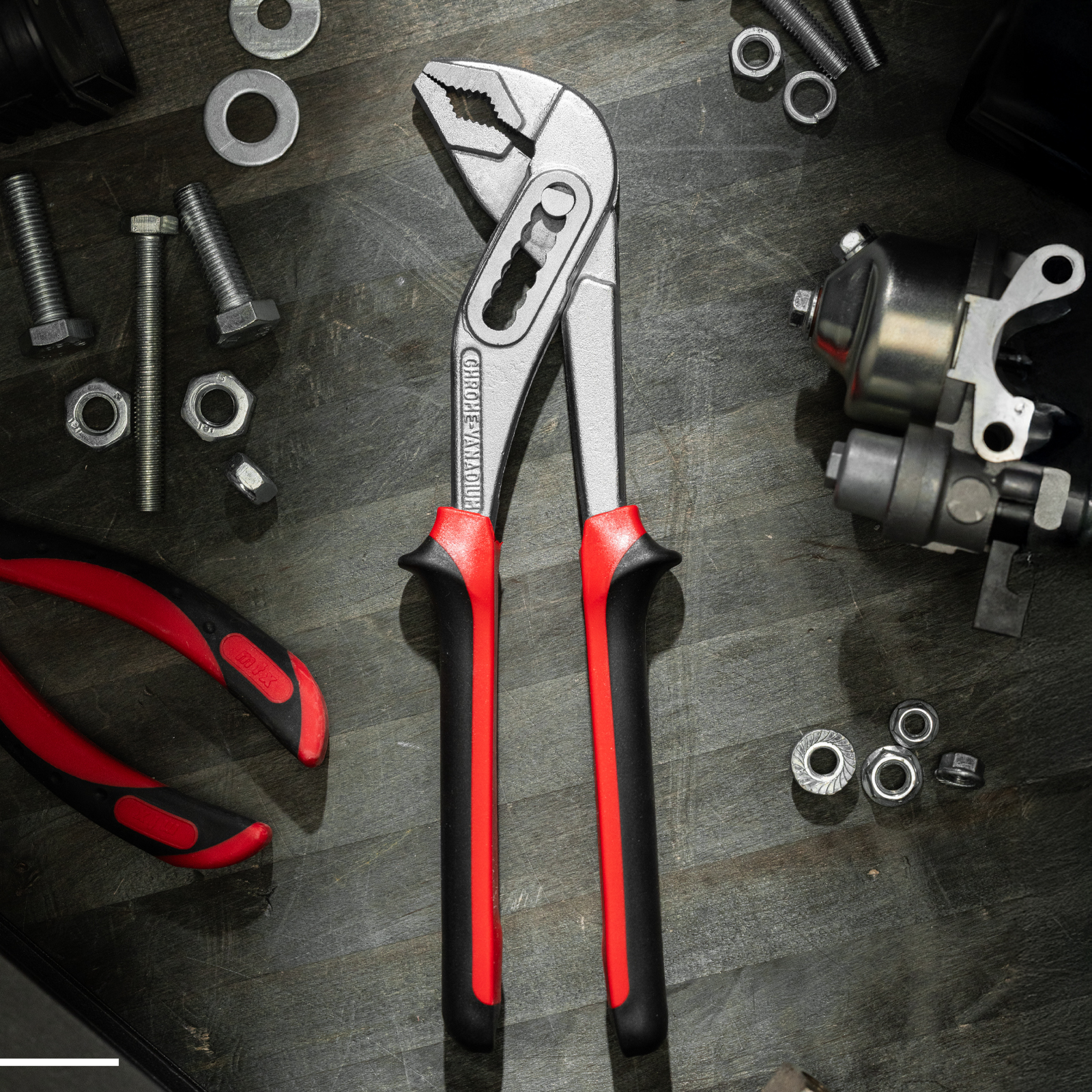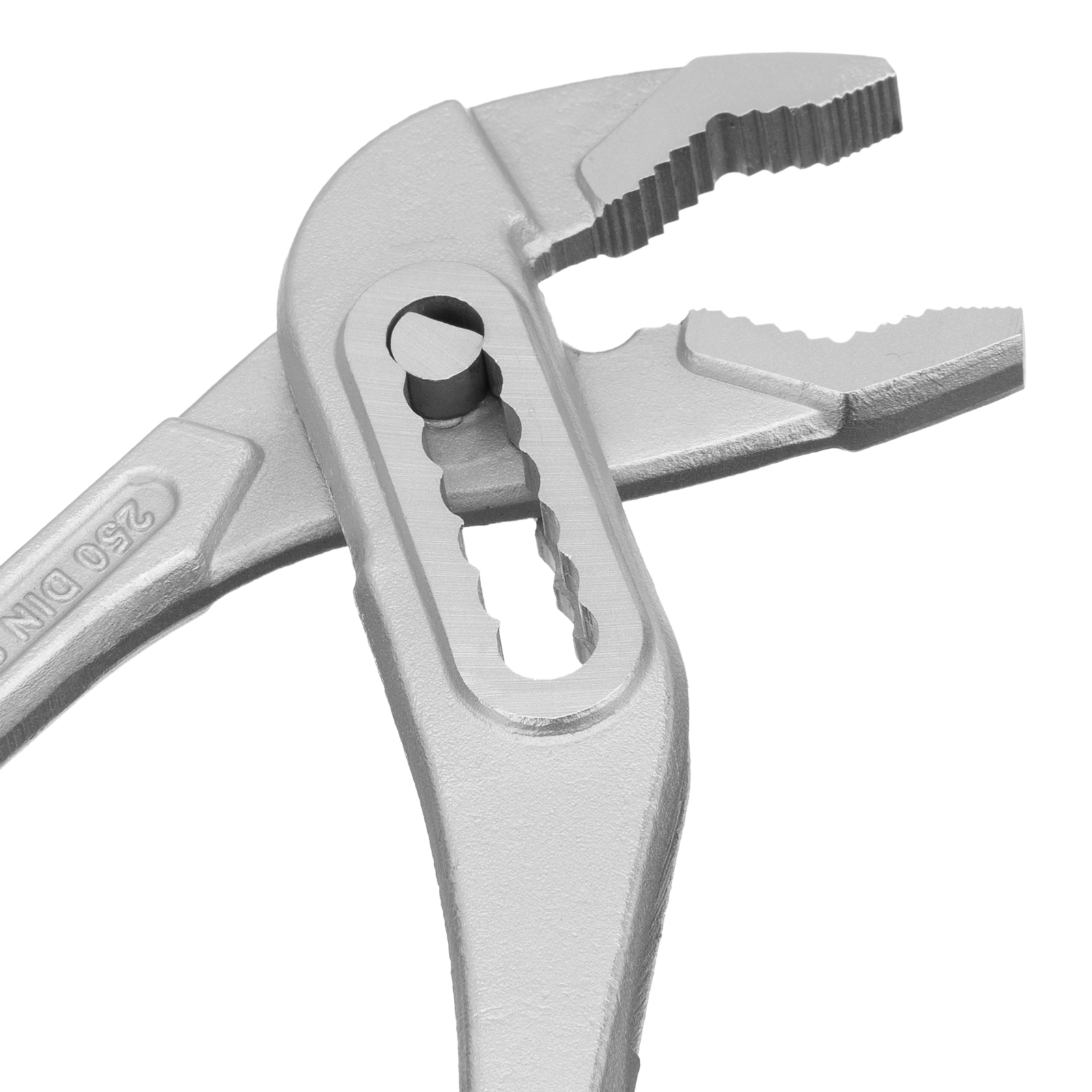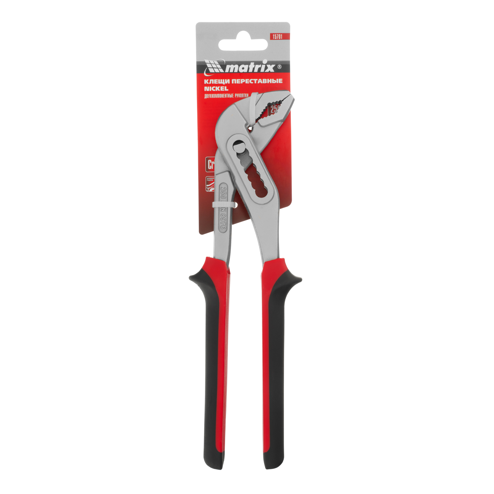 Переставные клещи Matrix Nickel 15701 длиной 250 мм, с покрытием белого цвета, выполненные из хром-ванадия, с двухкомпонентными рукоятками, используются для проведения монтажных и слесарных работ. Универсальный инструмент заменяет ключи различных размеров и применяется для фиксации заготовок, откручивания гаек, зажима и удержания труб и деталей.