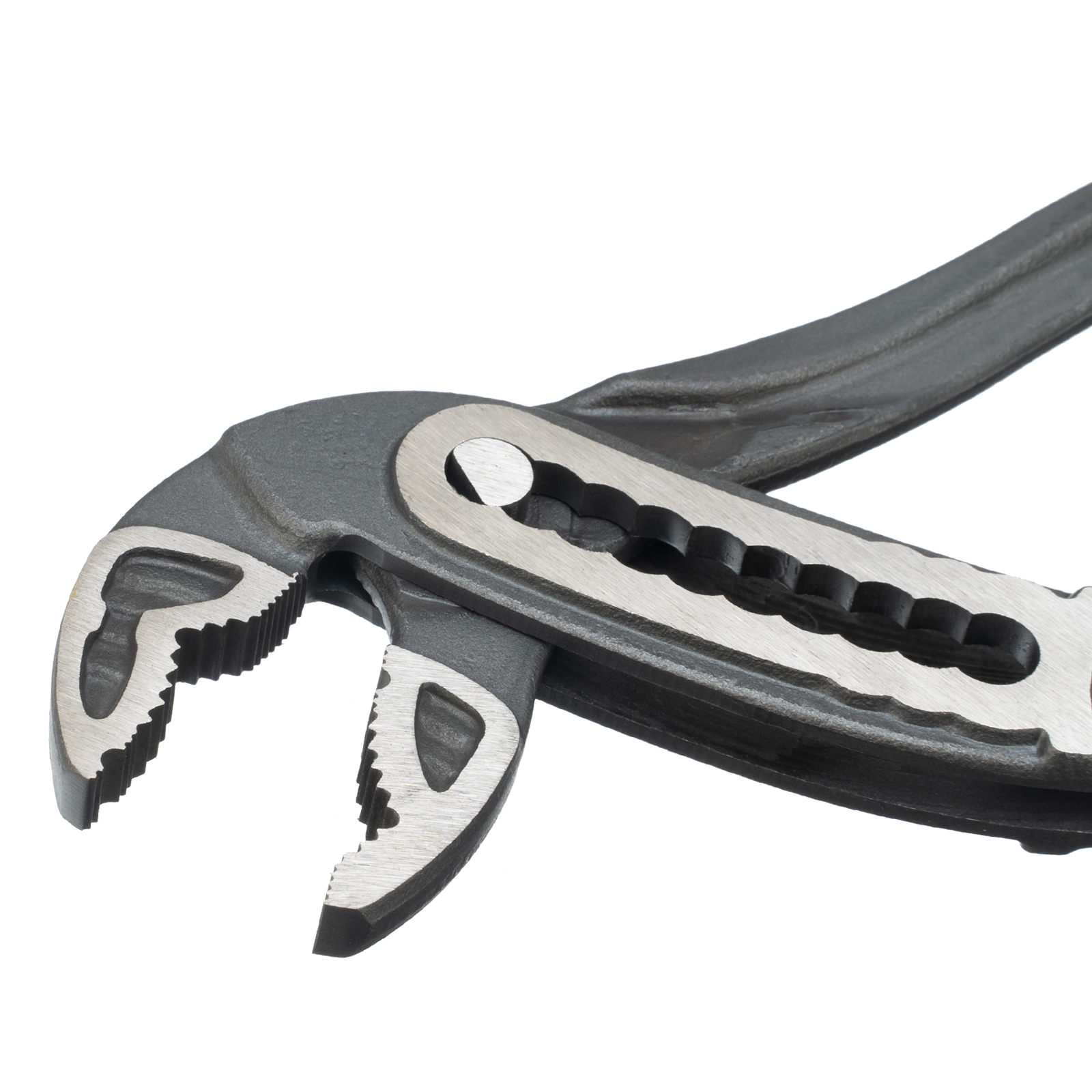 - Универсальность — разнонаправленные зубцы позволяют удерживать детали как с круглым, так и с квадратным профилем.