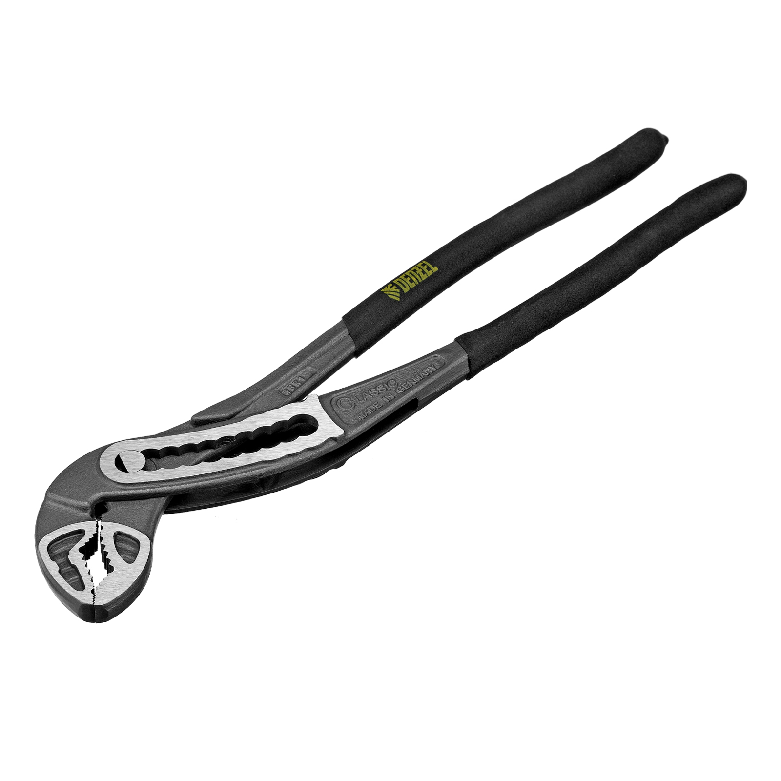 Переставные клещи Denzel 17903 длиной 300 мм, с обливными рукоятками, предназначены для фиксации и вращения деталей и заготовок различной формы. Подходят для захвата фитингов, труб, крепежных элементов. Инструмент используется при проведении ремонтных, монтажных, сантехнических работ.