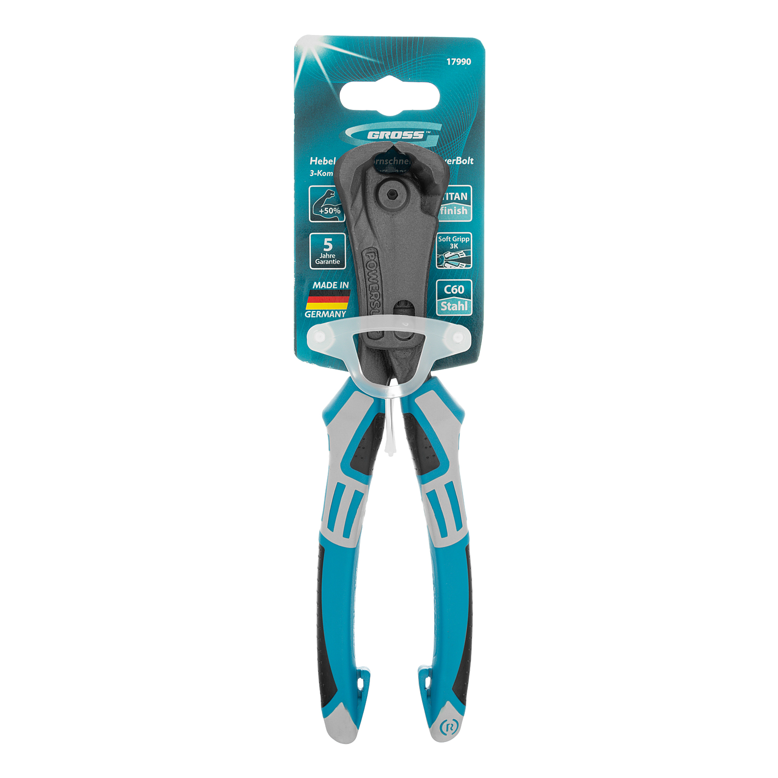 Усиленные торцевые клещи Gross 17990 длиной 200 мм, с рычажным механизмом и трехкомпонентными рукоятками, пригодятся для извлечения гвоздей и других крепежных элементов, а также перекусывания проволоки. Смещенный к режущим кромкам шарнир и оптимально расположенные рычаги увеличивают эффективность работы на 50%.