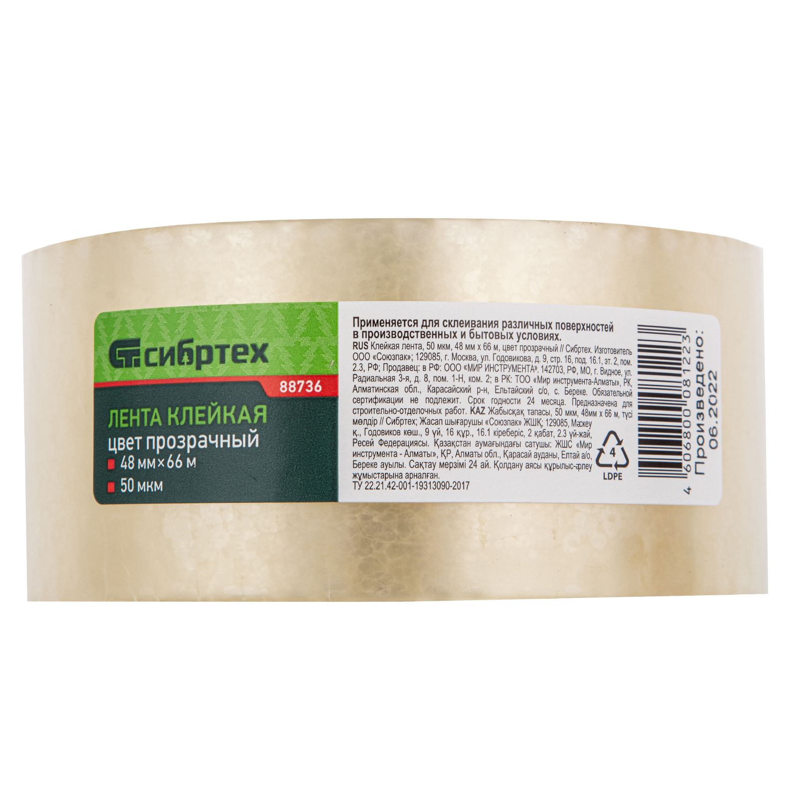 - Прочность и долговечность — лента толщиной 50 мкм на основе полипропиленовой пленки устойчива к разрывам и низким температурам, подходит для использования на неотапливаемых складах.