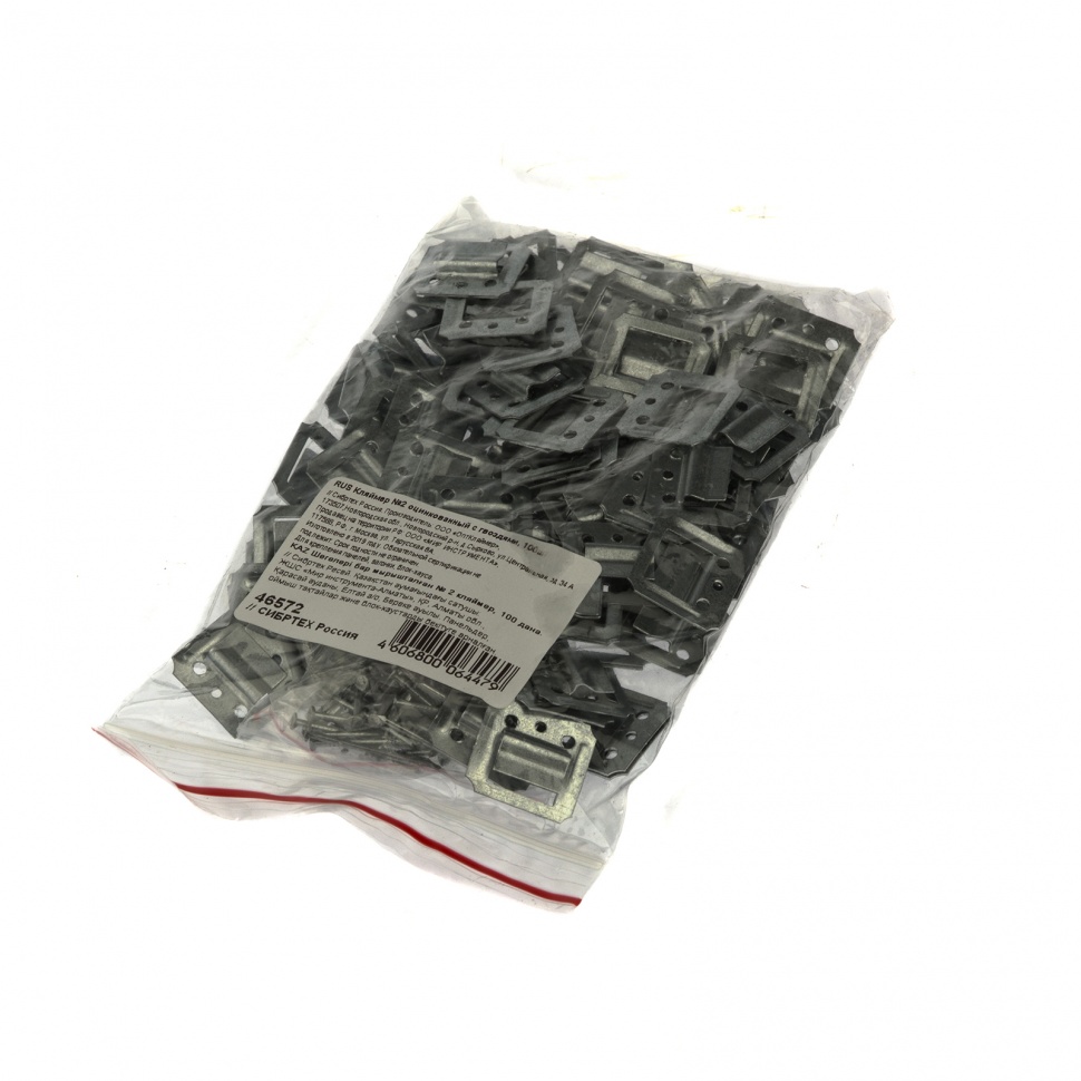 Оцинкованный кляймер №2 Сибртех 46572, с гвоздями, 100 шт. в упаковке, — крепежный элемент, применяющийся при отделке стен виниловой вагонкой, блок-хаусом или МДФ-панелями. Обеспечивает скрытое крепление, т. к. не виден снаружи и не портит внешний вид отделочного покрытия. Кляймер используется во время строительства домов и ремонта помещений.