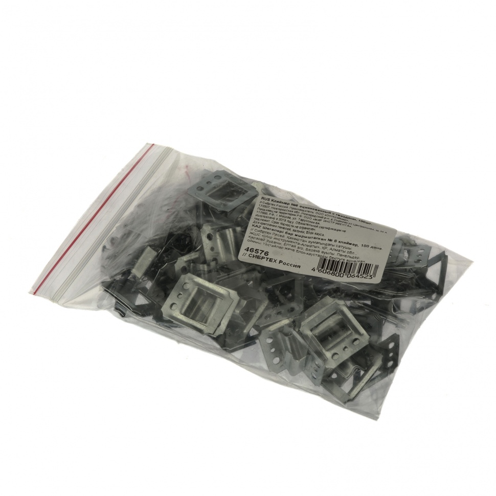 Оцинкованный кляймер №6 Сибртех 46576, с гвоздями, 100 шт. в упаковке, — крепежный элемент, применяющийся при отделке стен виниловой вагонкой, блок-хаусом или МДФ-панелями. Обеспечивает скрытое крепление, т. к. не виден снаружи и не портит внешний вид отделочного покрытия. Кляймер используется во время строительства домов и ремонта помещений.