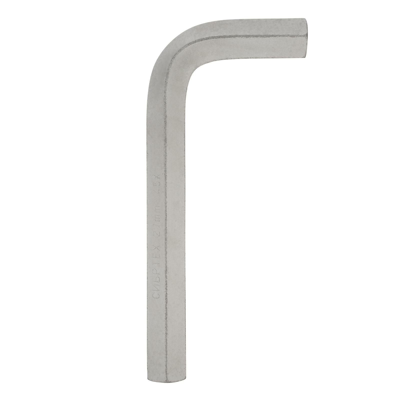 Имбусовый никелированный ключ Сибртех 12354 размером 27 мм, из закаленной стали 45Х, используется для монтажа и демонтажа резьбового крепежа с шестигранным шлицем HEX. Пригодится для сборки мебели, ремонта бытовой техники, велосипедов и автомобилей.
