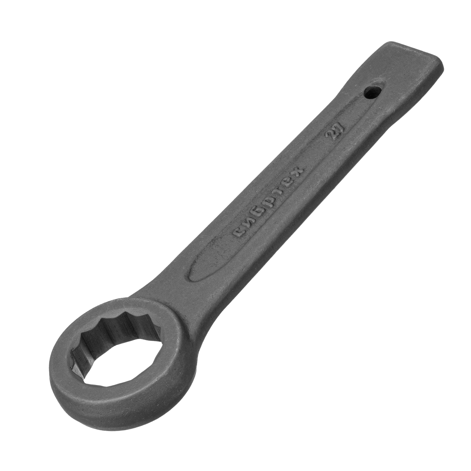 Ключ кольцевой ударный Сибртех 14271 позволяет откручивать и закручивать резьбовые соединения размером 27 мм. Благодаря 12-гранному профилю надежно удерживает головку крепежа. Удобен для работы в ограниченном пространстве — для перестановки его достаточно повернуть на 30°. Инструмент применяется в слесарных мастерских, будет полезен во время ремонта, а также для решения бытовых задач.