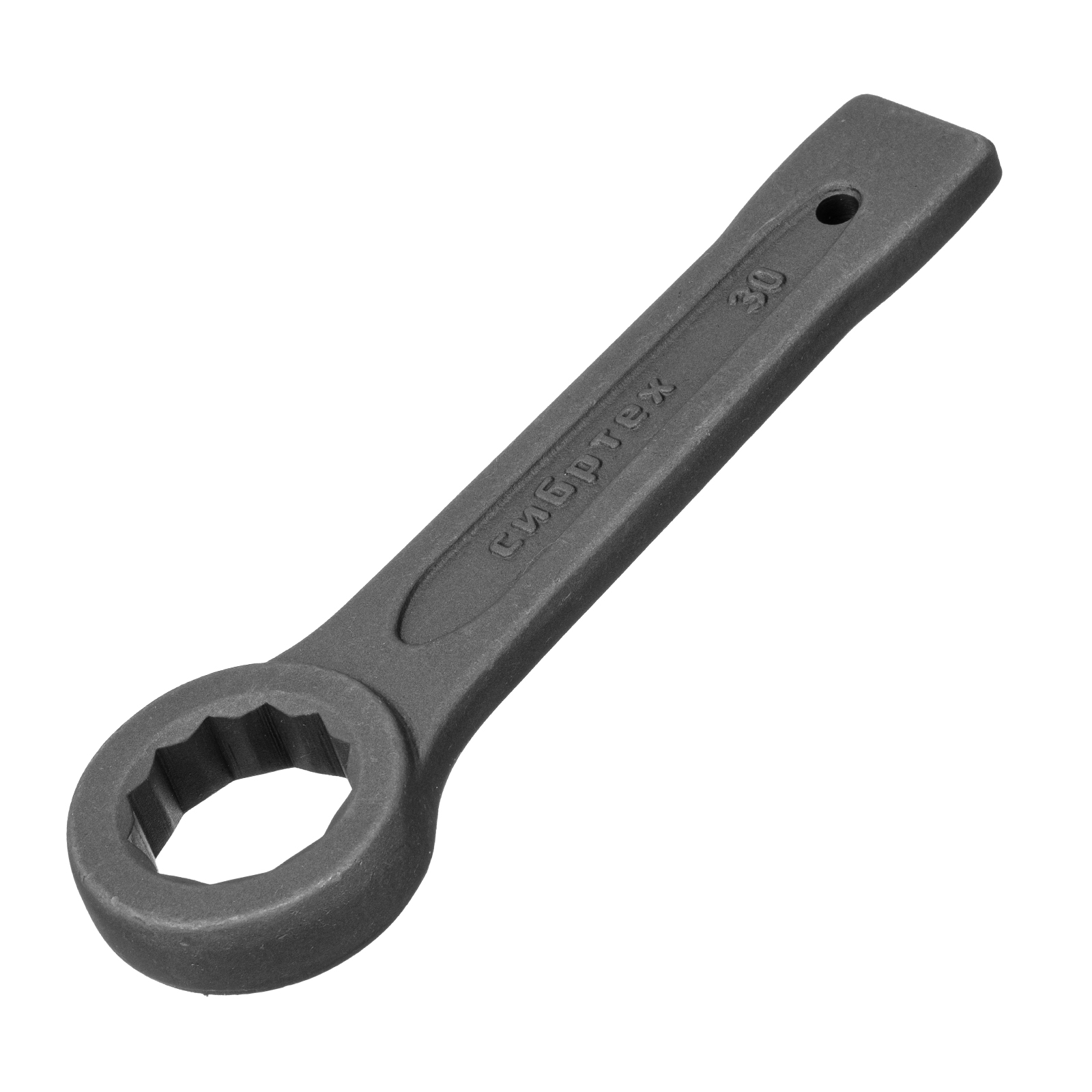 Ключ кольцевой ударный Сибртех 14273 позволяет откручивать и закручивать резьбовые соединения размером 30 мм. Благодаря 12-гранному профилю надежно удерживает головку крепежа. Удобен для работы в ограниченном пространстве — для перестановки его достаточно повернуть на 30°. Инструмент применяется в слесарных мастерских, будет полезен во время ремонта, а также для решения бытовых задач.