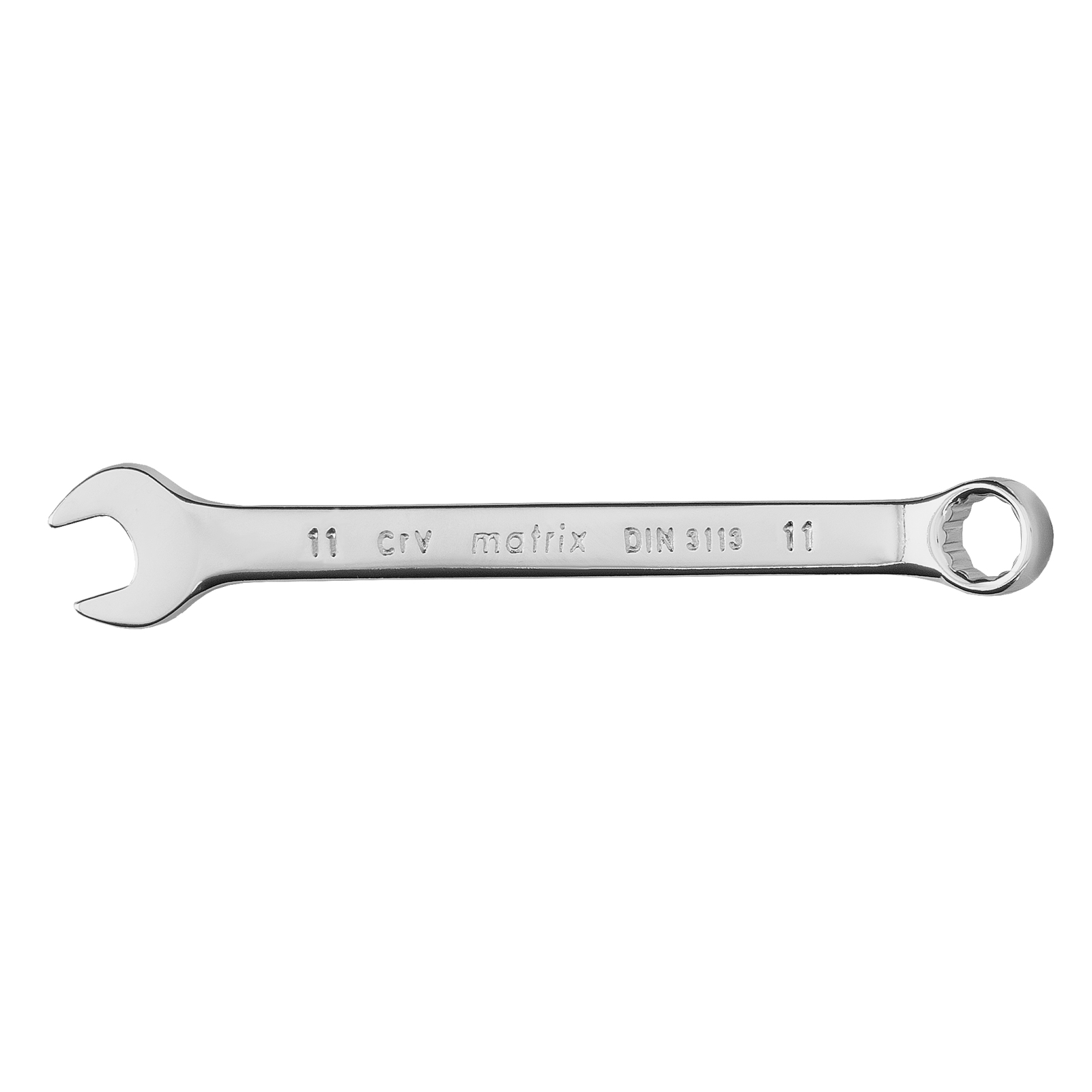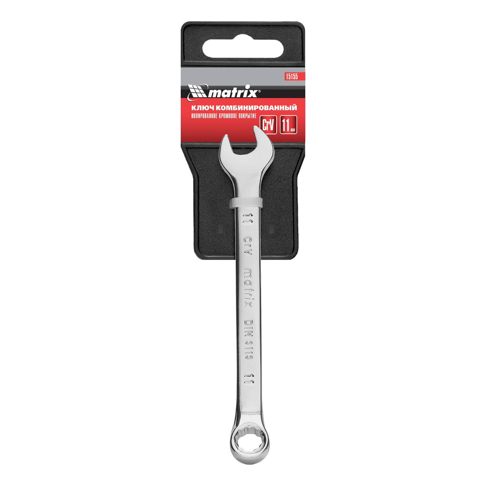 Комбинированный ключ Matrix 15155 размером 11 мм, из стали CrV, с покрытием «полированный хром», пригодится во время ремонтных работ дома или в гараже. С его помощью можно быстро монтировать и демонтировать крепежные элементы. Угол наклона кольцевого зева относительно плоскости инструмента составляет 15°, поэтому ключом удобно работать в труднодоступных местах.