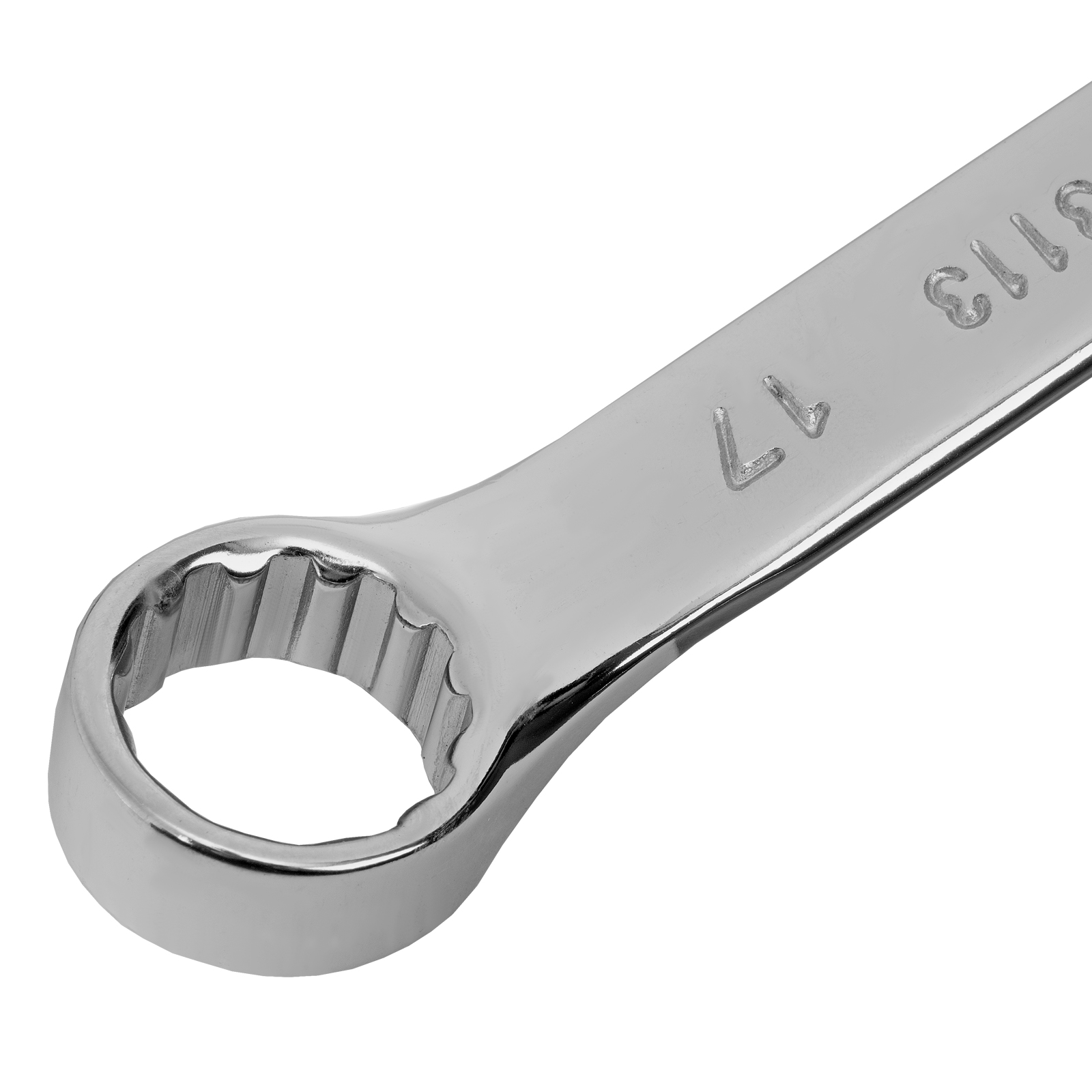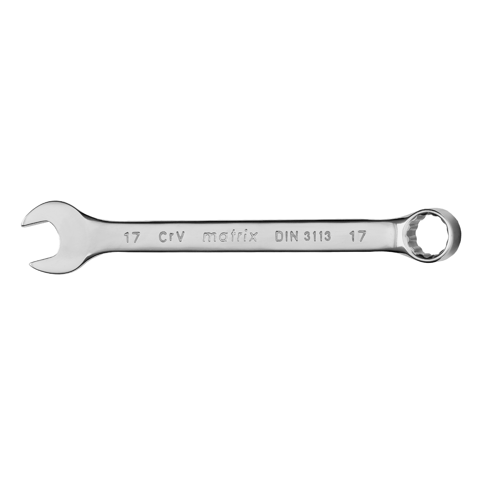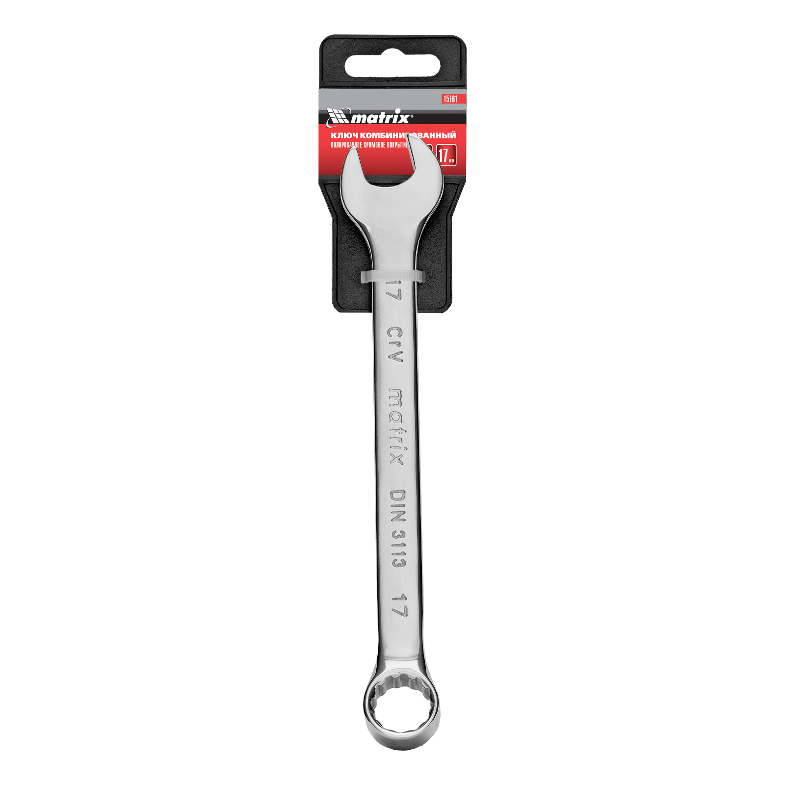 Комбинированный ключ Matrix 15161 размером 17 мм, из стали CrV, с покрытием «полированный хром», пригодится во время ремонтных работ дома или в гараже. С его помощью можно быстро монтировать и демонтировать крепежные элементы. Угол наклона кольцевого зева относительно плоскости инструмента составляет 15°, поэтому ключом удобно работать в труднодоступных местах.