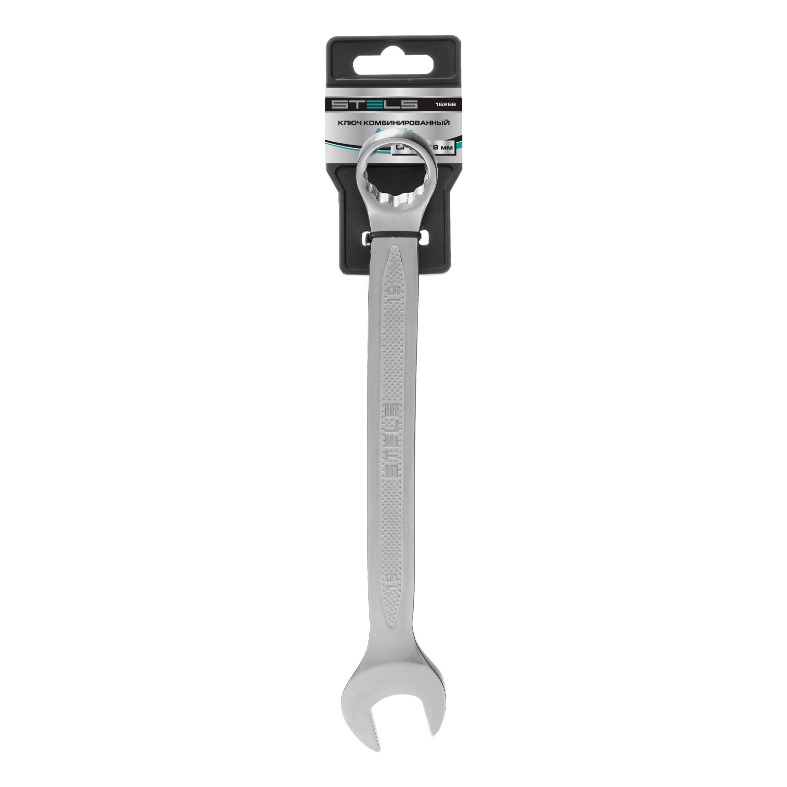 <p>Комбинированный ключ Stels 15256 из стали CrV, 19 мм, антислип, позволяет откручивать и закручивать резьбовые соединения. Универсален в применении, т.к. имеет кольцевую и рожковую головки. 12-гранный профиль накидного зева обеспечивает увеличенную площадь контакта с поверхностью крепежа, что минимизирует вероятность его деформации. Ключ будет полезен в автомастерской, для монтажа и демонтажа оборудования, пригодится для работ по дому.</p><h2>Преимущества</h2><ul><li>Высокий показатель прочности — инструмент изготовлен из стали хромованадиевой группы, твердость рабочей части составляет 42-50 HRC.</li><li>Улучшенные антикоррозионные свойства и повышенная износостойкость благодаря хромированному покрытию.</li><li>Удобство при выполнении монтажных работ — кольцевой зев смещен на 15 градусов относительно тела ключа.</li><li>Надежный хват — благодаря рельефной поверхности ключ не скользит в руке.</li></ul>