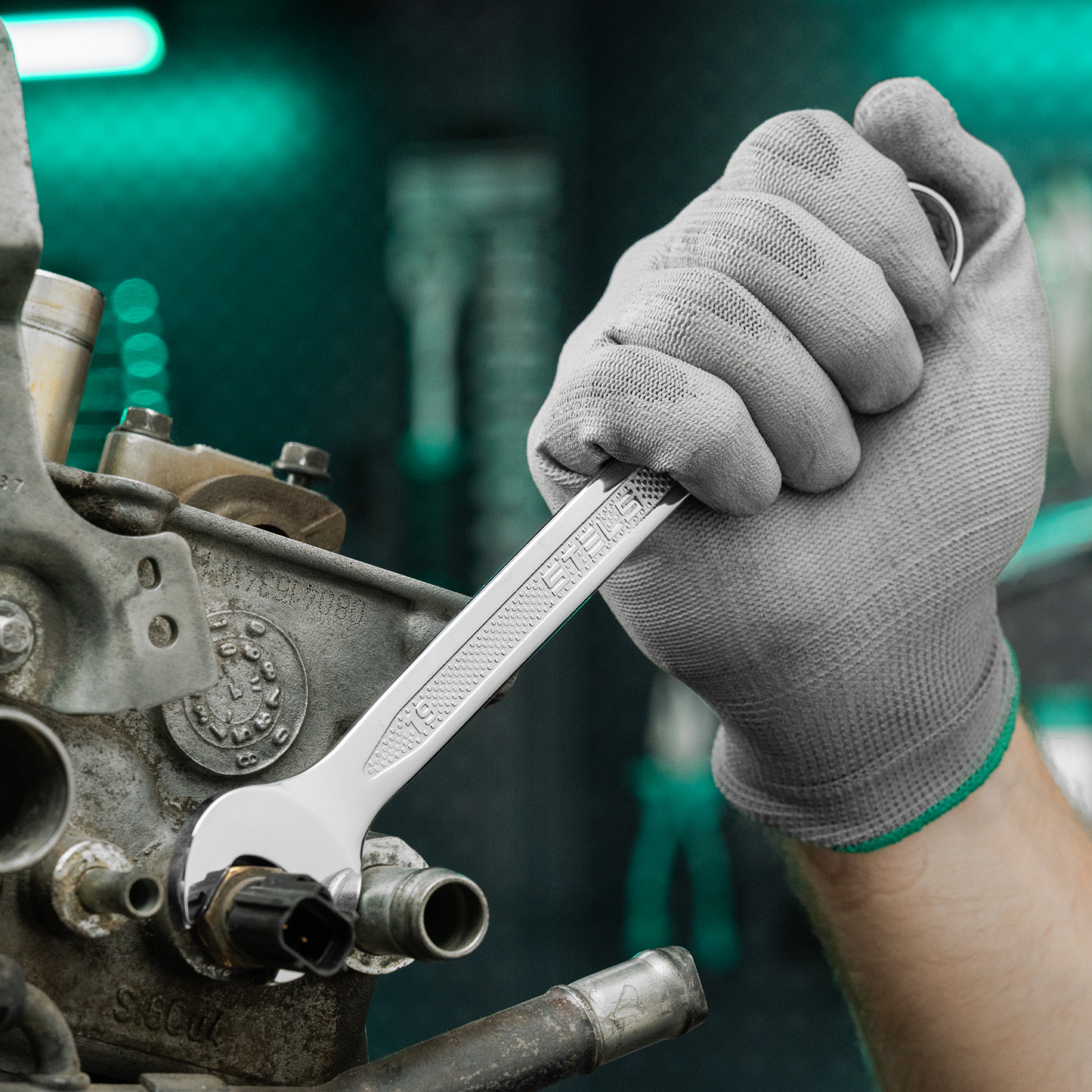 Надежный хват — благодаря рельефной поверхности ключ не скользит в руке.