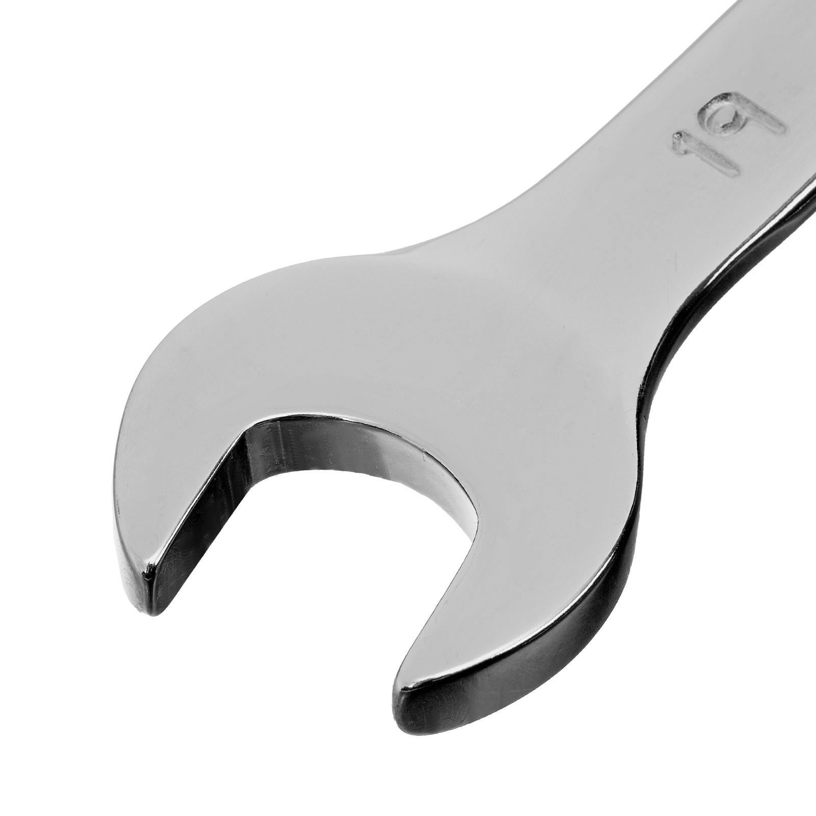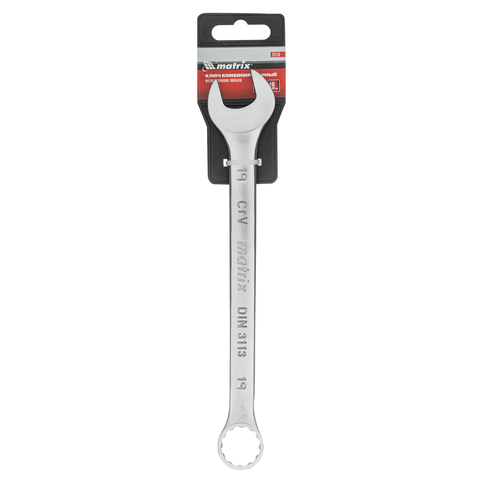 Комбинированный ключ Matrix 15115 размером 19 мм, из стали CrV, с покрытием «матовый хром», пригодится во время ремонтных работ дома или в гараже. С его помощью можно быстро монтировать и демонтировать крепежные элементы. Угол наклона кольцевого зева относительно плоскости инструмента составляет 15°, поэтому ключом удобно работать в труднодоступных местах.