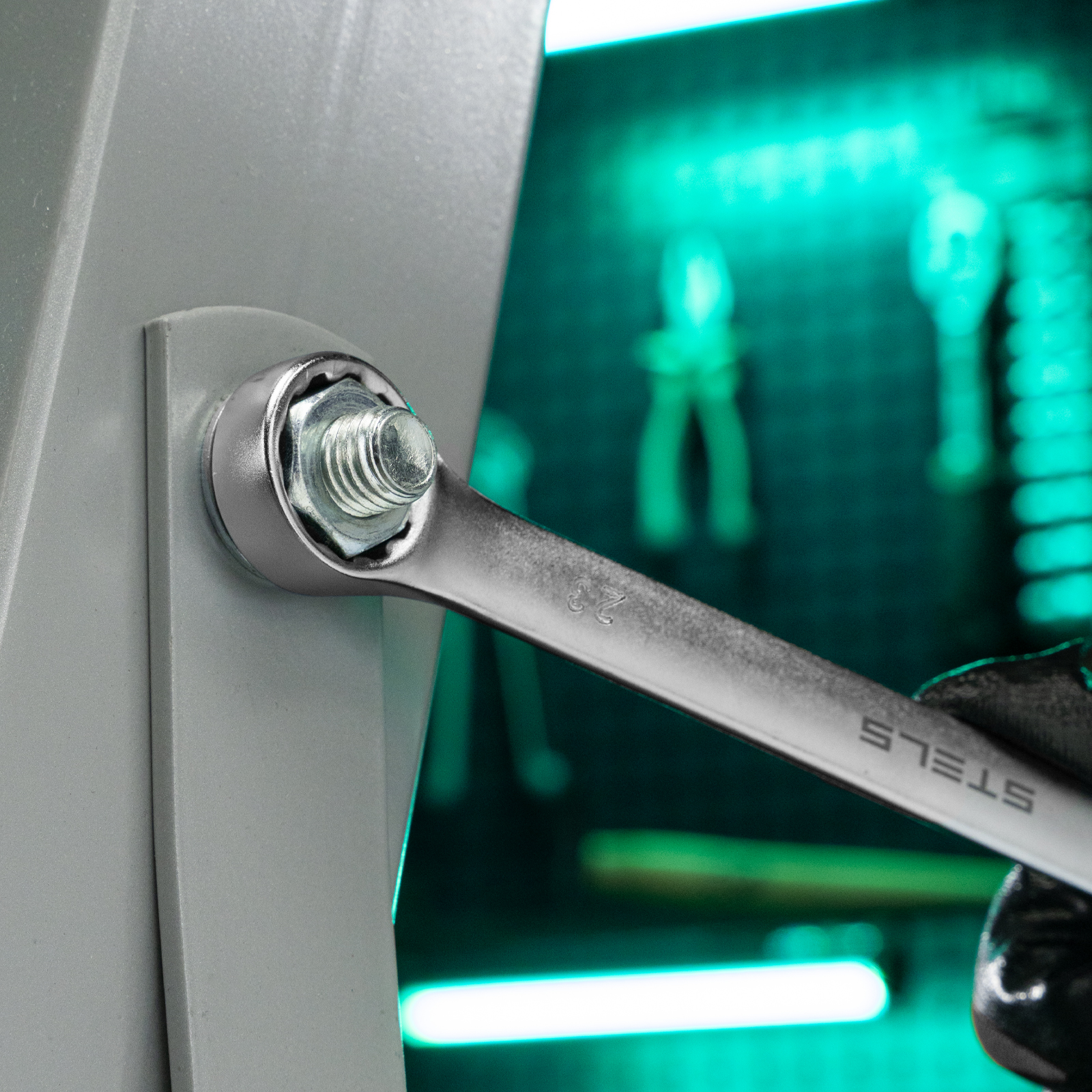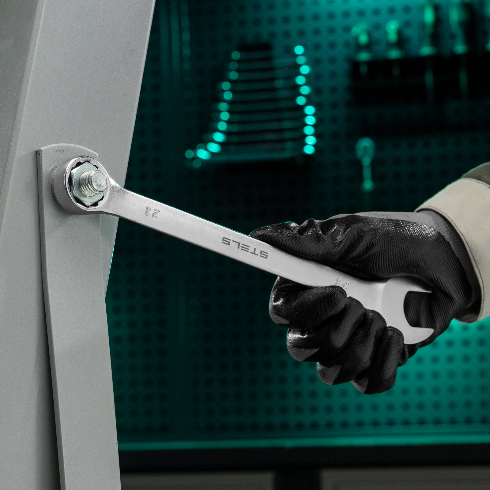 Комбинированный ключ Stels 15226 из стали CrV, 23 мм, покрытый матовым хромом, используется для закручивания и откручивания гаечных и болтовых соединений. Накидная головка имеет 12-гранную внутреннюю поверхность, что облегчает работу с крепежом и уменьшает опасность его повреждения. Ключ применяется в слесарных мастерских и автосервисах, а также будет полезен для решения бытовых задач.