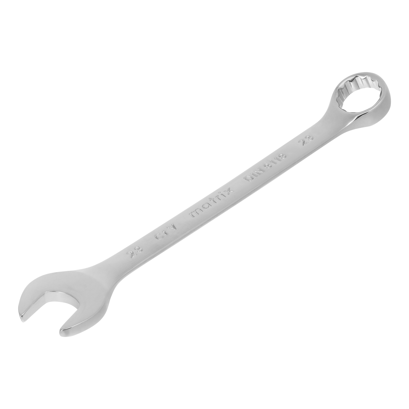 Комбинированный ключ Matrix 15168 размером 23 мм, из стали CrV, с покрытием «полированный хром», пригодится во время ремонтных работ дома или в гараже. С его помощью можно быстро монтировать и демонтировать крепежные элементы. Угол наклона кольцевого зева относительно плоскости инструмента составляет 15°, поэтому ключом удобно работать в труднодоступных местах.
