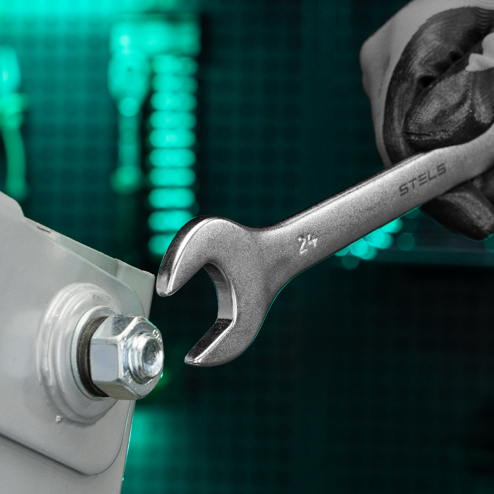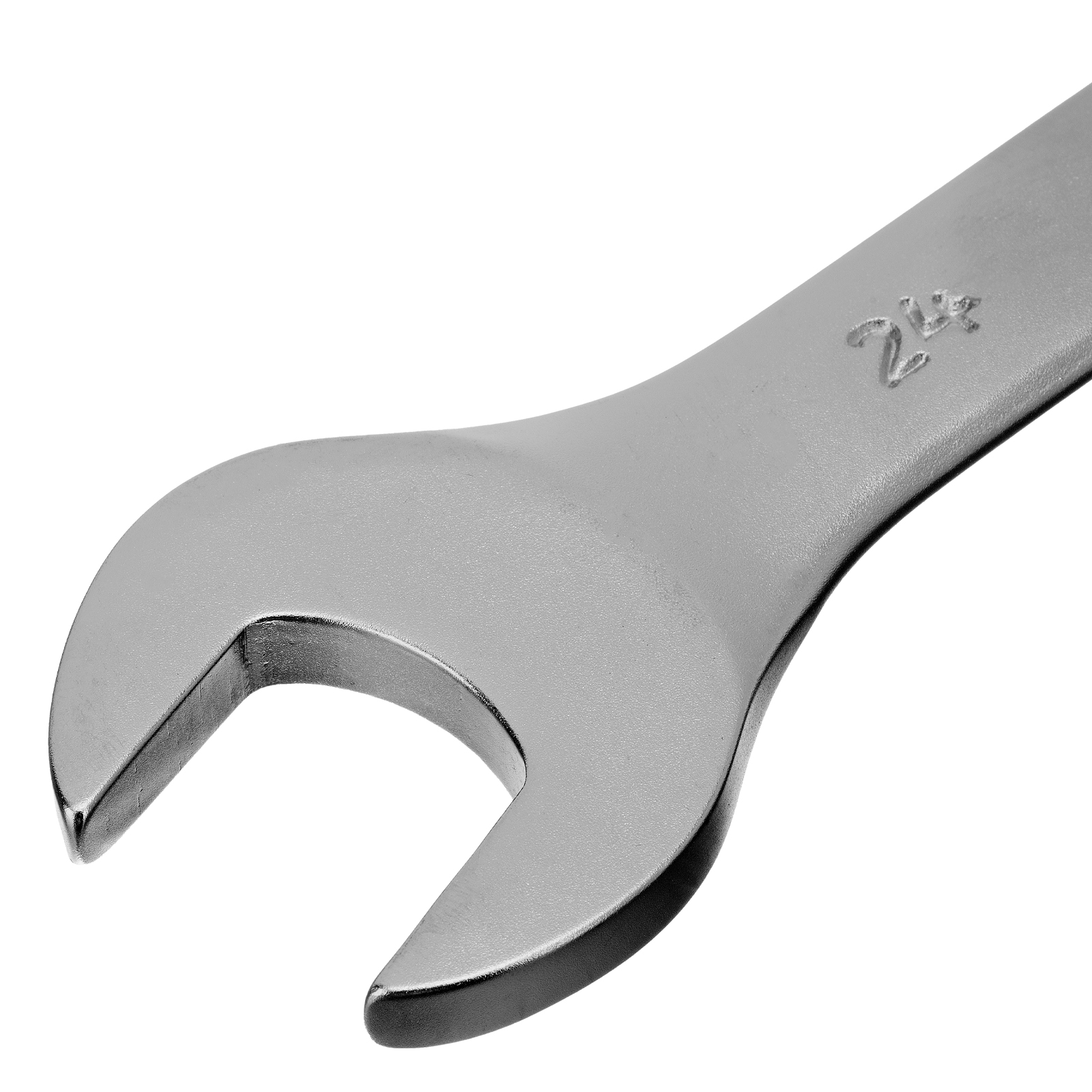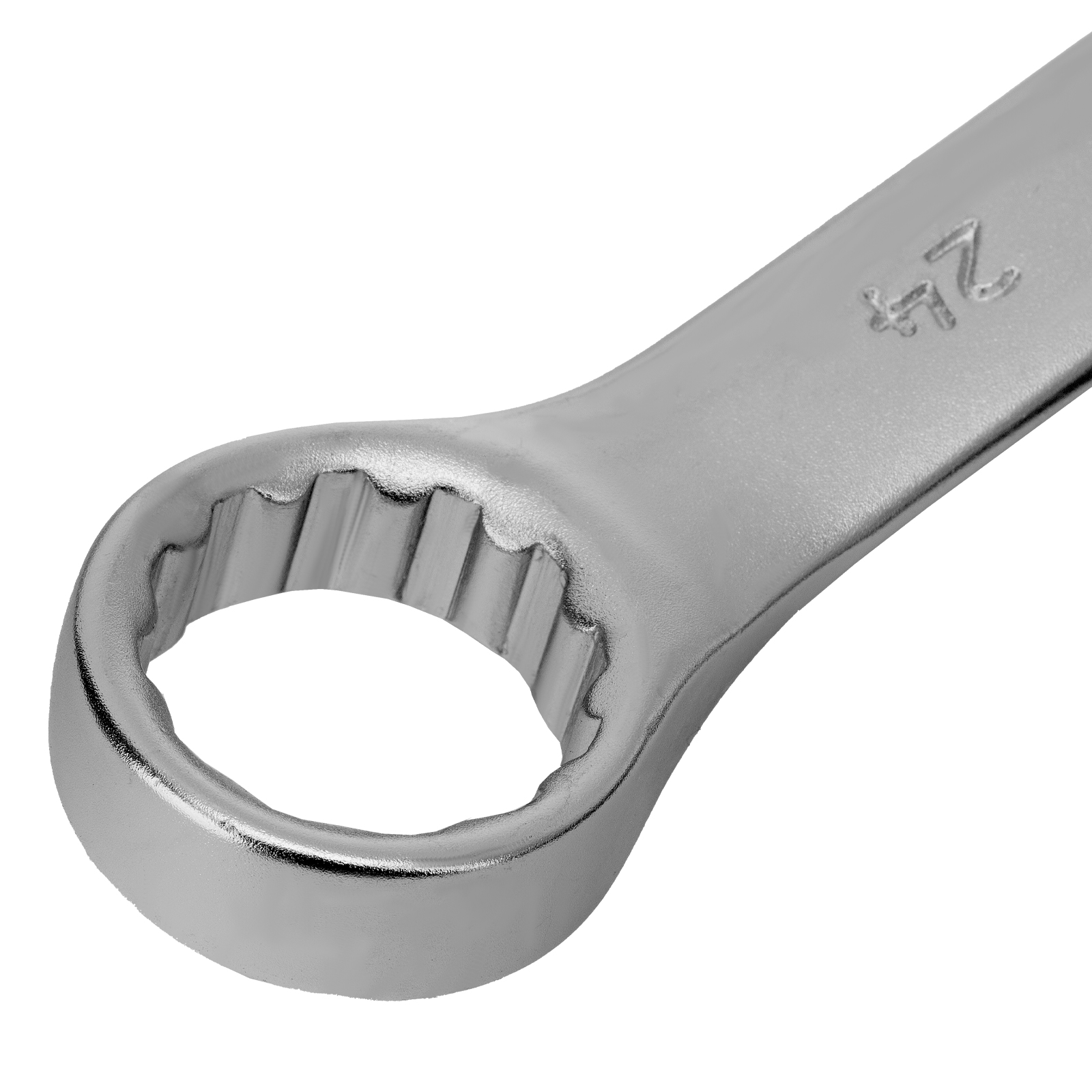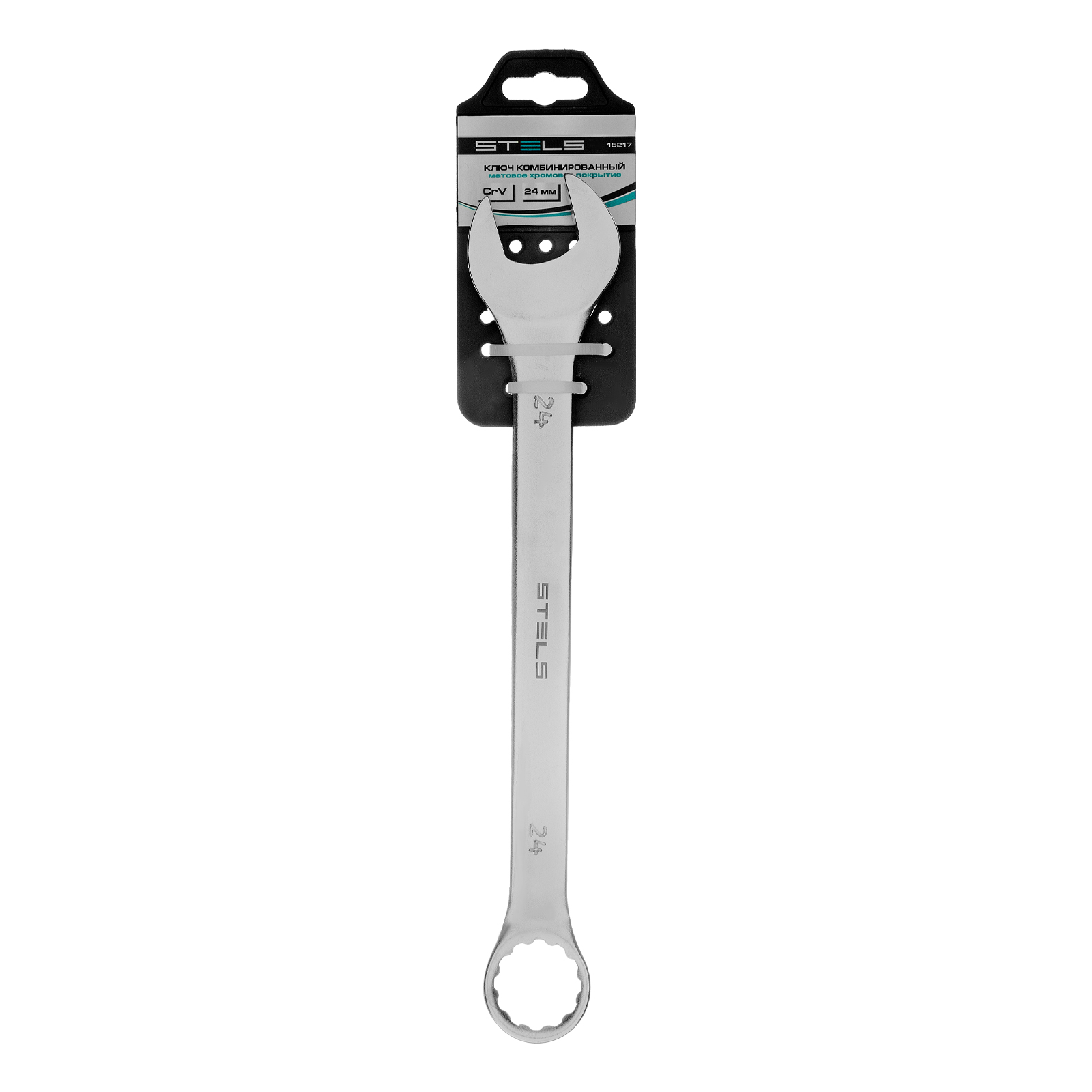 Комбинированный ключ Stels 15217 из стали CrV, 24 мм, покрытый матовым хромом, используется для закручивания и откручивания гаечных и болтовых соединений. Накидная головка имеет 12-гранную внутреннюю поверхность, что облегчает работу с крепежом и уменьшает опасность его повреждения. Ключ применяется в слесарных мастерских и автосервисах, а также будет полезен для решения бытовых задач.