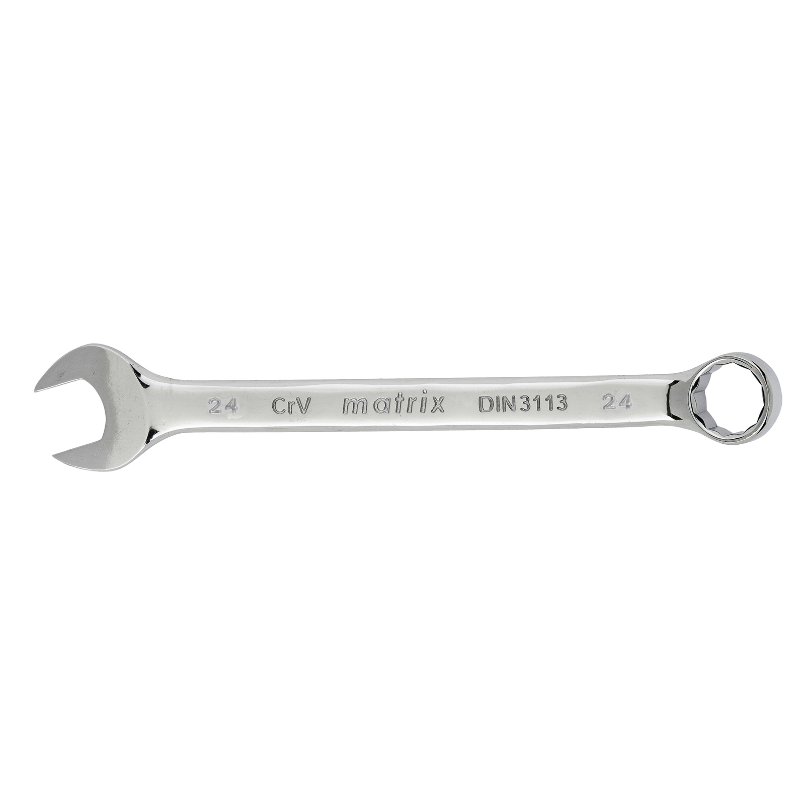 Комбинированный ключ Matrix 15169 размером 24 мм, из стали CrV, с покрытием «полированный хром», пригодится во время ремонтных работ дома или в гараже. С его помощью можно быстро монтировать и демонтировать крепежные элементы. Угол наклона кольцевого зева относительно плоскости инструмента составляет 15°, поэтому ключом удобно работать в труднодоступных местах.