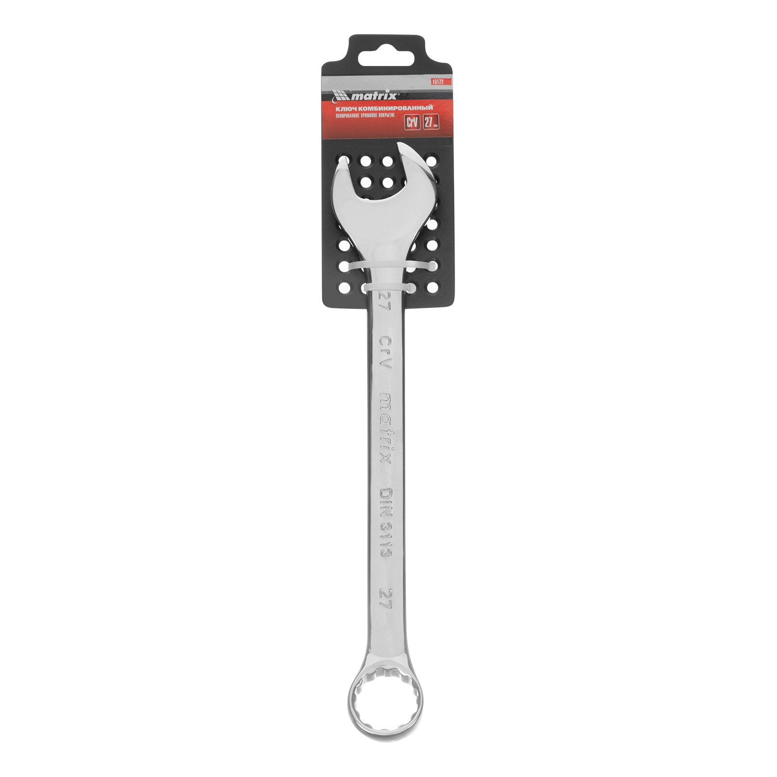 Комбинированный ключ Matrix 15172 размером 27 мм, из стали CrV, с покрытием «полированный хром», пригодится во время ремонтных работ дома или в гараже. С его помощью можно быстро монтировать и демонтировать крепежные элементы. Угол наклона кольцевого зева относительно плоскости инструмента составляет 15°, поэтому ключом удобно работать в труднодоступных местах.