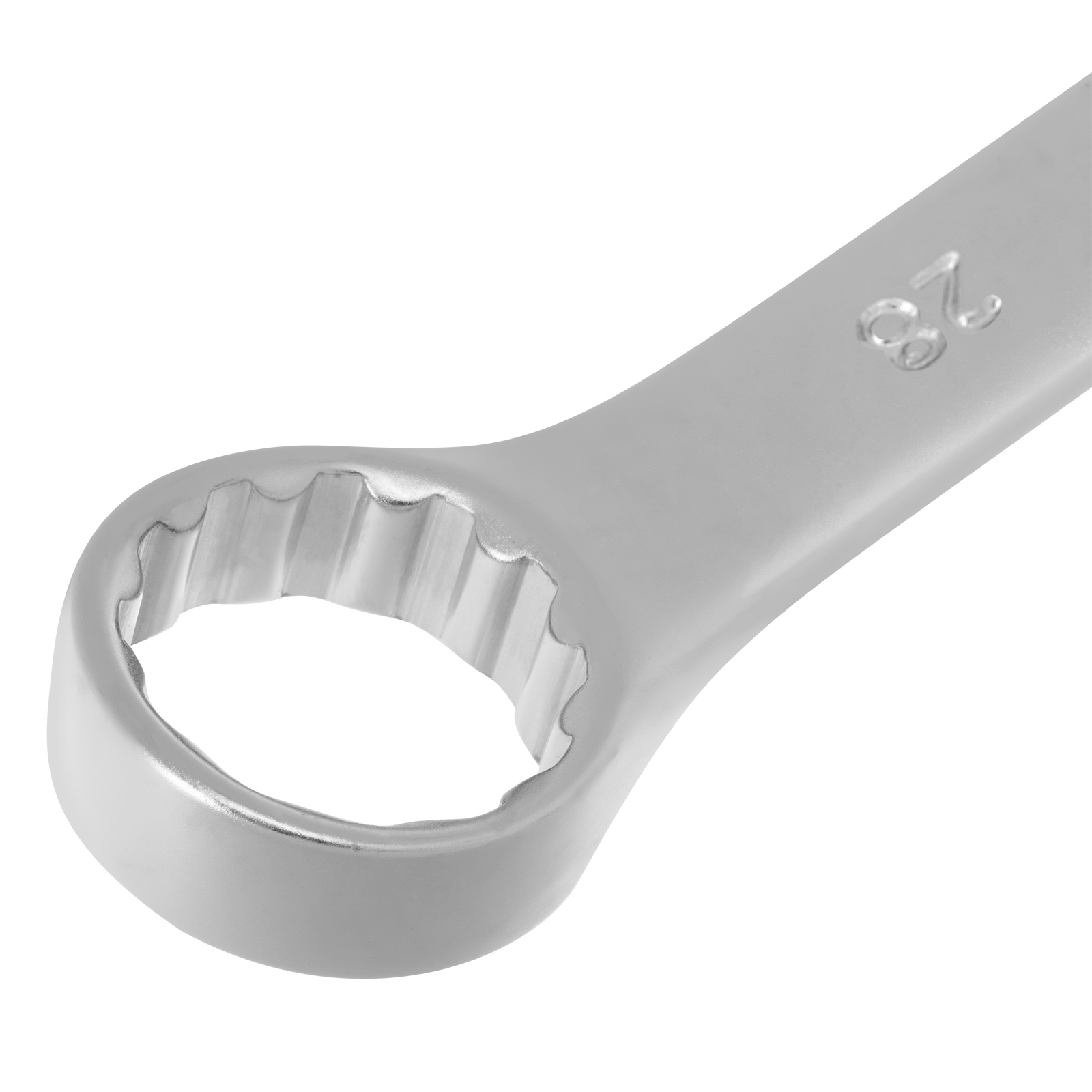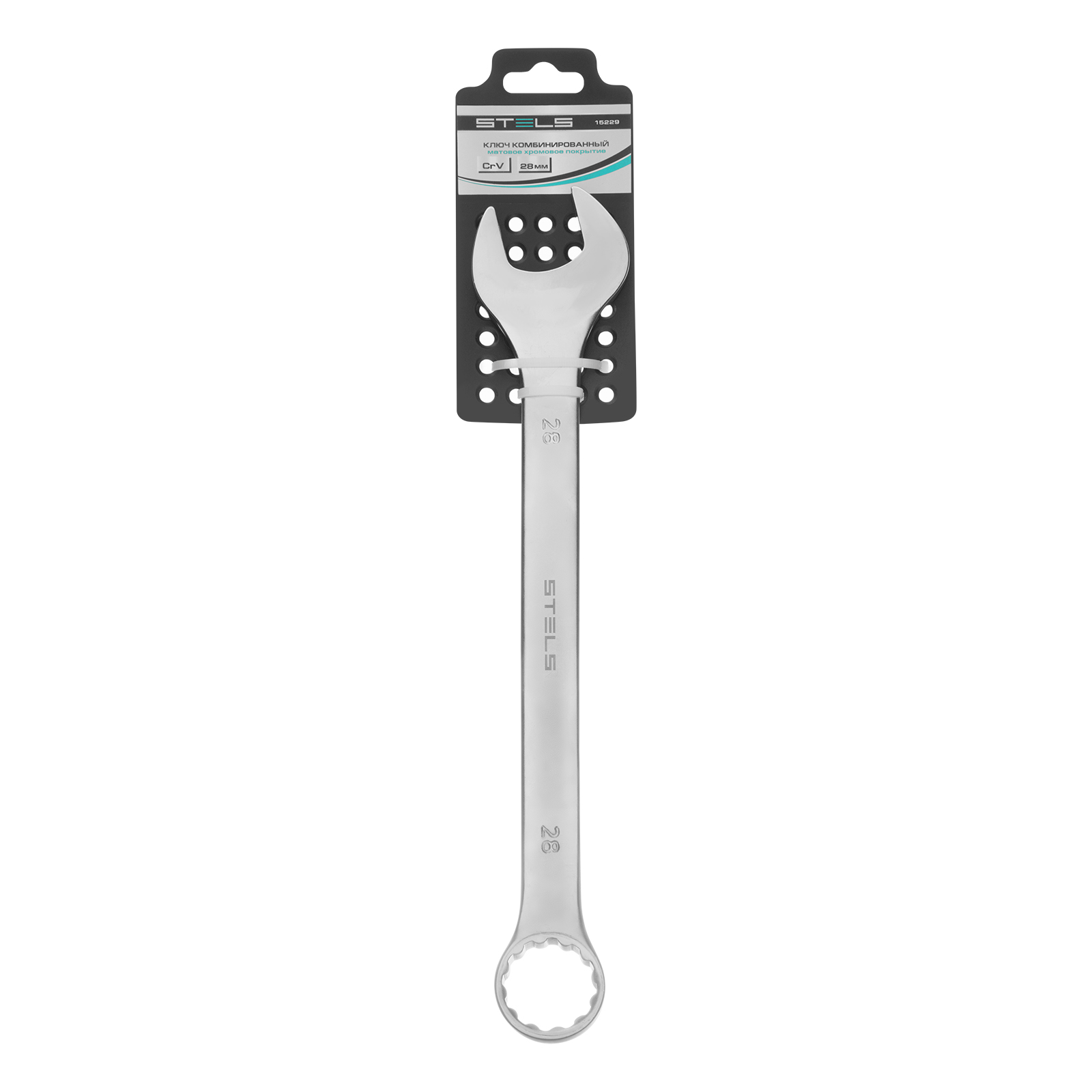 Комбинированный ключ Stels 15229 из стали CrV, 28 мм, покрытый матовым хромом, используется для закручивания и откручивания гаечных и болтовых соединений. Накидная головка имеет 12-гранную внутреннюю поверхность, что облегчает работу с крепежом и уменьшает опасность его повреждения. Ключ применяется в слесарных мастерских и автосервисах, а также будет полезен для решения бытовых задач.