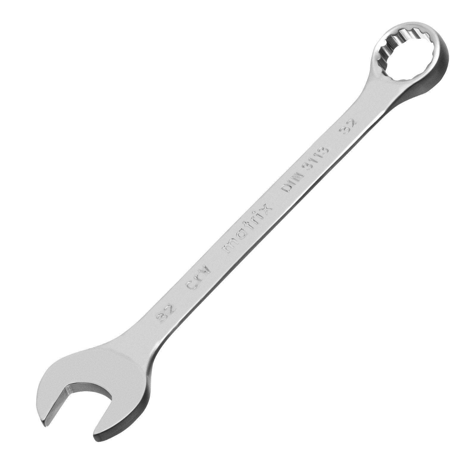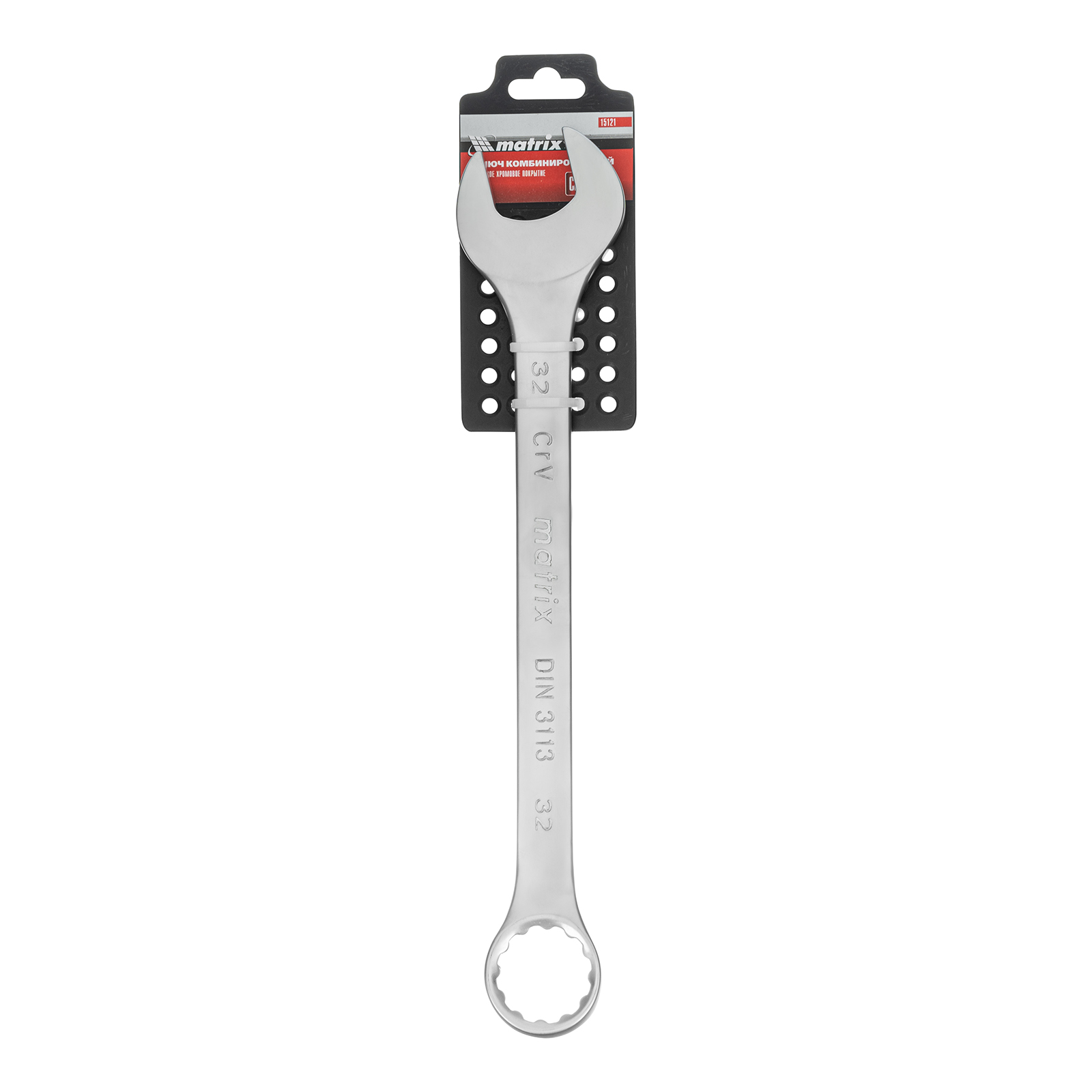 Комбинированный ключ Matrix 15121 размером 32 мм, из стали CrV, с покрытием «матовый хром», пригодится во время ремонтных работ дома или в гараже. С его помощью можно быстро монтировать и демонтировать крепежные элементы. Угол наклона кольцевого зева относительно плоскости инструмента составляет 15°, поэтому ключом удобно работать в труднодоступных местах.