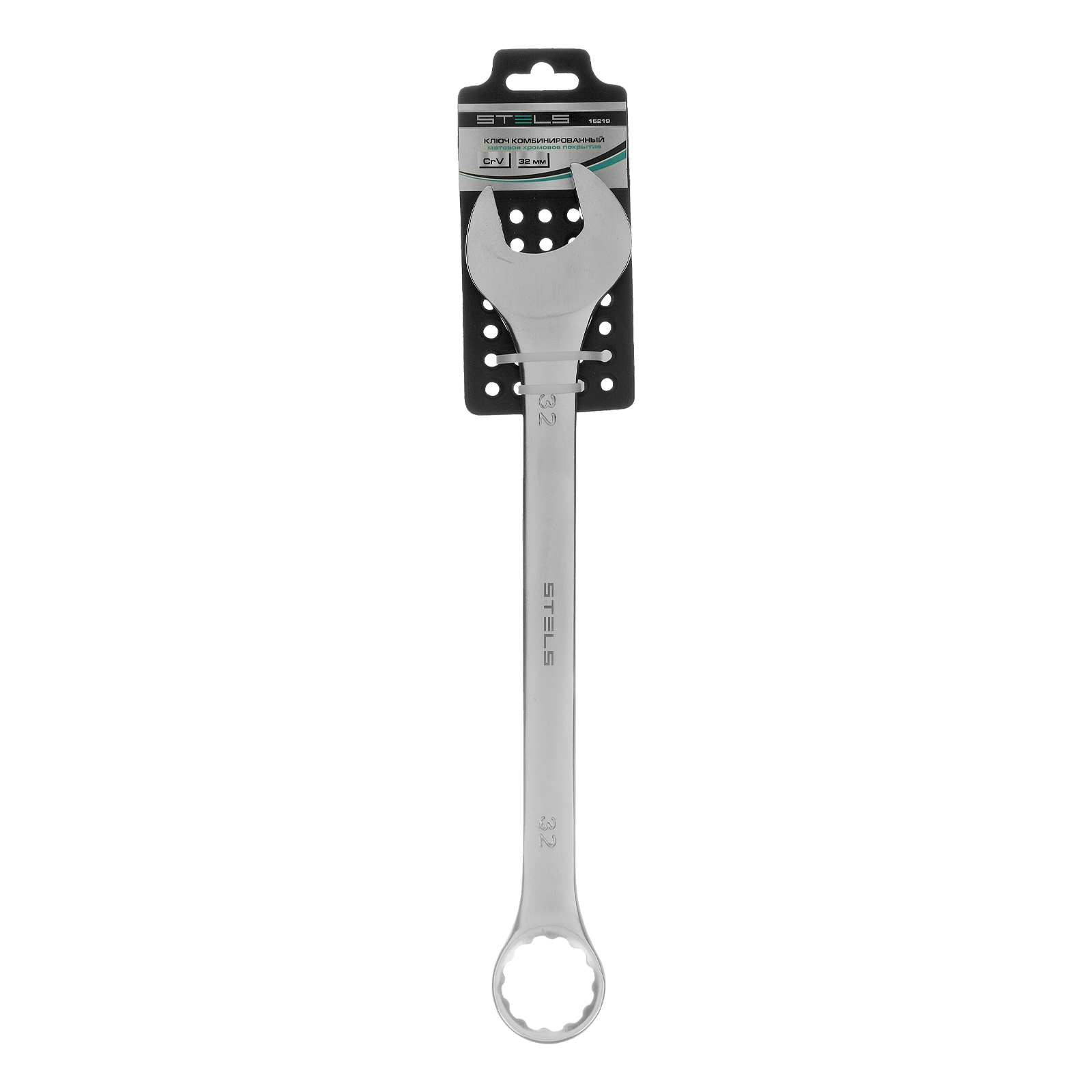 Комбинированный ключ Stels 15219 из стали CrV, 32 мм, покрытый матовым хромом, используется для закручивания и откручивания гаечных и болтовых соединений. Накидная головка имеет 12-гранную внутреннюю поверхность, что облегчает работу с крепежом и уменьшает опасность его повреждения. Ключ применяется в слесарных мастерских и автосервисах, а также будет полезен для решения бытовых задач.