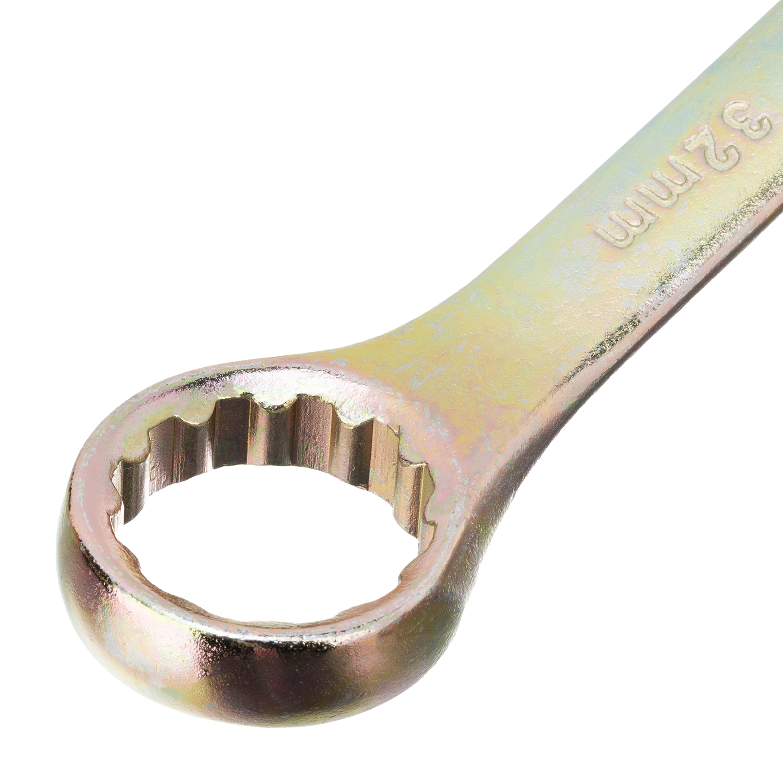 Комбинированный ключ Сибртех 14989, покрытый желтым цинком, предназначен для слесарно-монтажных работ с резьбовыми соединениями размером 32 мм. Наличие рожкового и кольцевого зева делает ключ универсальным. Накидная головка с 12-гранным профилем надежно удерживает крепеж, уменьшая риск его деформации. Ключ будет полезен при проведении строительных и ремонтных работ, пригодится для сборки и разборки оборудования, а также необходим в быту.