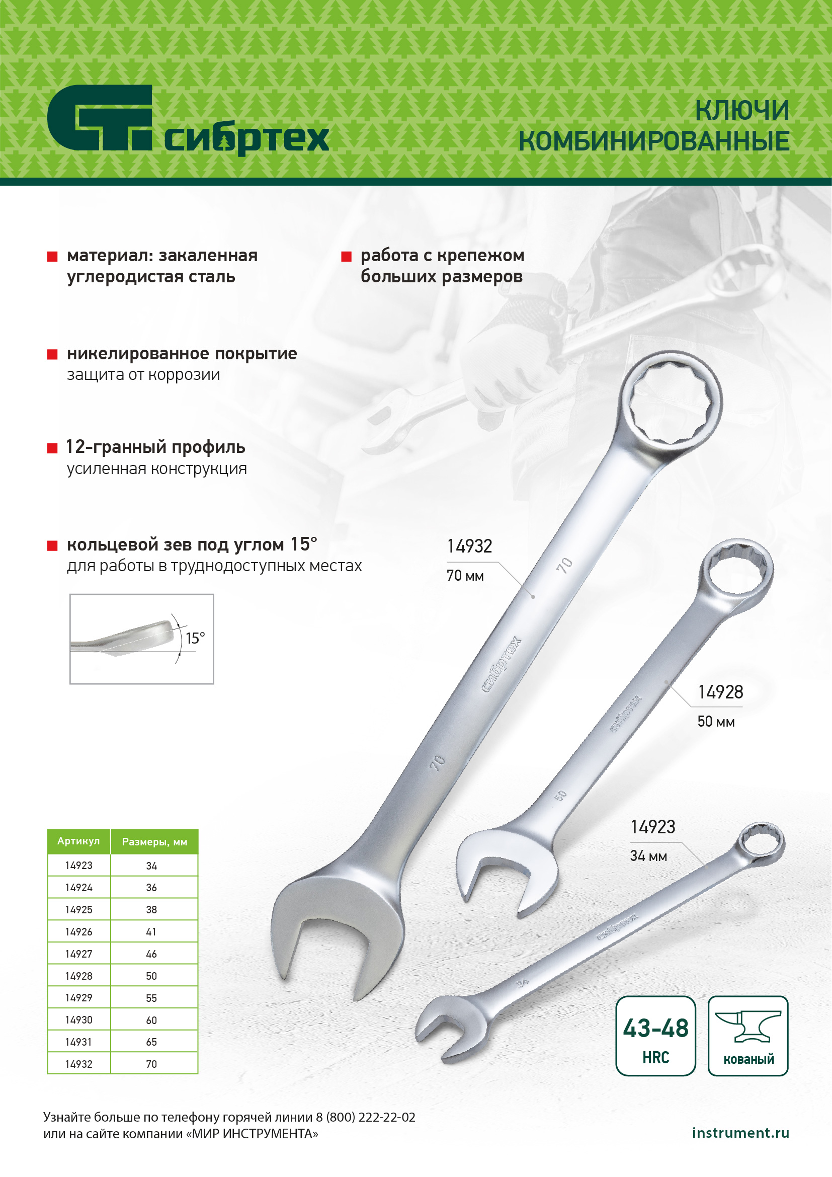- Функциональность — кольцевой зев наклонен на 15° относительно плоскости ключа, что упрощает его установку на головку крепежа.