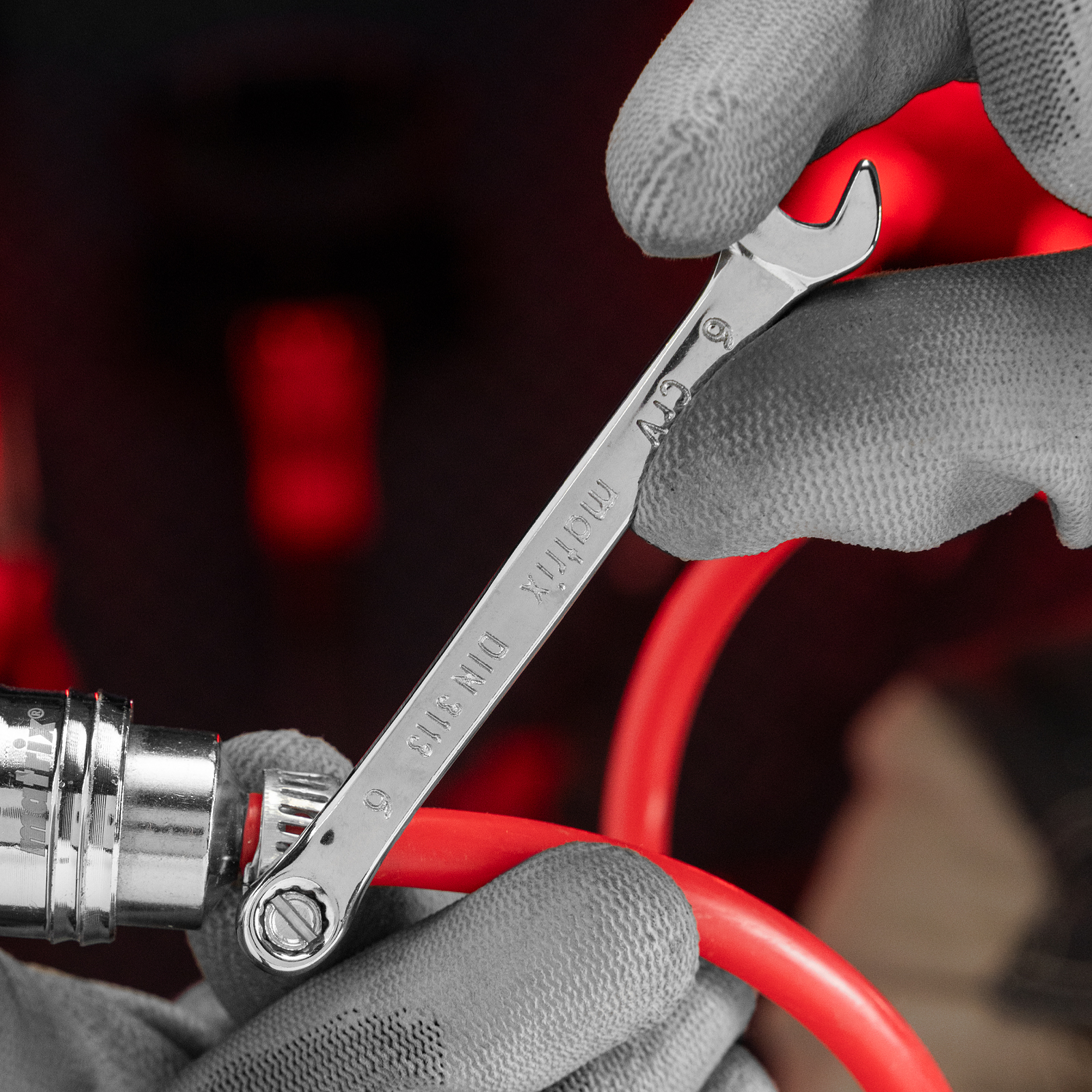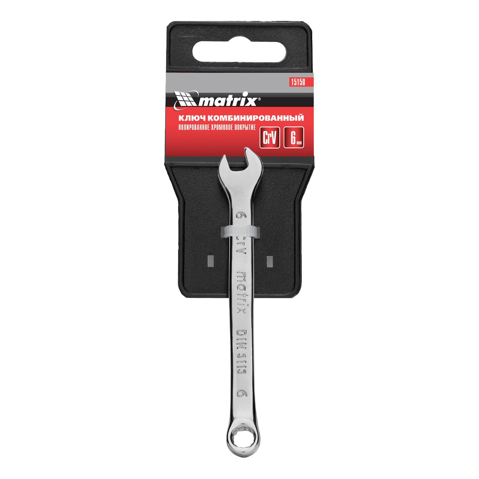 Комбинированный ключ Matrix 15150 размером 6 мм, из стали CrV, с покрытием «полированный хром», пригодится во время ремонтных работ дома или в гараже. С его помощью можно быстро монтировать и демонтировать крепежные элементы. Угол наклона кольцевого зева относительно плоскости инструмента составляет 15°, поэтому ключом удобно работать в труднодоступных местах.