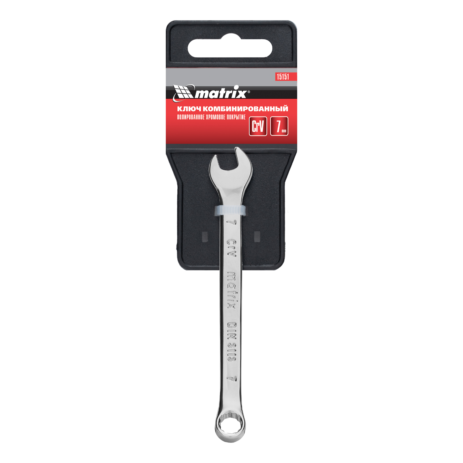 Комбинированный ключ Matrix 15151 размером 7 мм, из стали CrV, с покрытием «полированный хром», пригодится во время ремонтных работ дома или в гараже. С его помощью можно быстро монтировать и демонтировать крепежные элементы. Угол наклона кольцевого зева относительно плоскости инструмента составляет 15°, поэтому ключом удобно работать в труднодоступных местах.