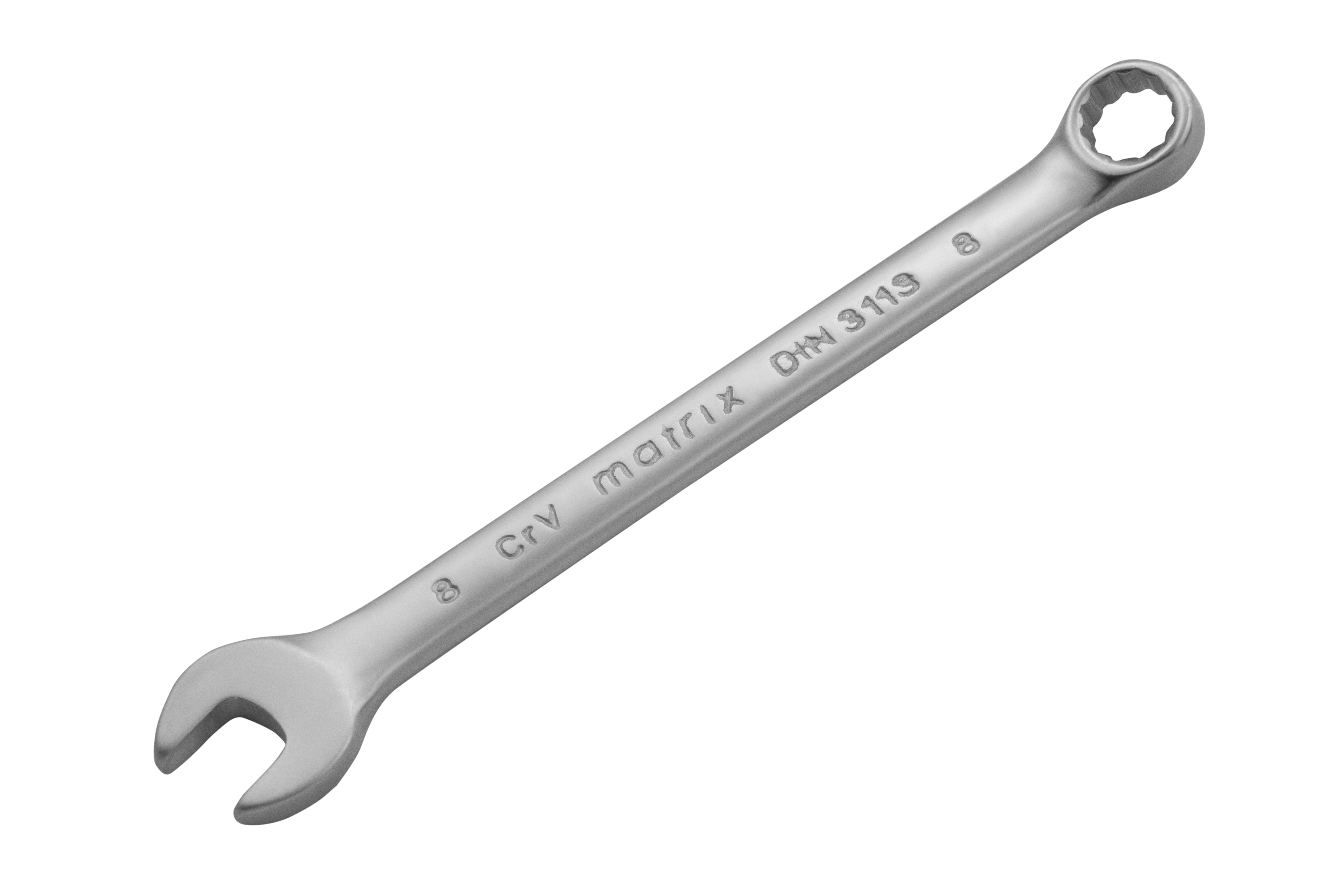 Комбинированный ключ Matrix 15104 размером 8 мм, из стали CrV, с покрытием «матовый хром», пригодится во время ремонтных работ дома или в гараже. С его помощью можно быстро монтировать и демонтировать крепежные элементы. Угол наклона кольцевого зева относительно плоскости инструмента составляет 15°, поэтому ключом удобно работать в труднодоступных местах.