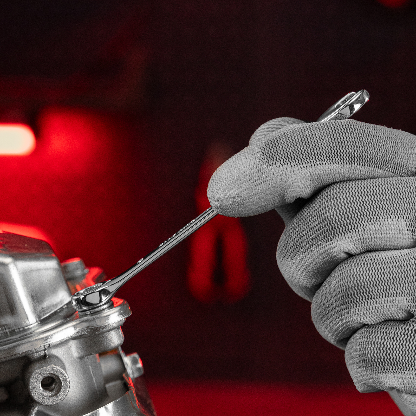 - Аккуратная работа — накидные части с 12-гранным профилем охватывают всю поверхность крепежа, уменьшая риск деформации его граней.