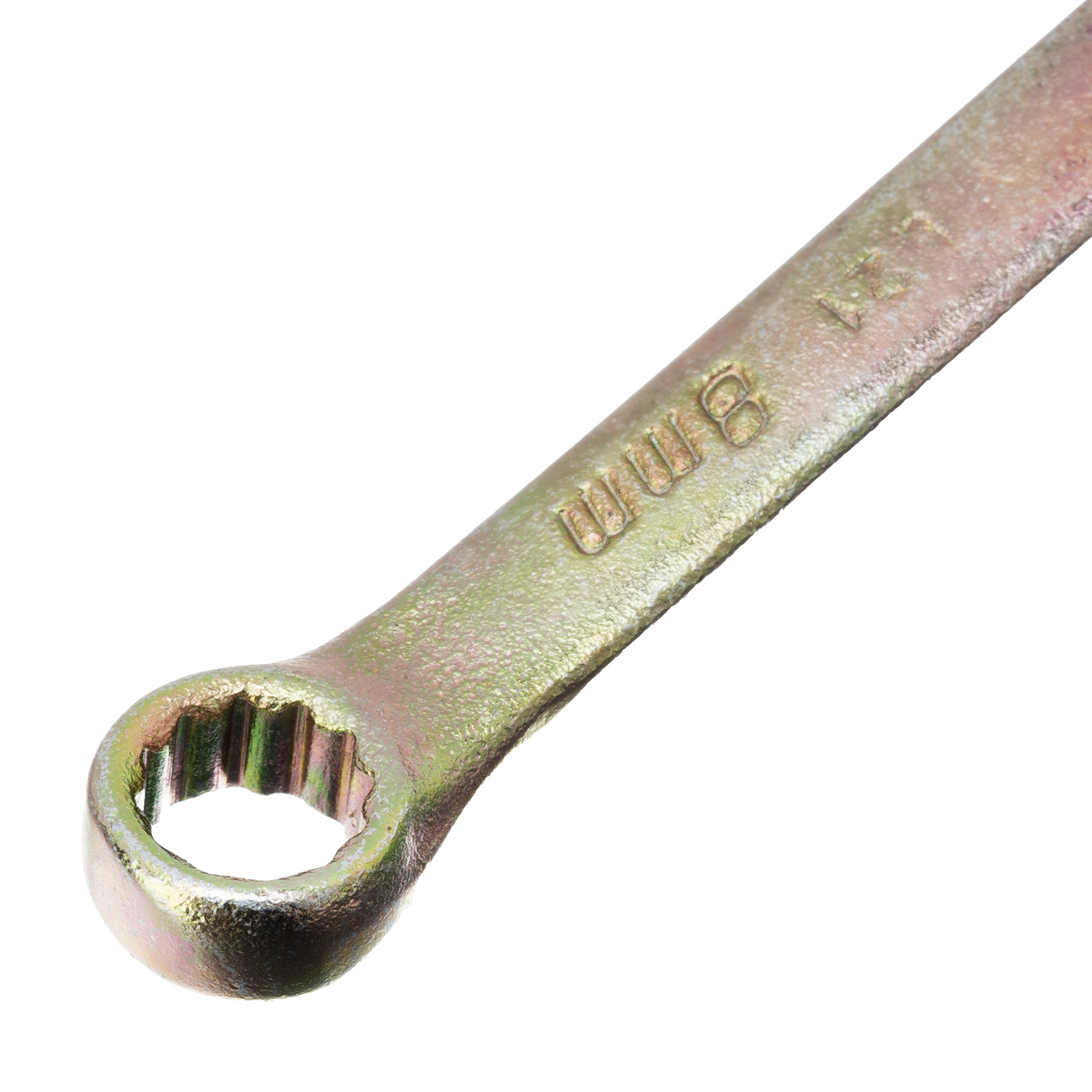 Комбинированный ключ Сибртех 14974, покрытый желтым цинком, предназначен для слесарно-монтажных работ с резьбовыми соединениями размером 8 мм. Наличие рожкового и кольцевого зева делает ключ универсальным. Накидная головка с 12-гранным профилем надежно удерживает крепеж, уменьшая риск его деформации. Ключ будет полезен при проведении строительных и ремонтных работ, пригодится для сборки и разборки оборудования, а также необходим в быту.