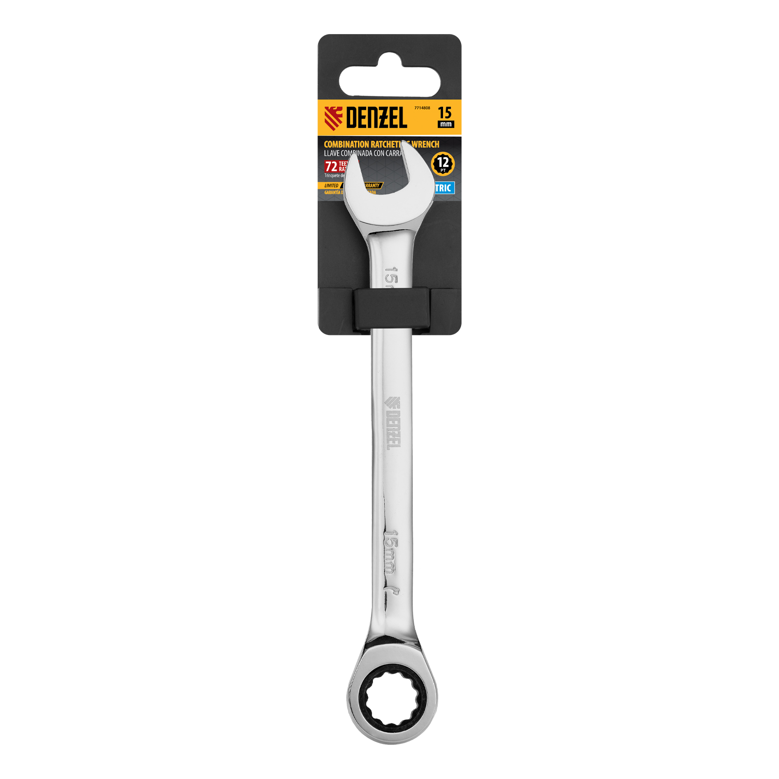 Ключ комбинированный, с трещеткой, 15 мм Denzel