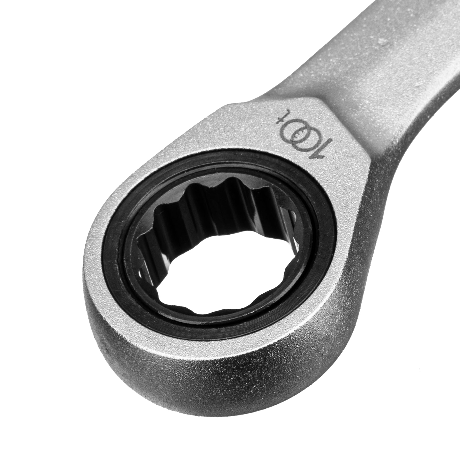 - Храповый механизм оснащен 100 зубцами, что обеспечивает плавность хода инструмента (шаг трещотки всего 3,6 градусов) и делает его удобным для работы в ограниченном пространстве.
