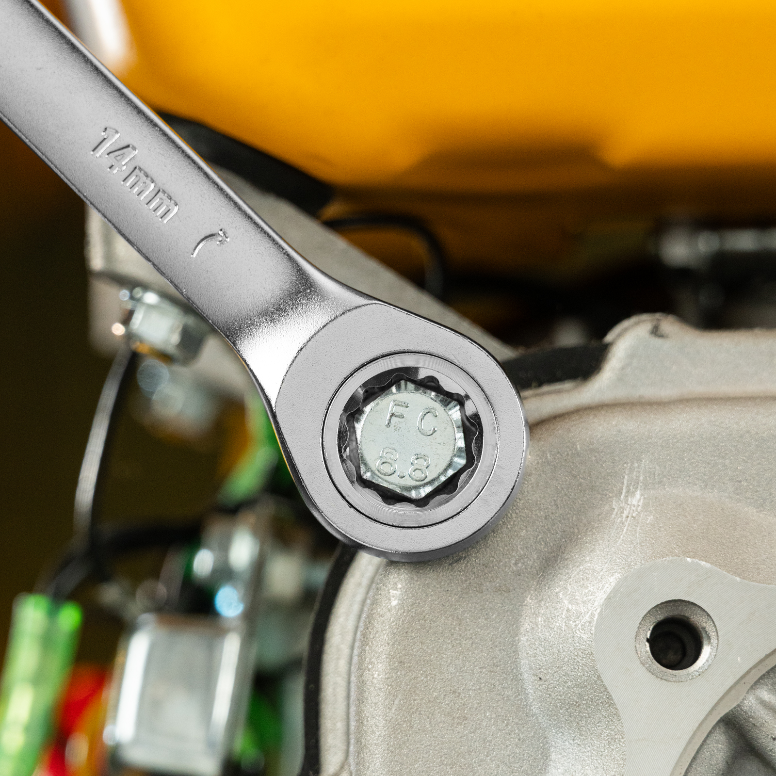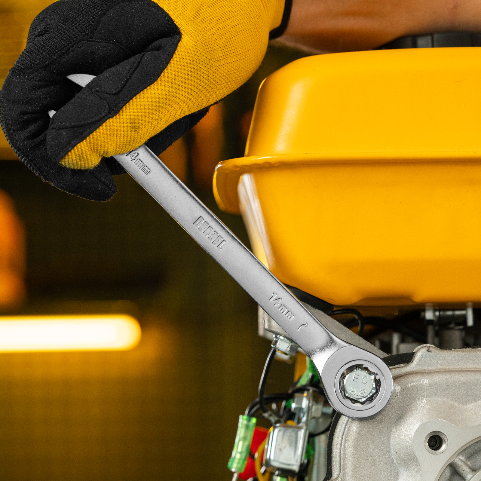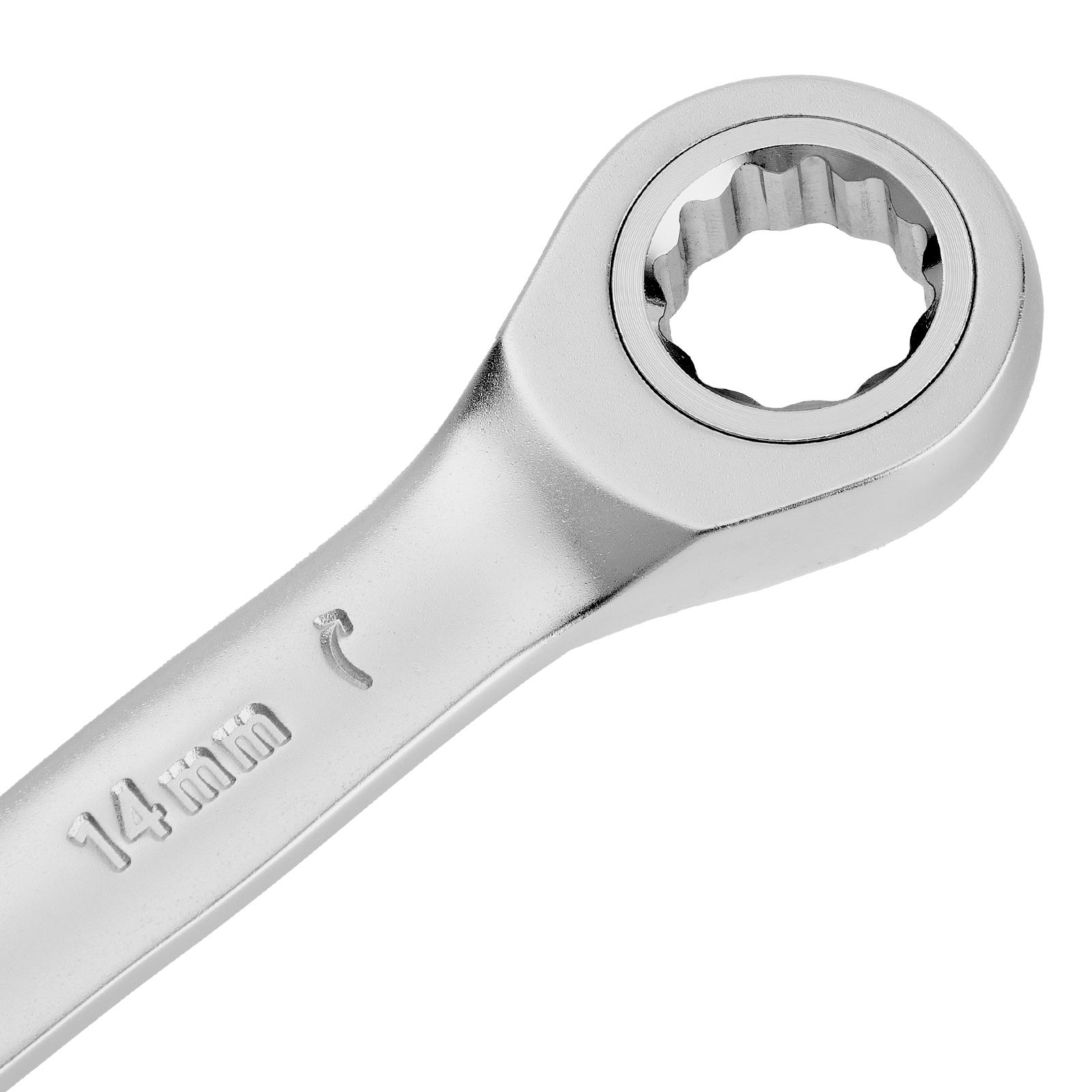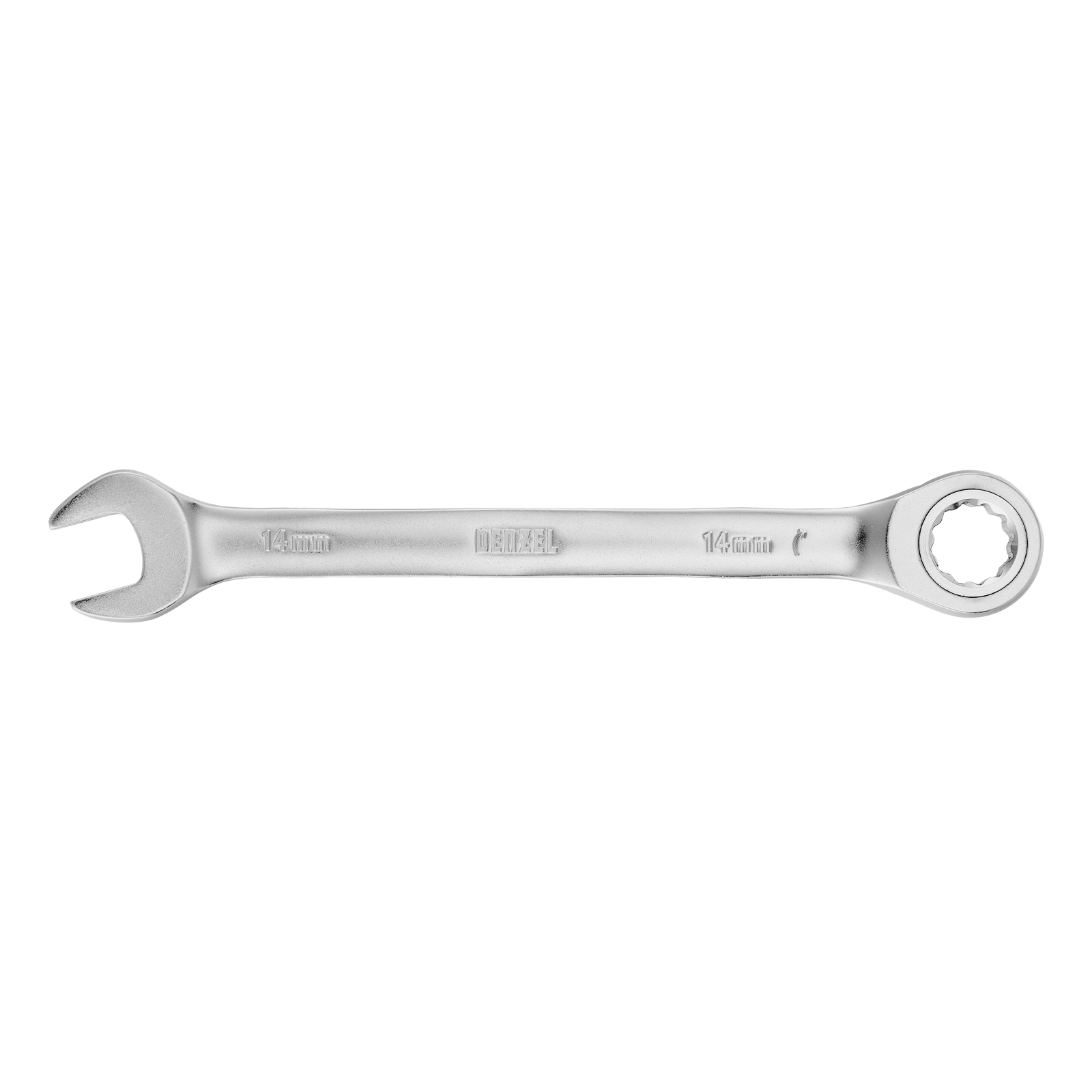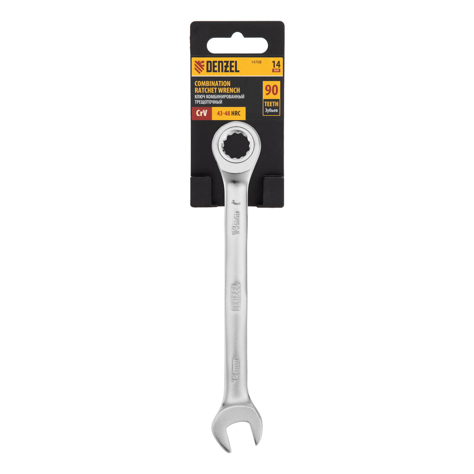 Комбинированный трещоточный ключ Denzel 14708 из стали CrV, с защитным покрытием «матовый хром», предназначен для работы с резьбовым крепежом размером 14 мм. Рожковый профиль упрощает работу в местах, где использование накидной рабочей части невозможно. 12-гранный профиль кольцевой части подходит для крепежа с разным профилем. Хромированное кольцо обеспечивает сохранность и долговечность инструмента. Ключ будет полезен дома, в мастерской и гараже.