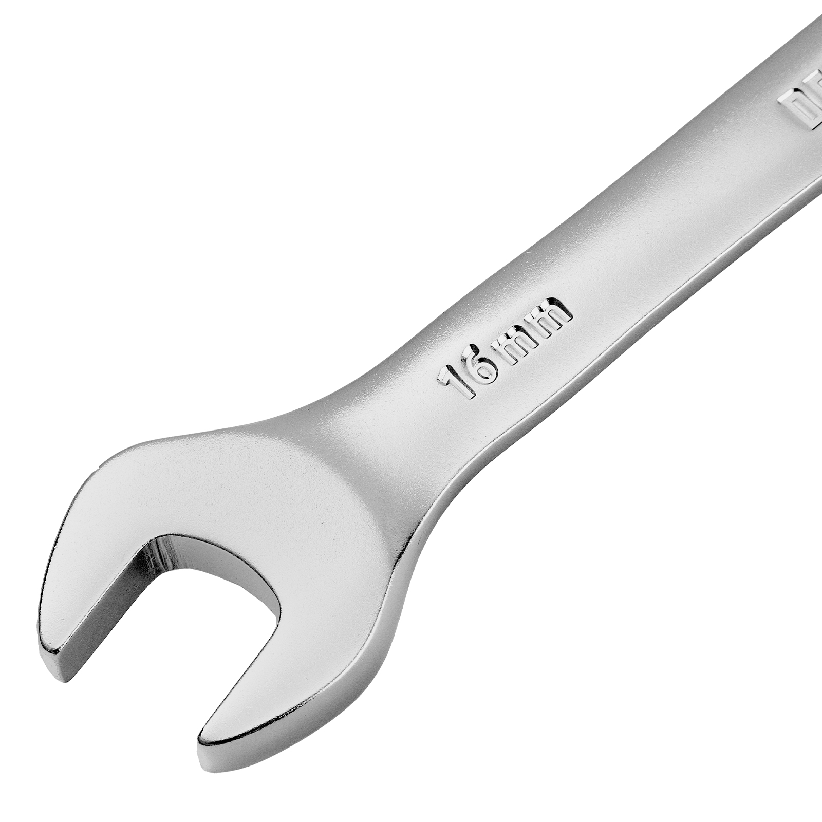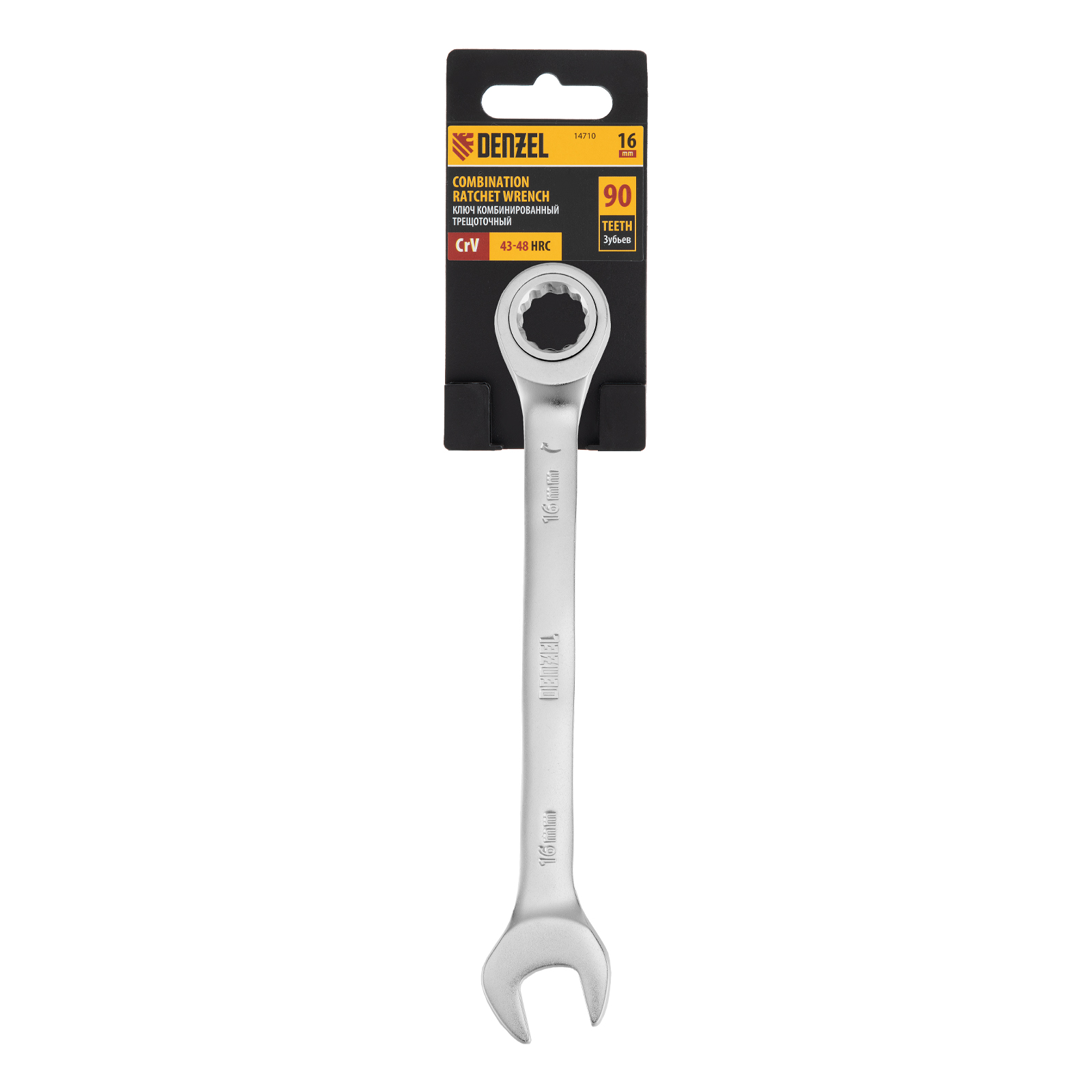 Комбинированный трещоточный ключ Denzel 14710 из стали CrV, с защитным покрытием «матовый хром», предназначен для работы с резьбовым крепежом размером 16 мм. Рожковый профиль упрощает работу в местах, где использование накидной рабочей части невозможно. Хромированное кольцо обеспечивает сохранность и долговечность инструмента. Ключ будет полезен дома, в мастерской и гараже.