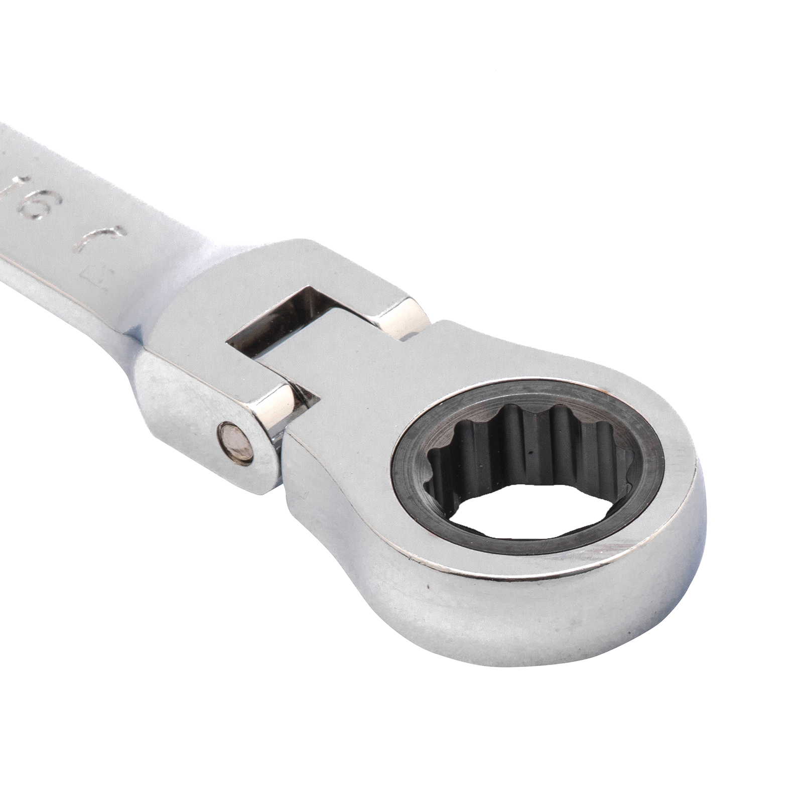 - Удобная работа в труднодоступных местах — храповой механизм на 72 зуба обеспечивает плавное вращение (шаг трещотки составляет 5°), а шарнир позволяет поворачивать рабочую часть под углом.