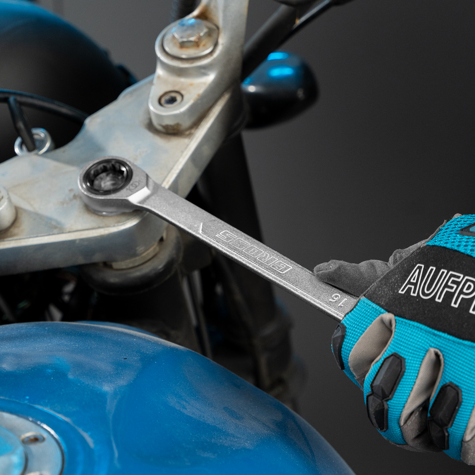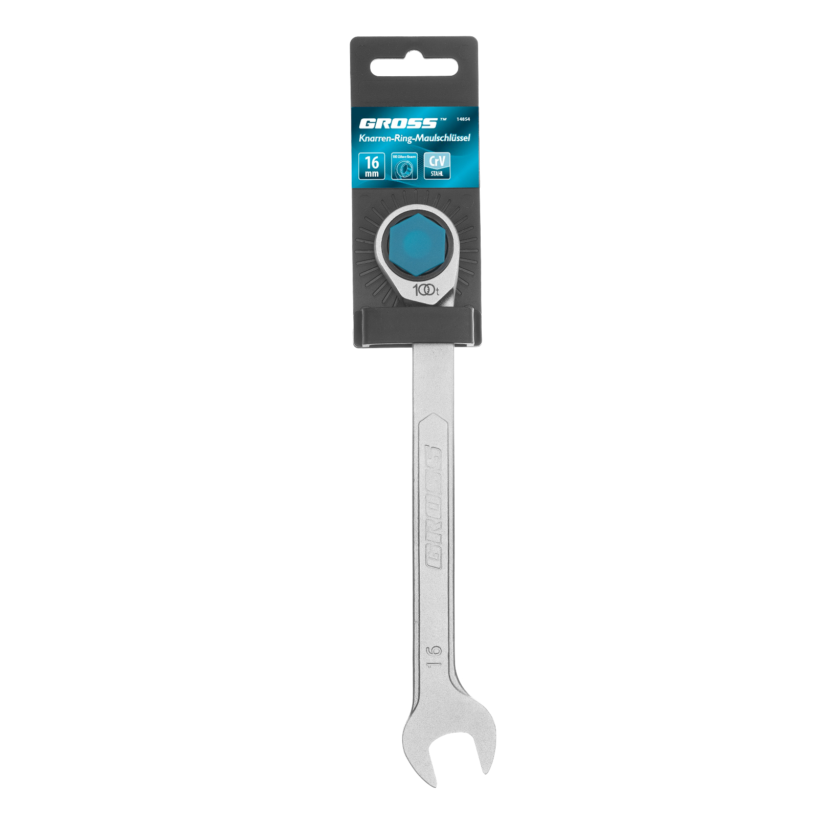 Комбинированный трещоточный ключ Gross 14854, 16 мм, используется при монтаже и демонтаже резьбовых соединений. Инструмент имеет как рожковую, так и накидную часть, что повышает его функциональность. У накидной части 12 внутренних граней, что увеличивает площадь соприкосновения с головкой крепежа и снижает риск ее деформации. Ключ применяется как в автосервисах, так и для самостоятельного ремонта автомобилей.