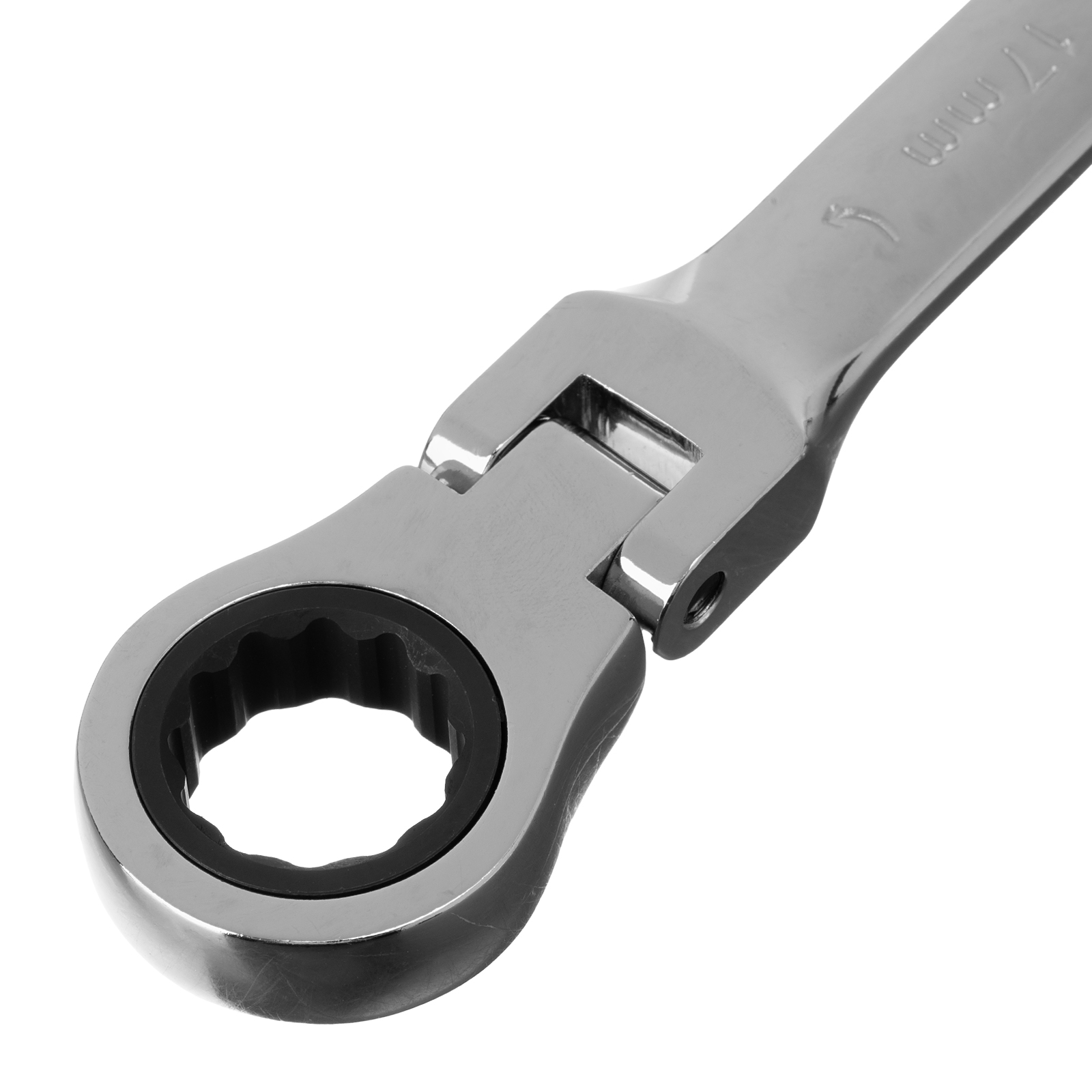 - Удобная работа в труднодоступных местах — храповой механизм на 72 зуба обеспечивает плавное вращение (шаг трещотки составляет 5°), а шарнир позволяет поворачивать рабочую часть под углом.
