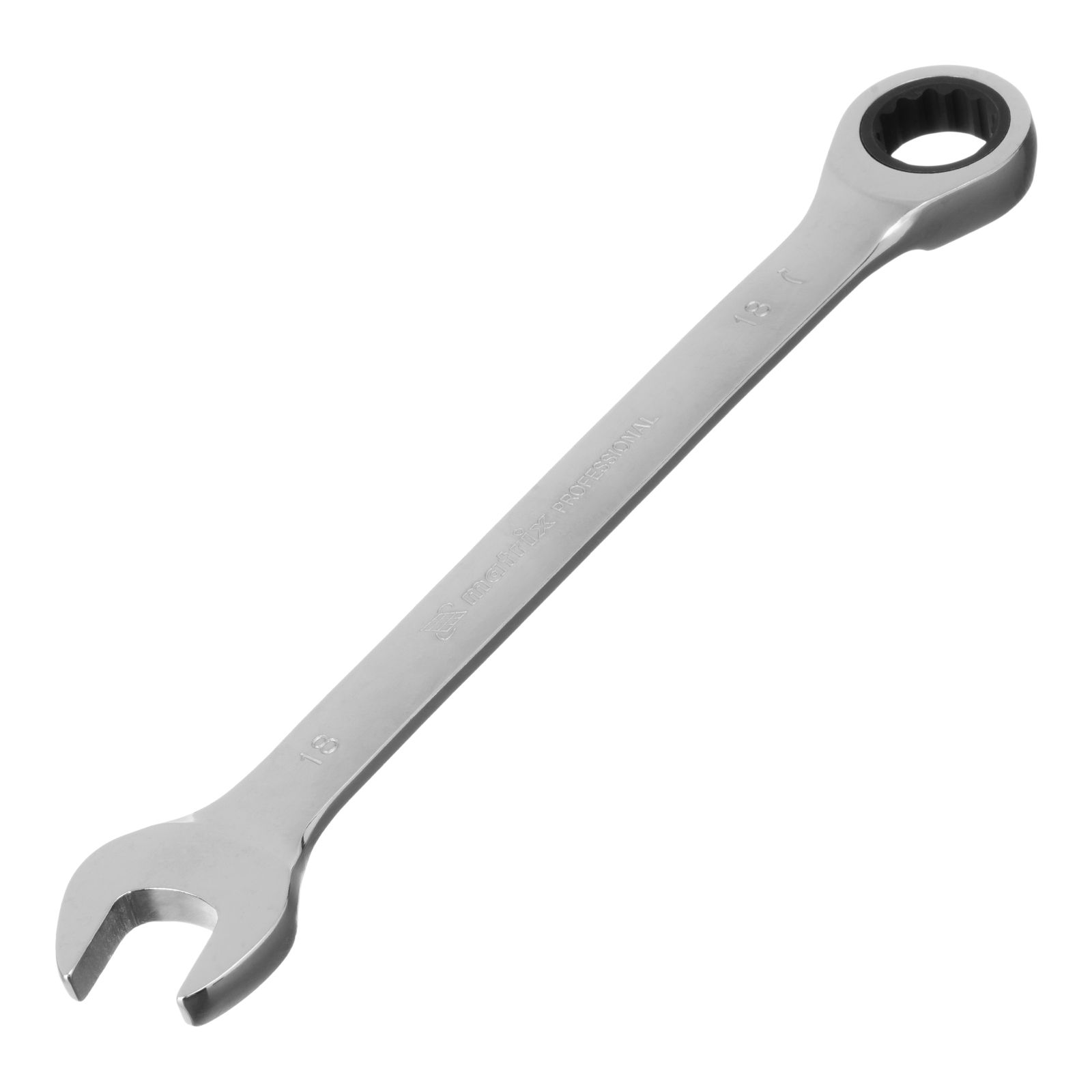 Комбинированный трещоточный ключ Matrix 14811 из стали CrV, с покрытием «зеркальный хром», размером 18 мм, позволяет быстро откручивать и закручивать болты и гайки. Рожковую часть удобно использовать там, где нет возможности полного охвата детали, а трещоточный механизм повышает удобство работы в труднодоступных местах.
