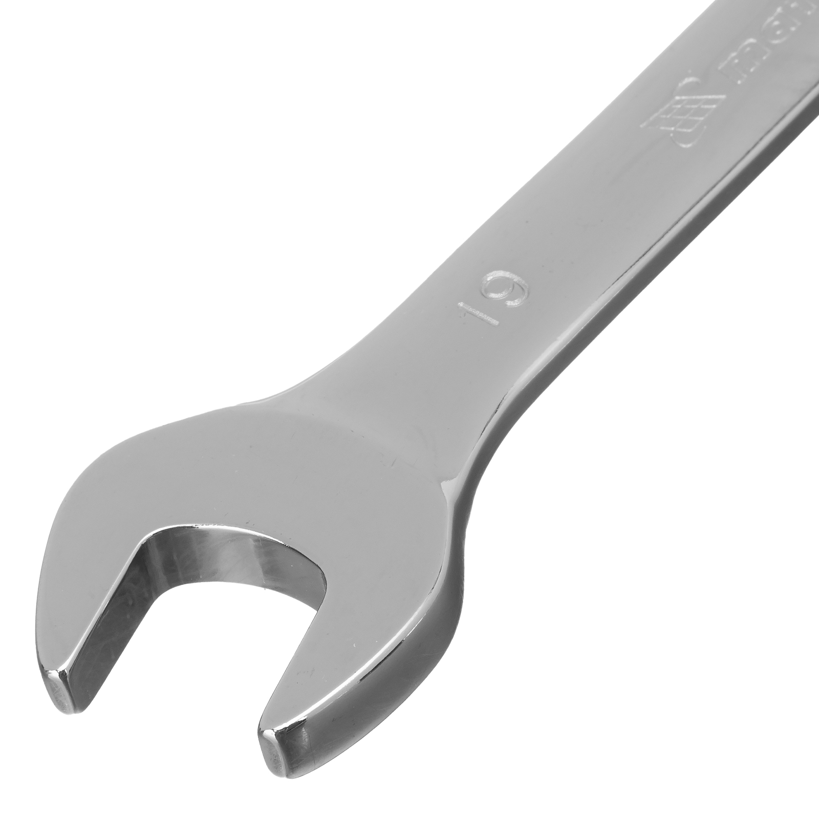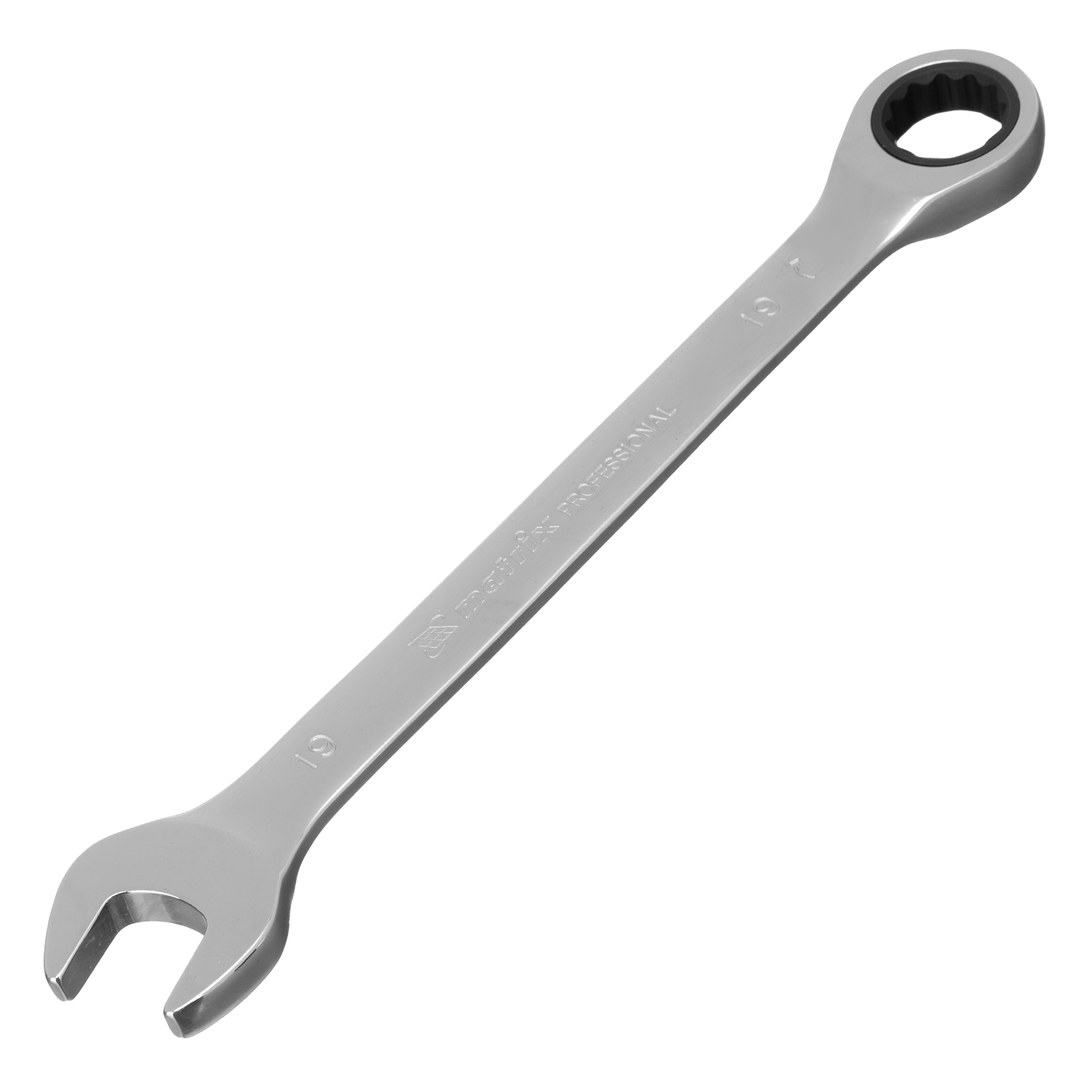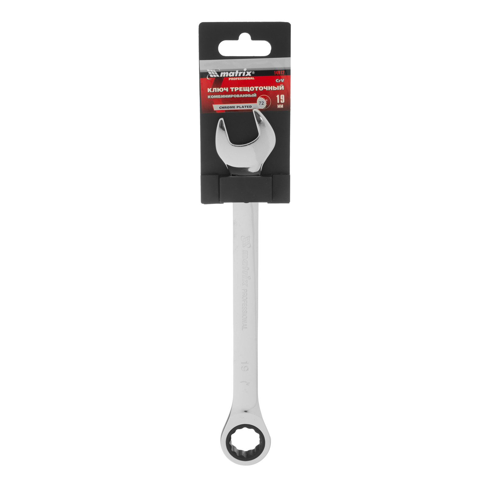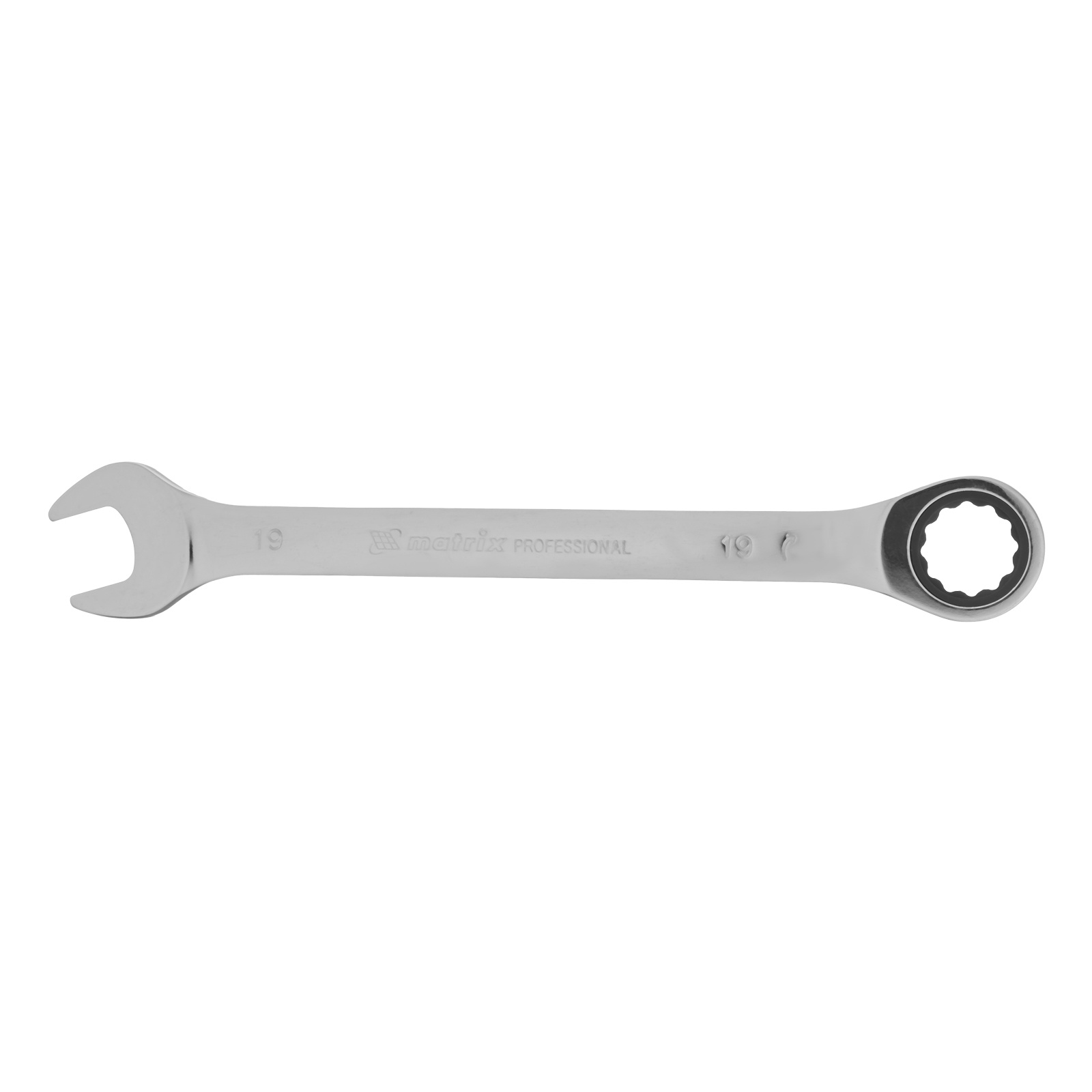 Комбинированный трещоточный ключ Matrix 14812 из стали CrV, с покрытием «зеркальный хром», размером 19 мм, позволяет быстро откручивать и закручивать болты и гайки. Рожковую часть удобно использовать там, где нет возможности полного охвата детали, а трещоточный механизм повышает удобство работы в труднодоступных местах.