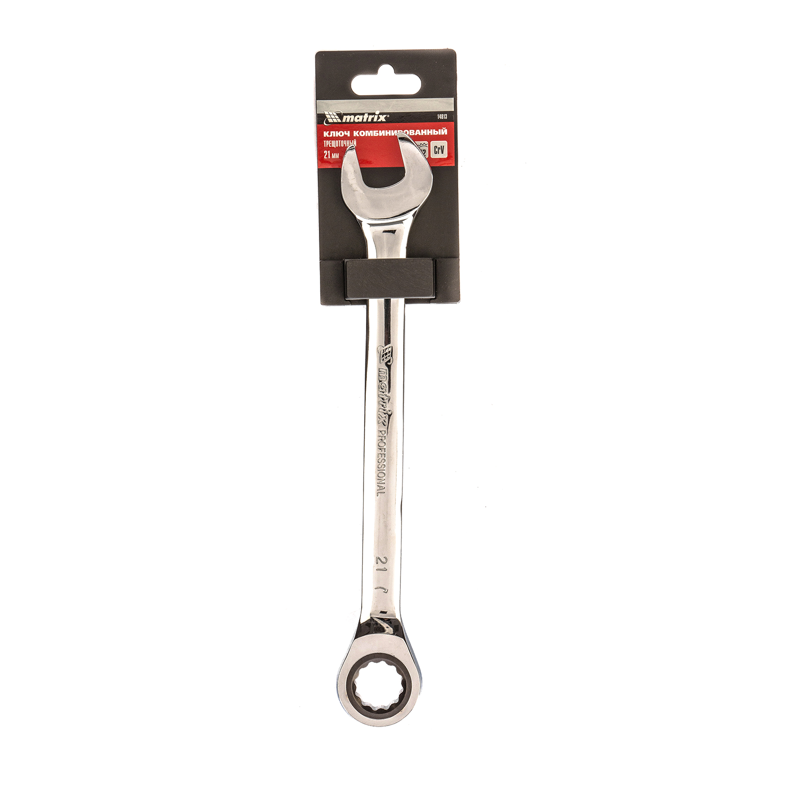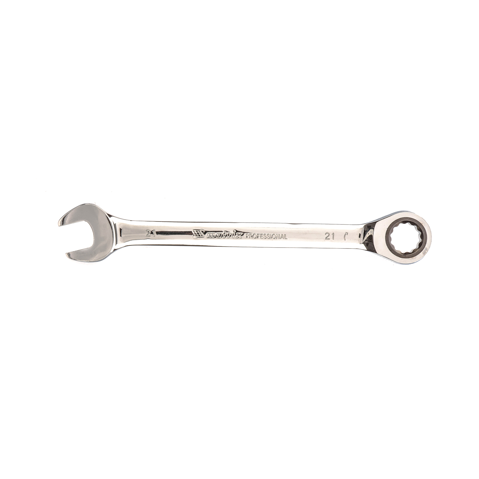 Комбинированный трещоточный ключ Matrix 14813 из стали CrV, с покрытием «зеркальный хром», размером 21 мм, позволяет быстро откручивать и закручивать болты и гайки. Рожковую часть удобно использовать там, где нет возможности полного охвата детали, а трещоточный механизм повышает удобство работы в труднодоступных местах.