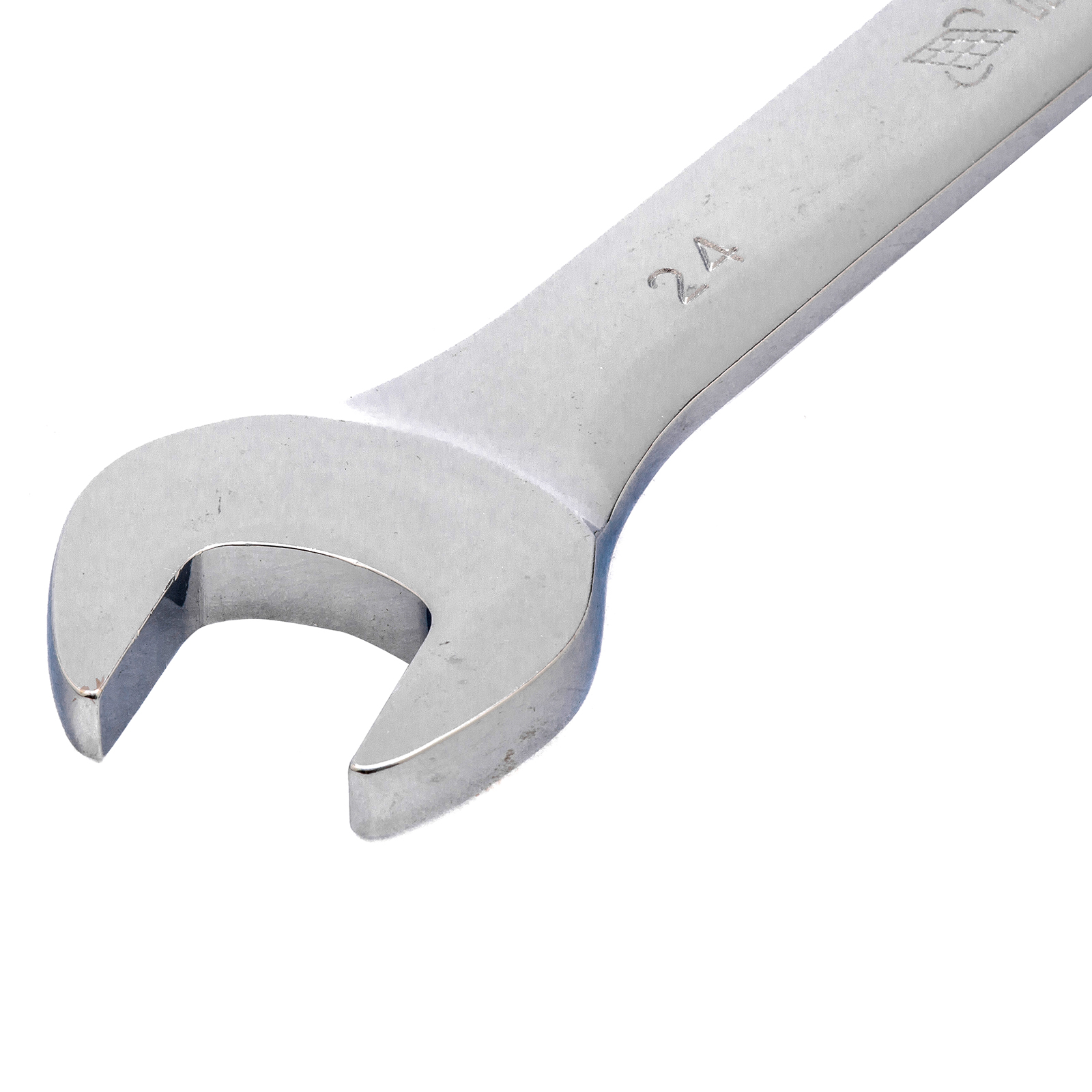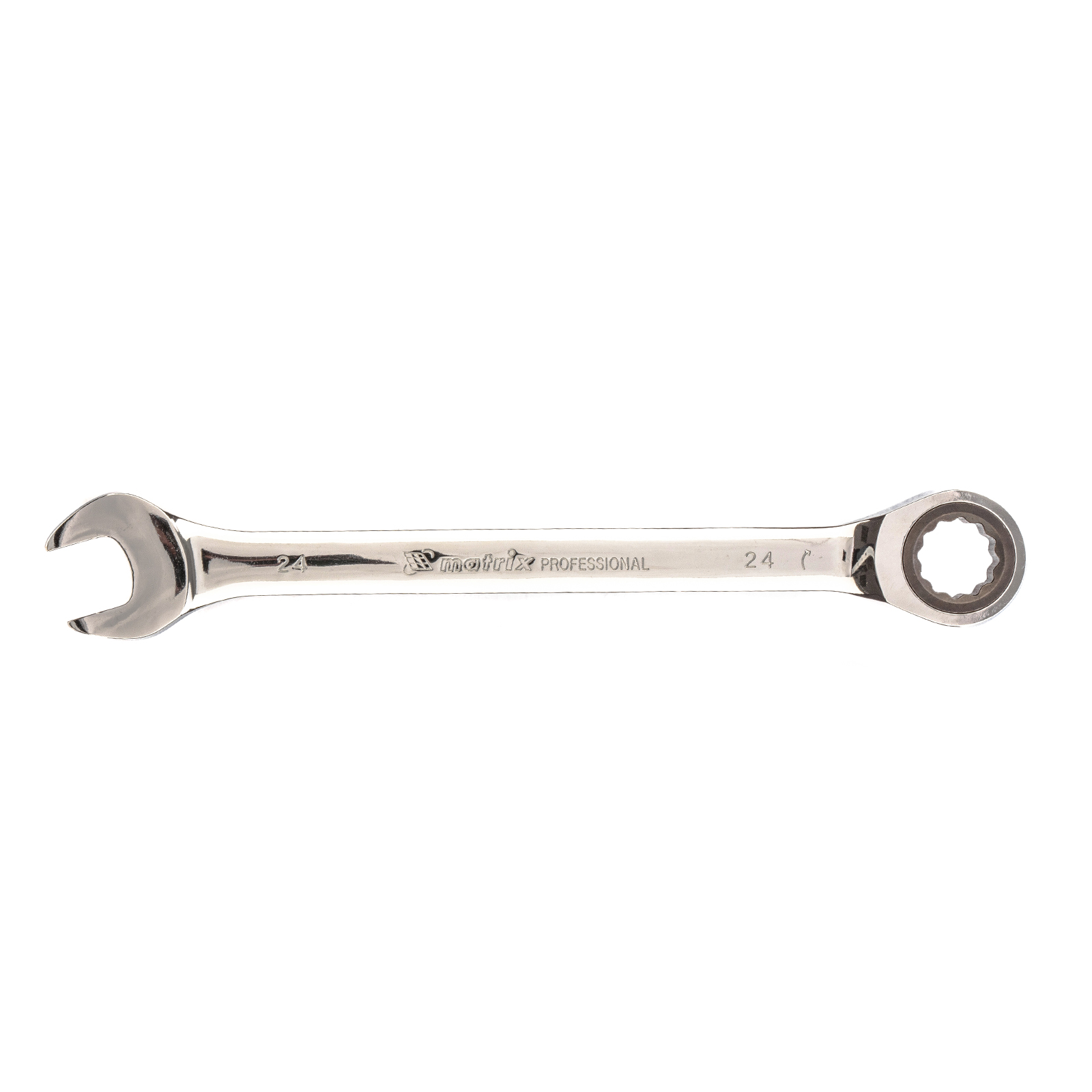 Комбинированный трещоточный ключ Matrix 14815 из стали CrV, с покрытием «зеркальный хром», размером 24 мм, позволяет быстро откручивать и закручивать болты и гайки. Рожковую часть удобно использовать там, где нет возможности полного охвата детали, а трещоточный механизм повышает удобство работы в труднодоступных местах.