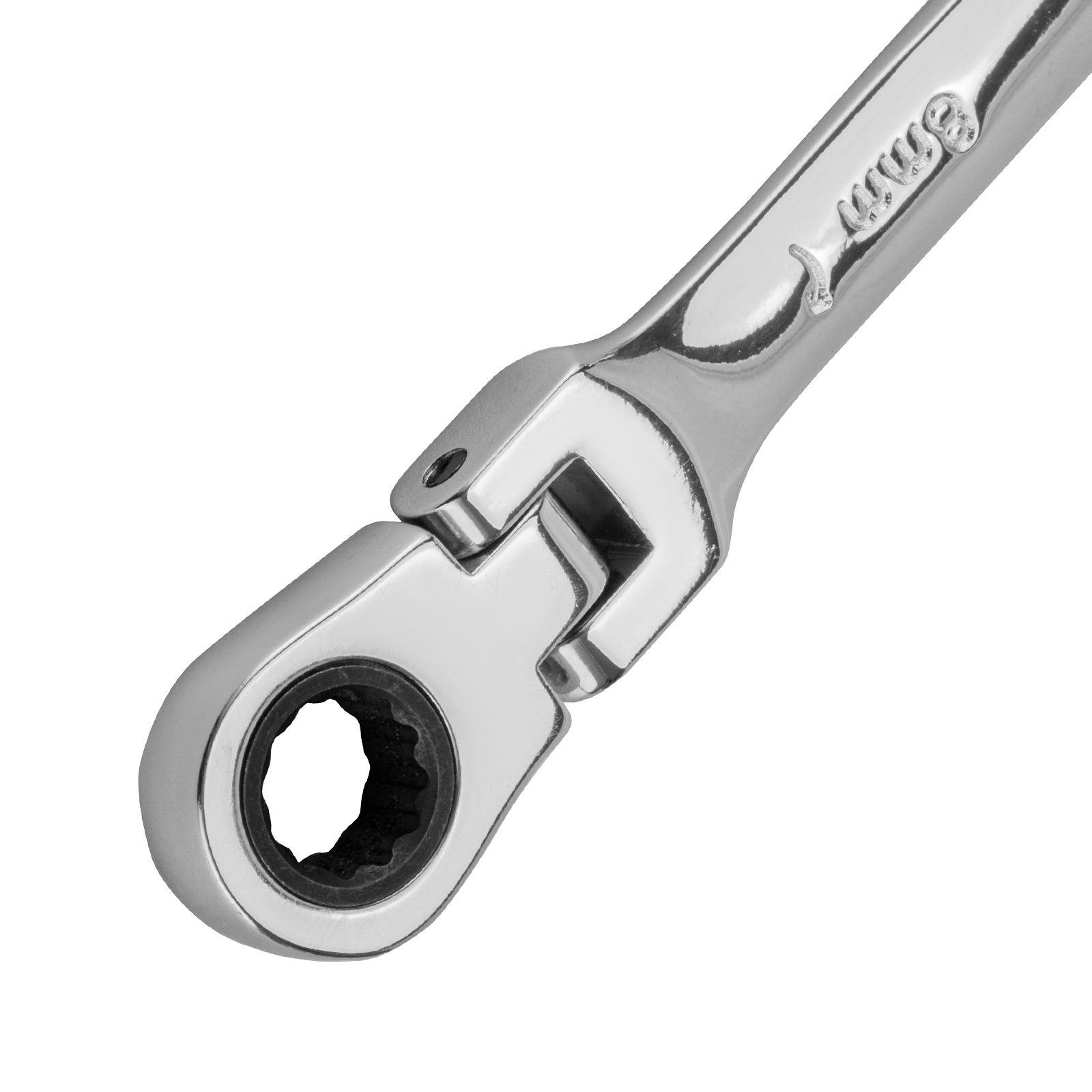 - Удобная работа в труднодоступных местах — храповой механизм на 72 зуба обеспечивает плавное вращение (шаг трещотки составляет 5°), а шарнир позволяет поворачивать рабочую часть под углом.